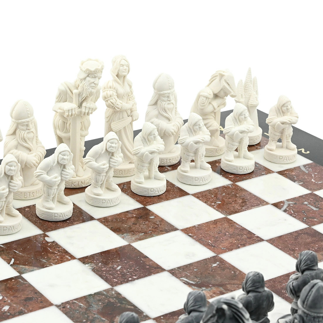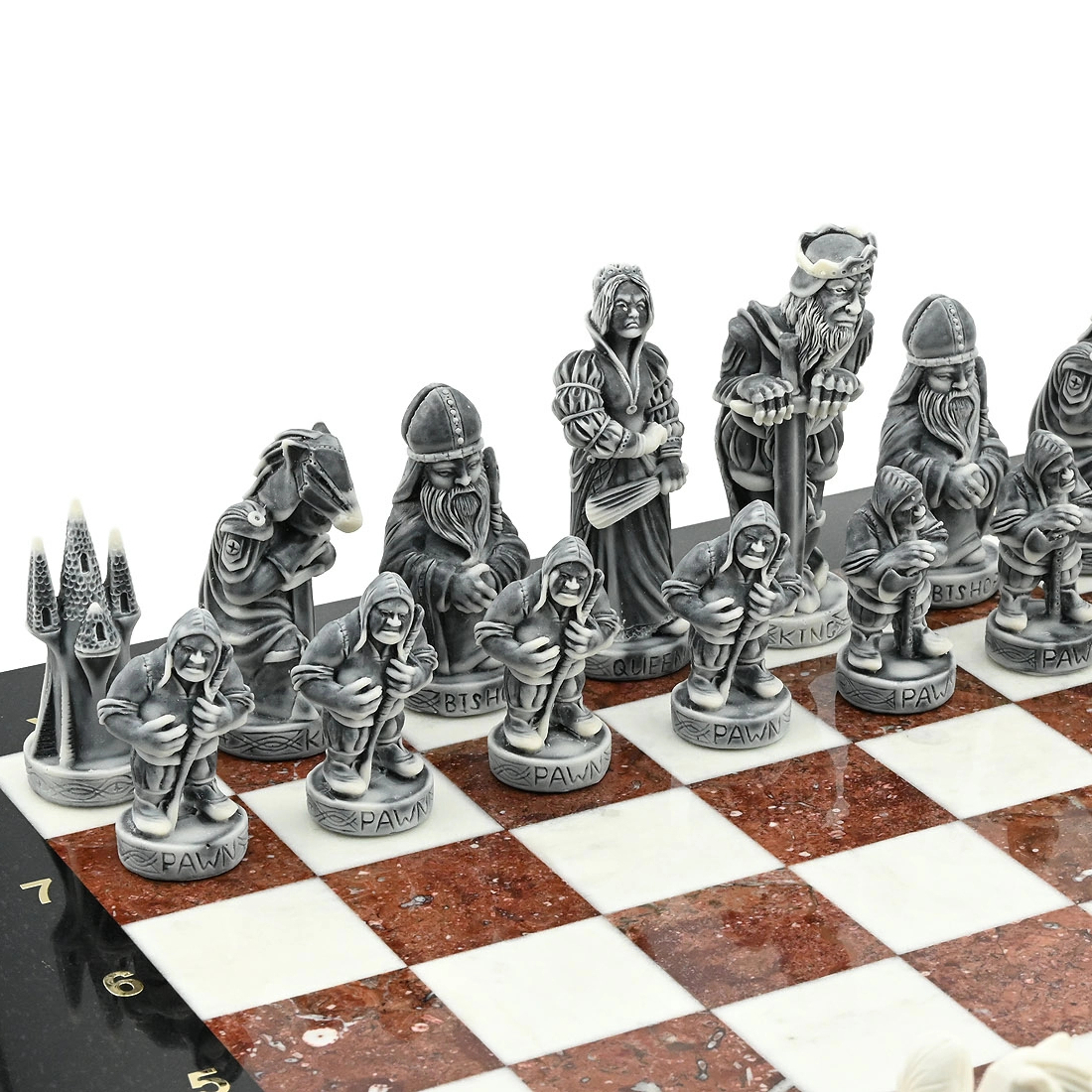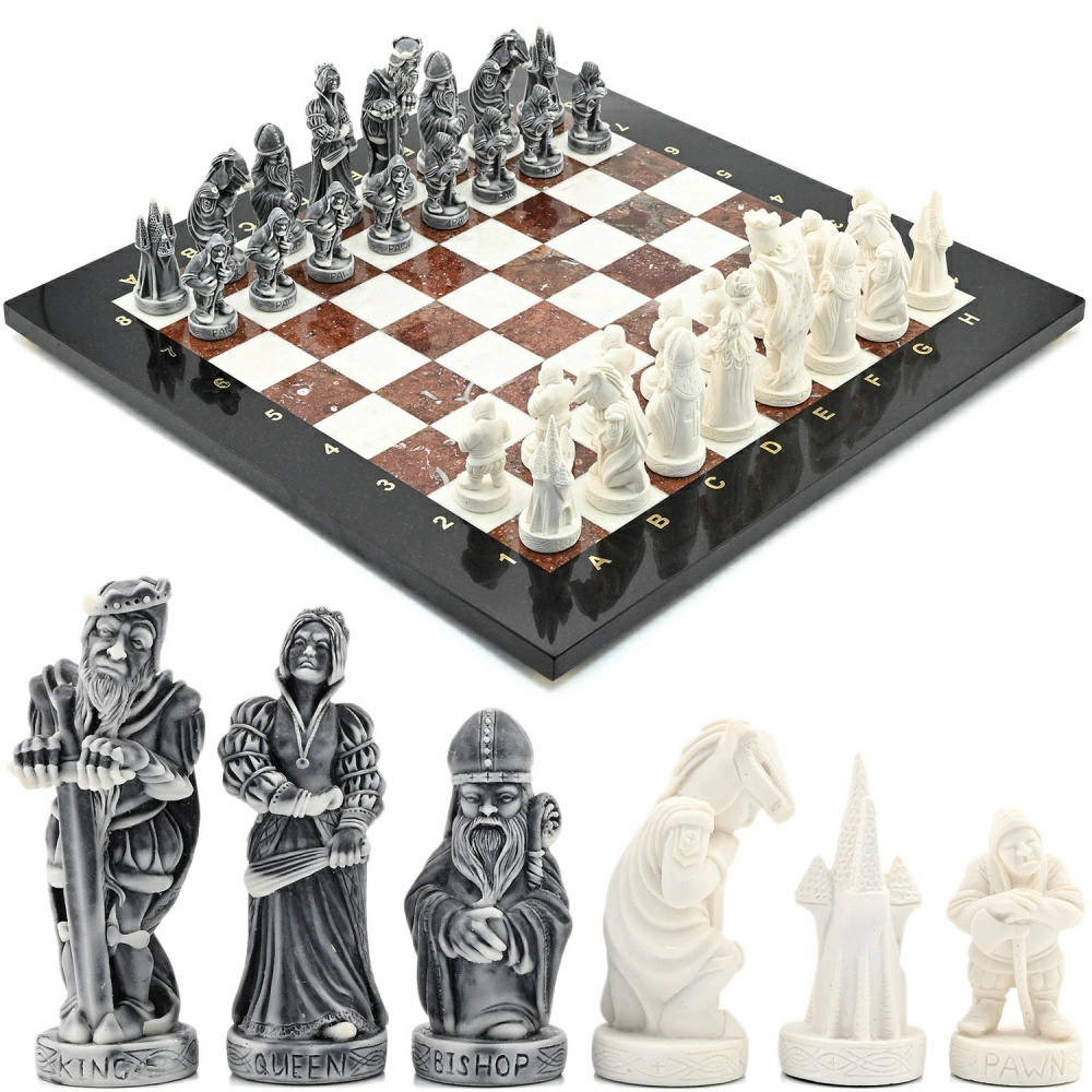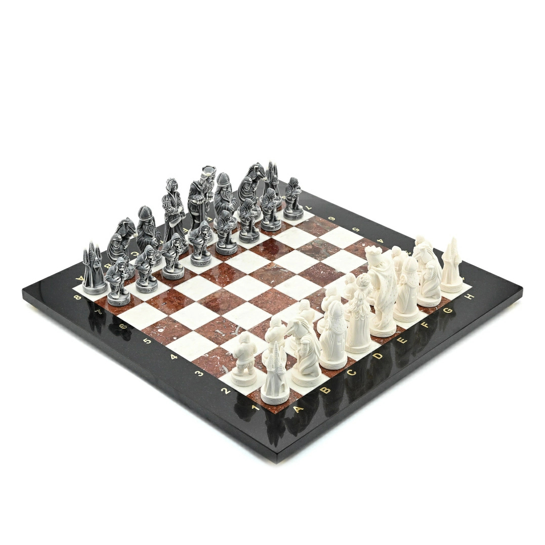 Шахматы из креноида, мрамора и долерита "Средневековье" с фигурами из мрамолита