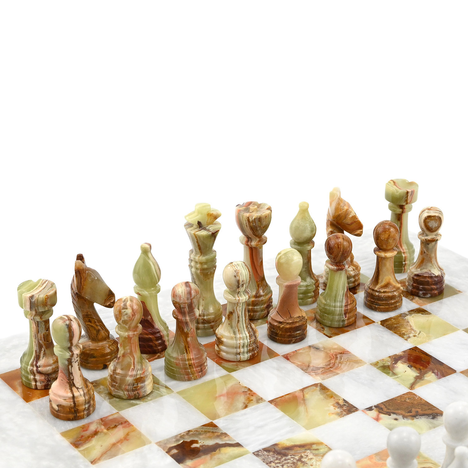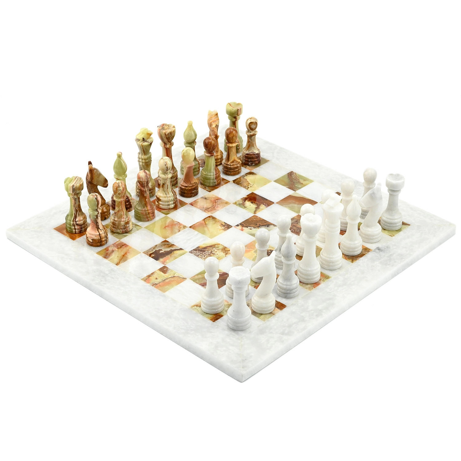 Шахматы из белого мрамора белого и оникса "Премиум"