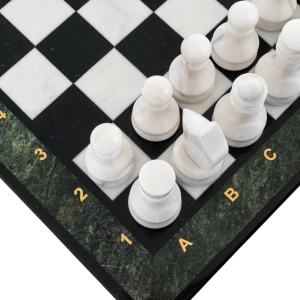 Шахматы из змеевика, мрамора и долерита «Классика» — это воплощение гармонии простоты и благородства природных материалов. На чёрно-белом поле из полированного мрамора и долерита встречаются две силы — свет и тень, логика и интуиция, точность и вдохновение. Рамка из змеевика оттеняет строгость композиции, добавляя ей мягкое зелёное мерцание и природную глубину. Холодный блеск камня, прохладный на ощупь и тяжёлый в руке, создаёт ощущение вечности, будто партия, начавшаяся сегодня, может длиться века.