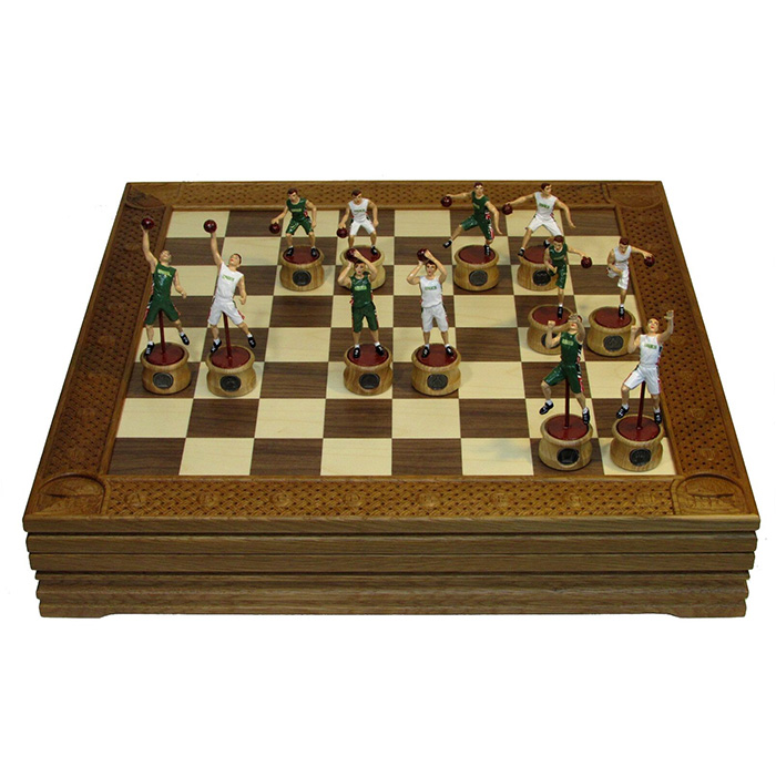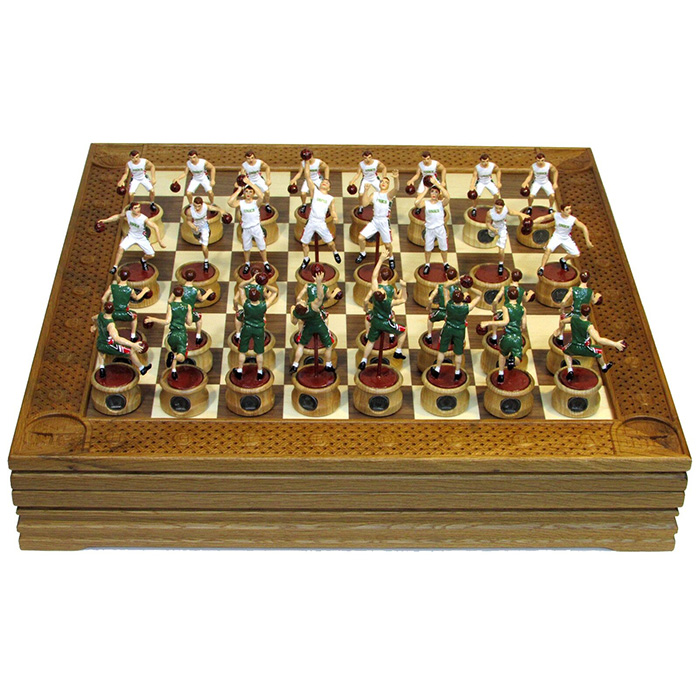 Шахматы коллекционные "Баскетбол - Уникс" на дубовой доске