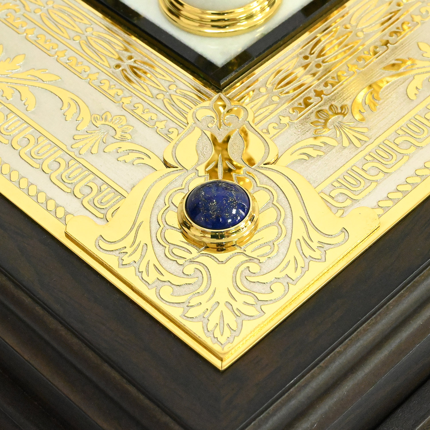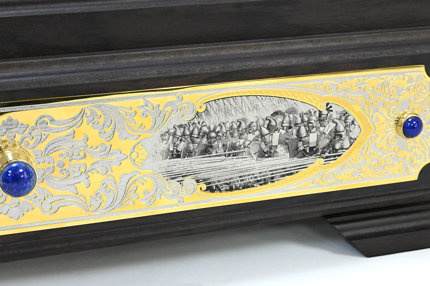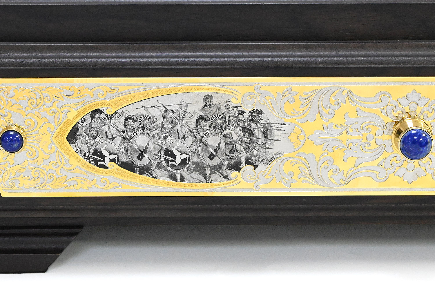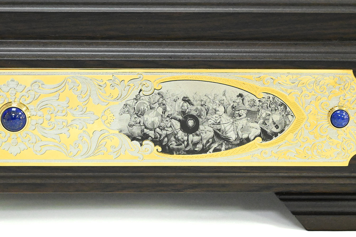 Материалы:массив бука, лазурит, мрамор, долерит, бронза, латунь, никель, золото.
