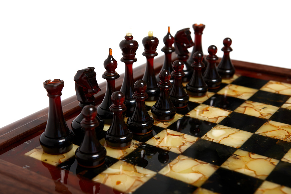 Шахматный ларец из ореха и янтаря "Аристократ"