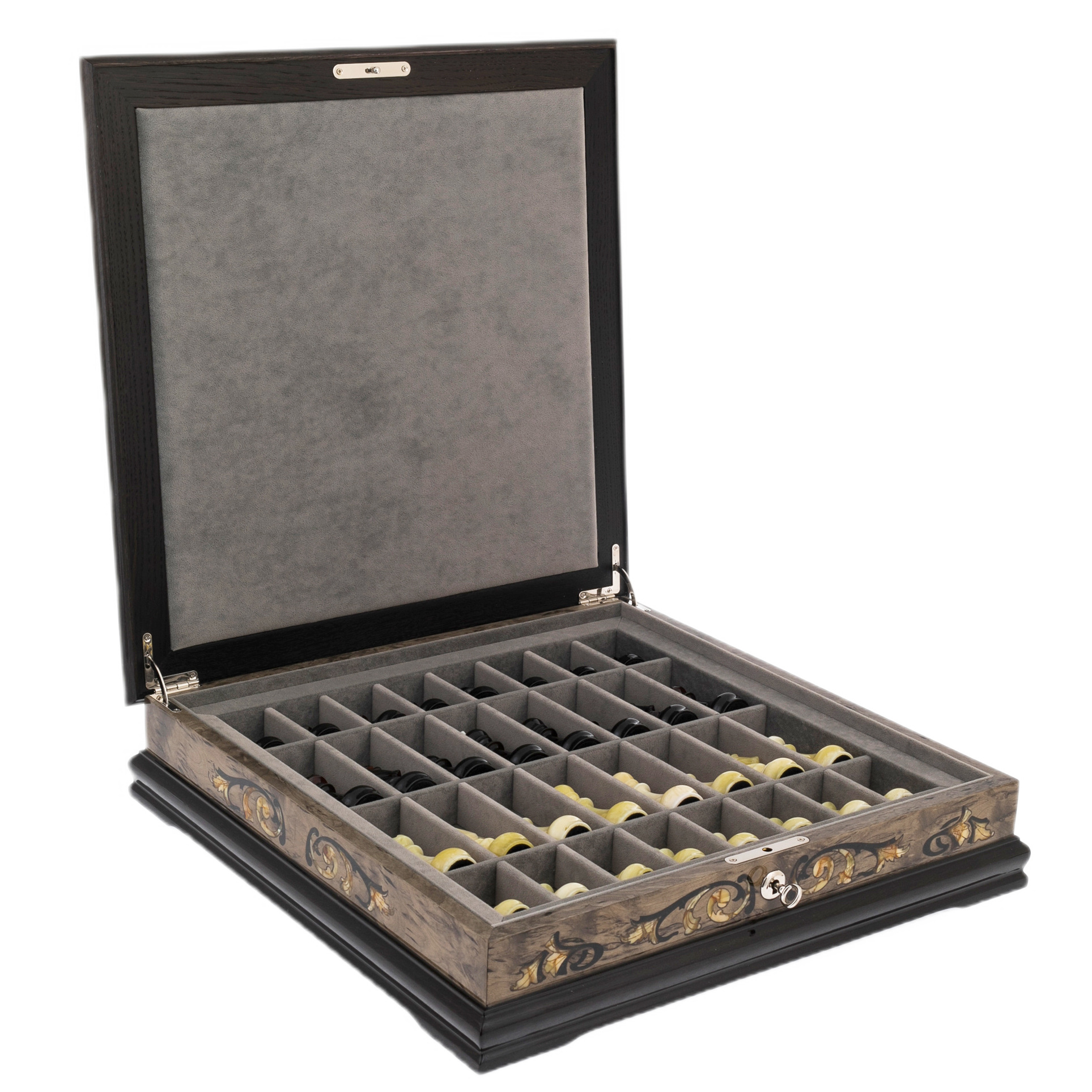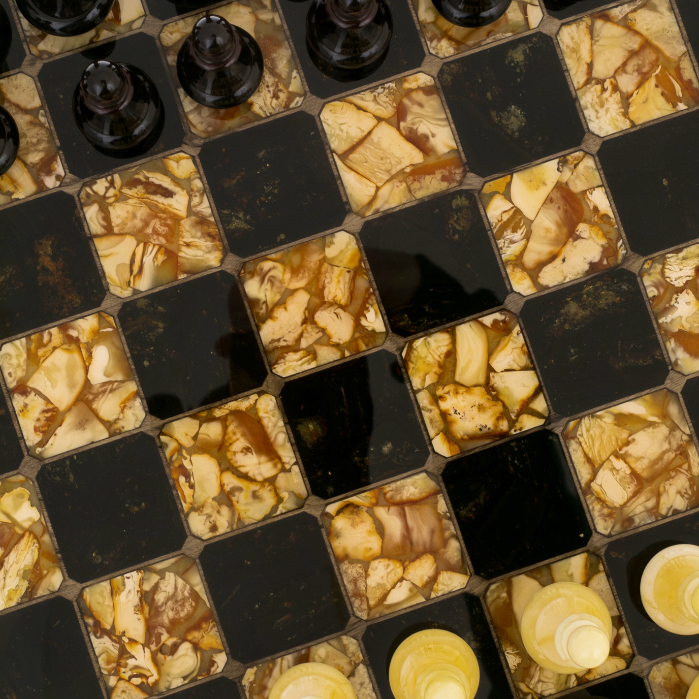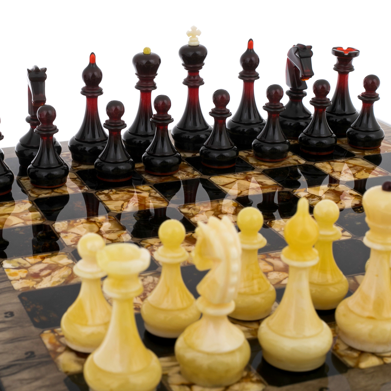 Шахматный ларец из тонированной карельской березы и янтаря "Глаз тигра"