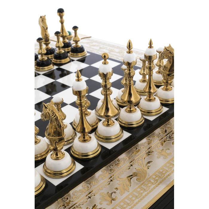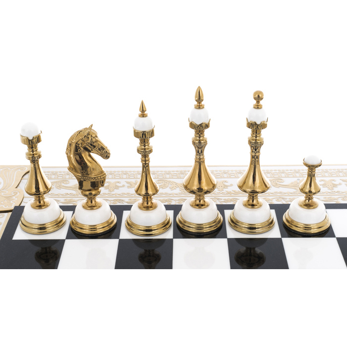 Шахматы из белого мрамора и долерита "Баталия" Златоуст