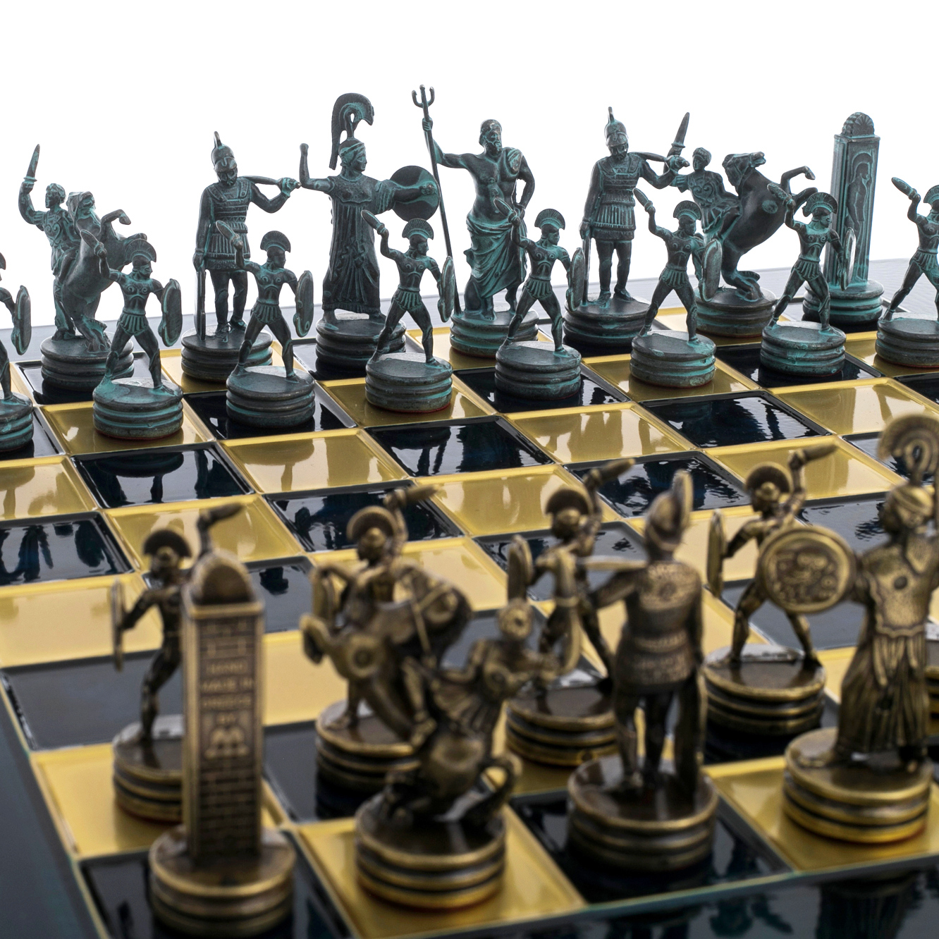 Шахматы из ламинированного дерева "Греческая мифология" с патиной