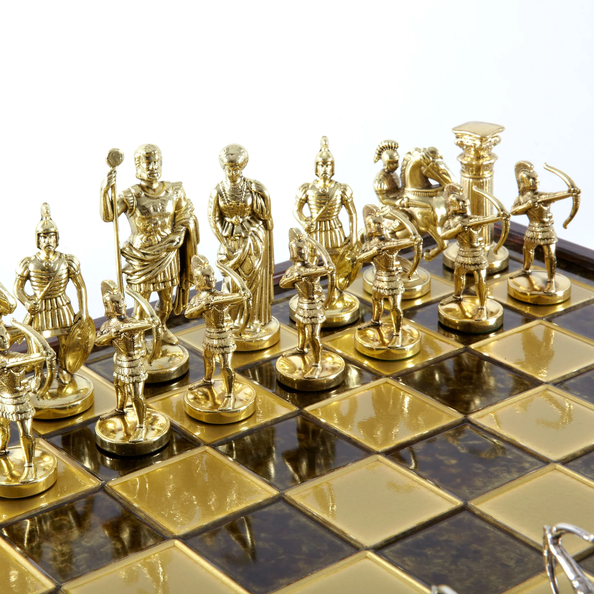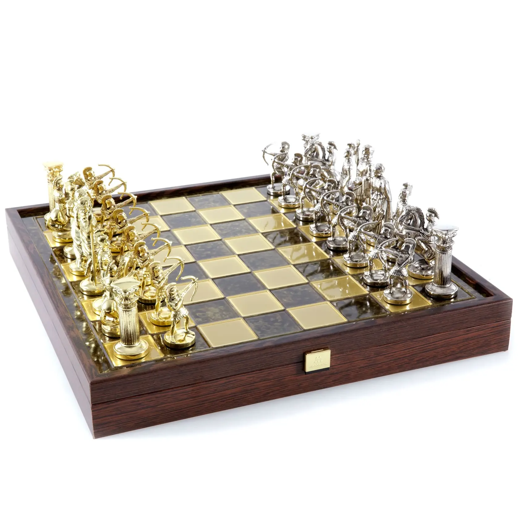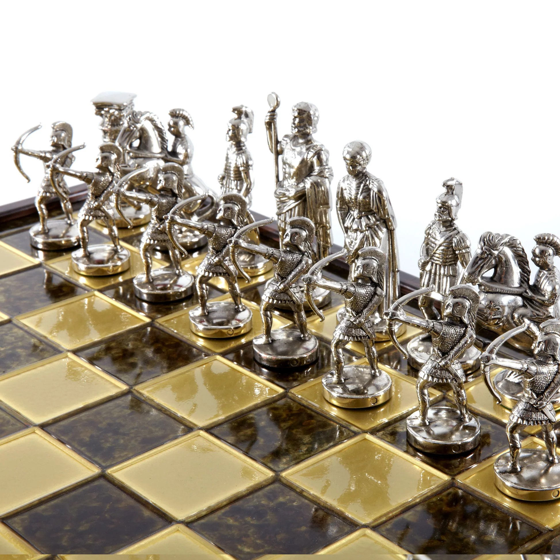 Погрузитесь в мир древних легенд и элегантности с шахматным набором "Лучники". Этот эксклюзивный набор создан для тех, кто ценит историю, искусство и безупречное мастерство. Шахматные фигуры ручной работы, выполненные из массивной латуни с золотым и серебряным покрытием, переносят в эпоху героев древности. Каждая фигура символизирует мифологические образы и напоминает о великих мастерах стрельбы из лука, таких как Аполлон, Артемида и легендарный Филоктет, носитель мифического лука Геракла.