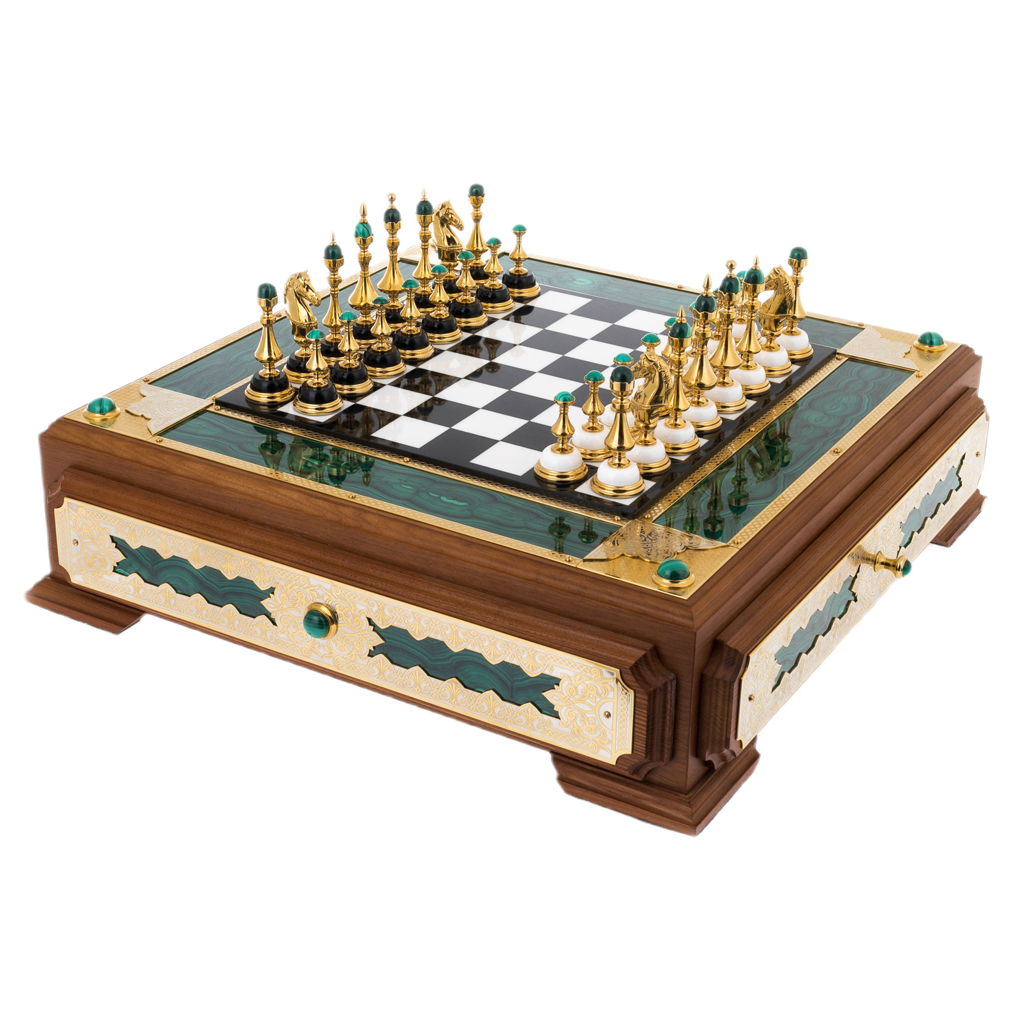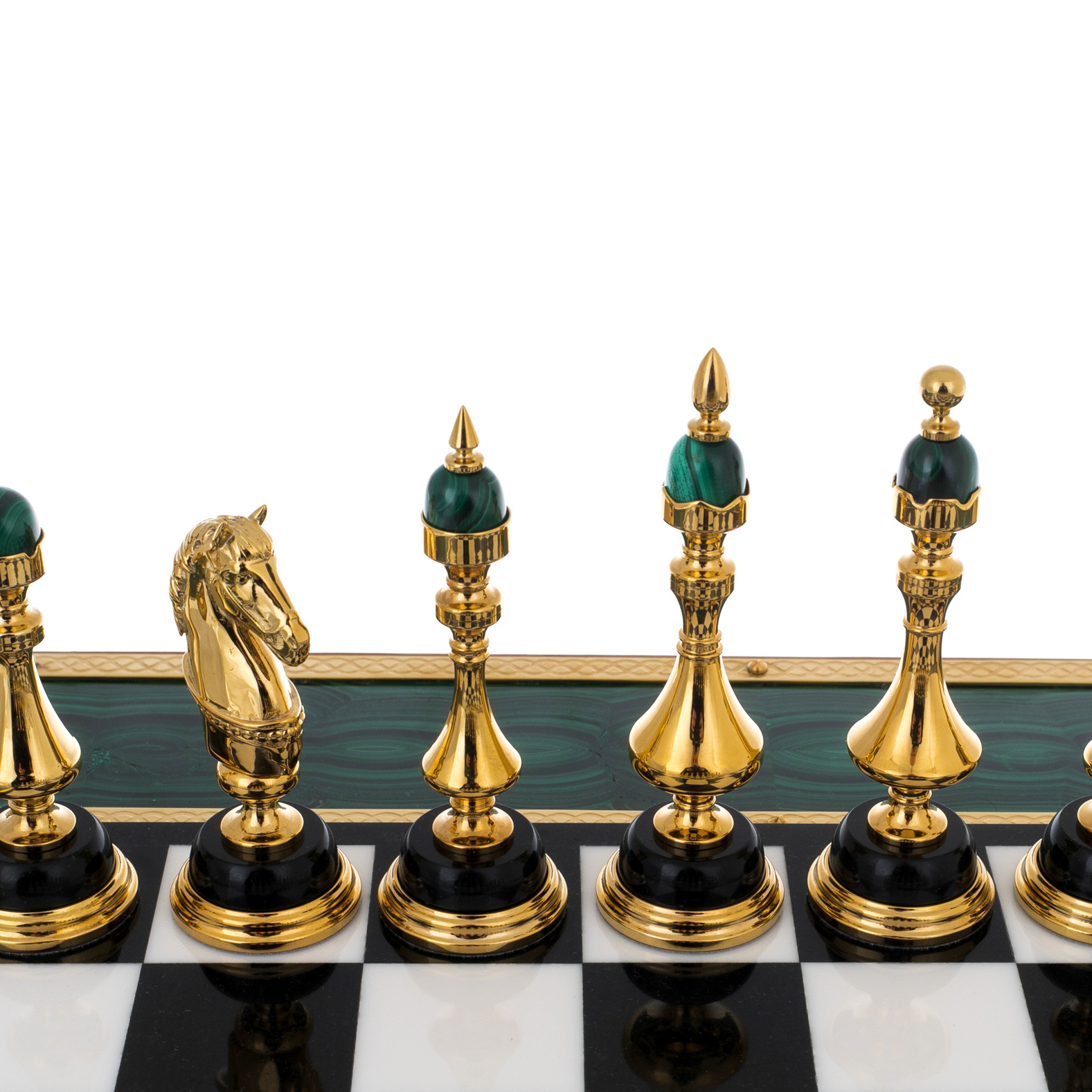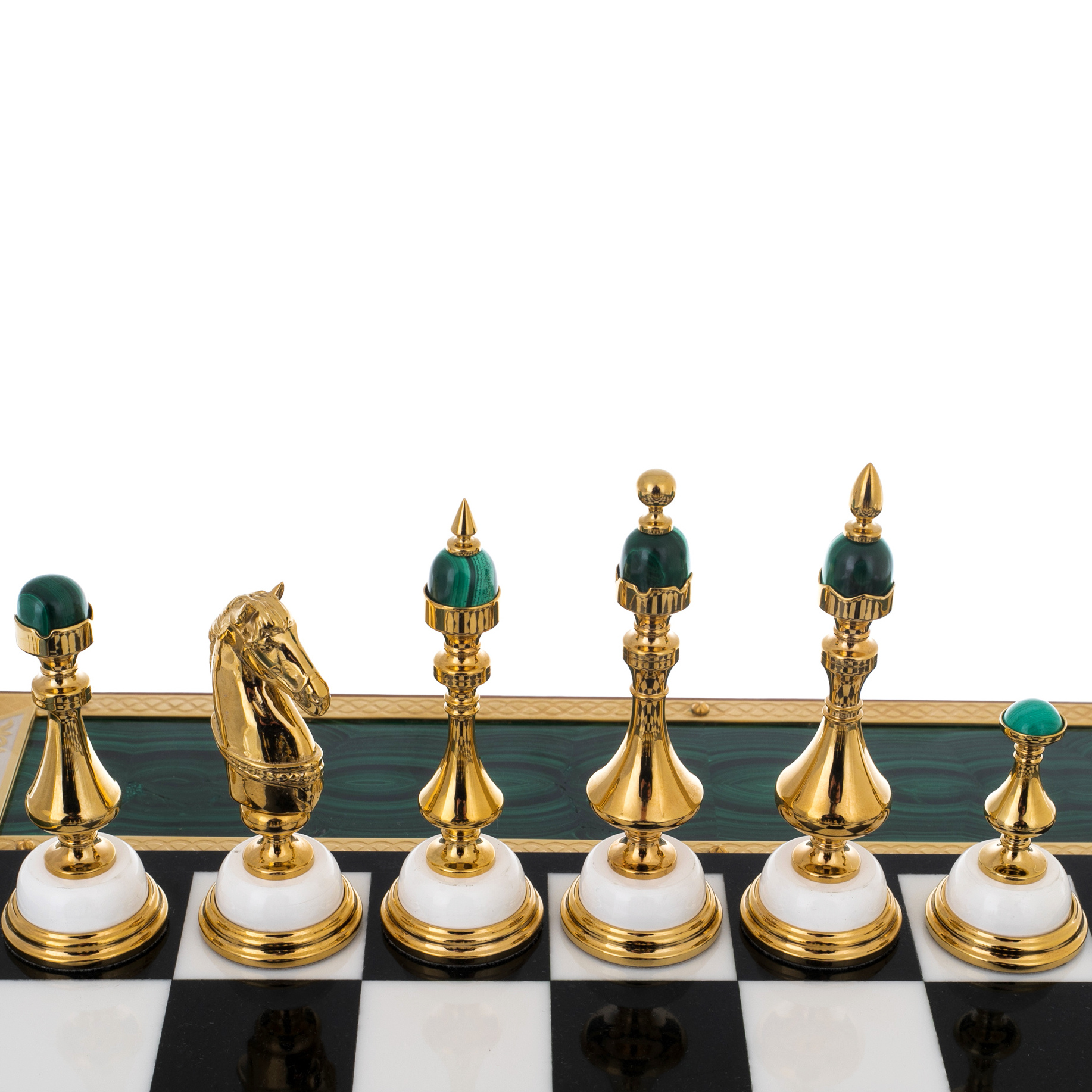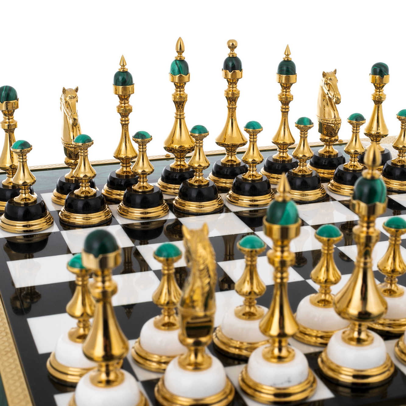 Материалы:малахит, латунь, бронза, бархат, орех, никель, позолота.