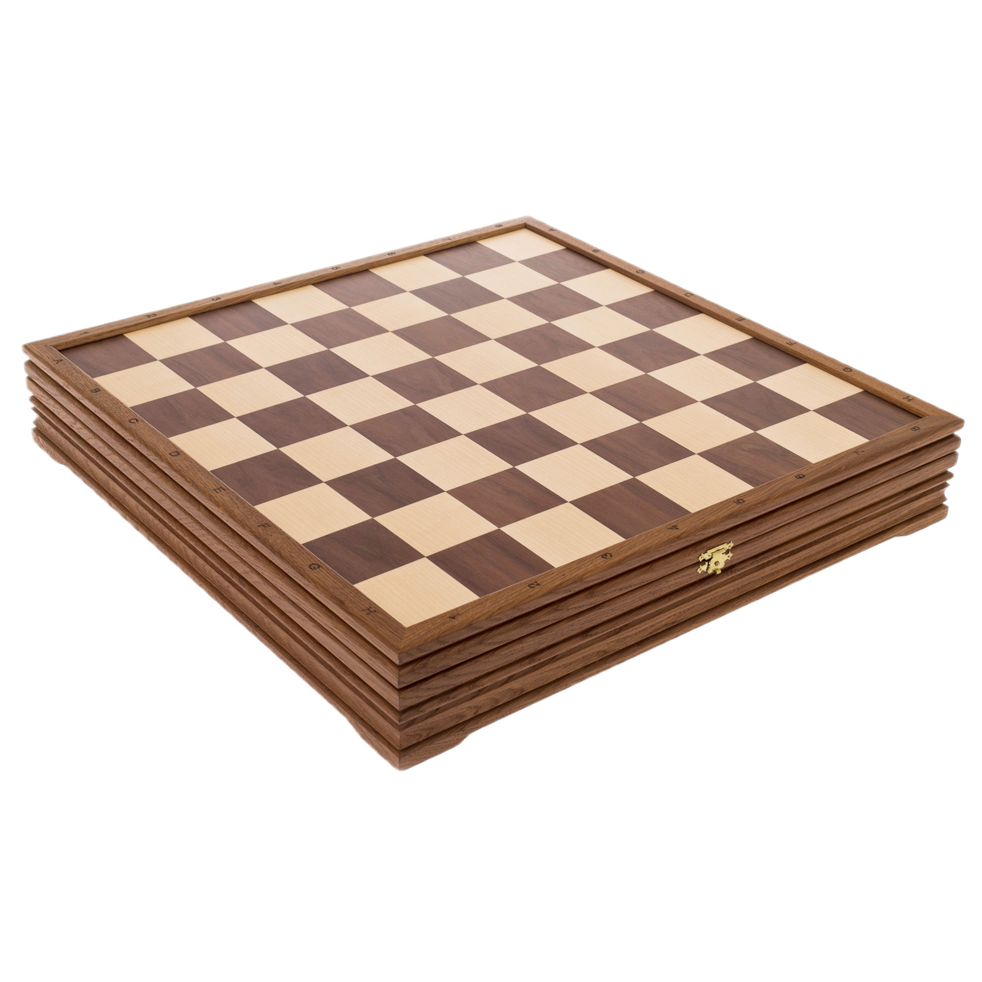 Доска выполнена из мореного дуба — дерева, известного своей долговечностью и богатой текстурой. Этот материал придает шахматам ощущение прочности, роскоши и стабильности, усиливая символизм силы и величия, которым наделены обладатели этого уникального набора. Фигуры же располагаются на подставках из ценных пород дерева, а каждый элемент подчеркивает гармонию формы и функциональности.