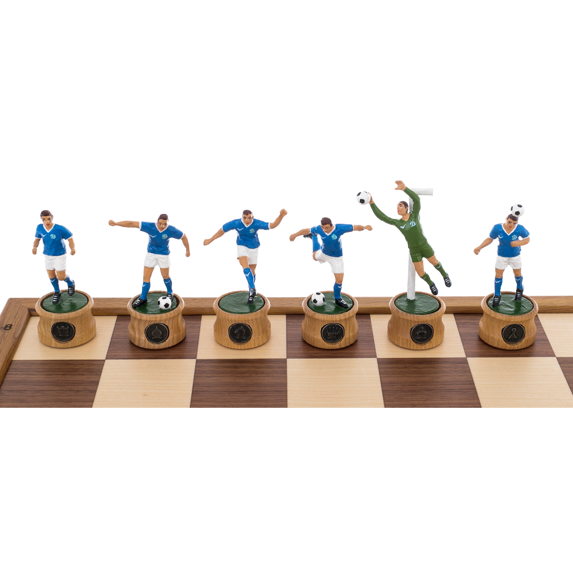 Набор шахмат "Футбол — Динамо" — нацеленная на победу роскошная интерпретация стратегической игры, которая объединяет в себе искусство и спорт, символизируя тактику футбольного поля. Здесь каждый ход — точный пас, а каждая фигура — это игрок. Изготовленные из цинкового сплава, фигуры воспроизводят напряженные моменты игры, передавая динамику футбольного матча, где команды сталкиваются в битве на поле.