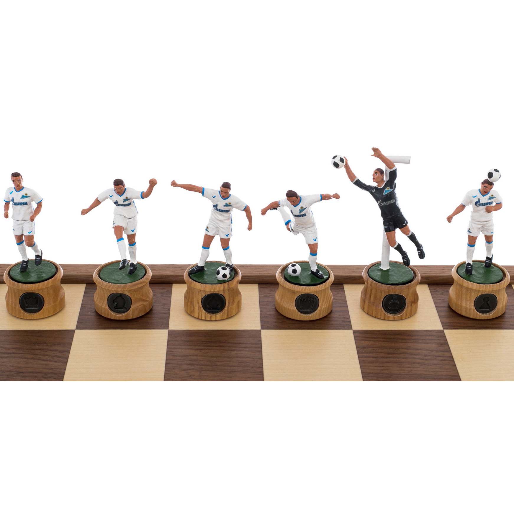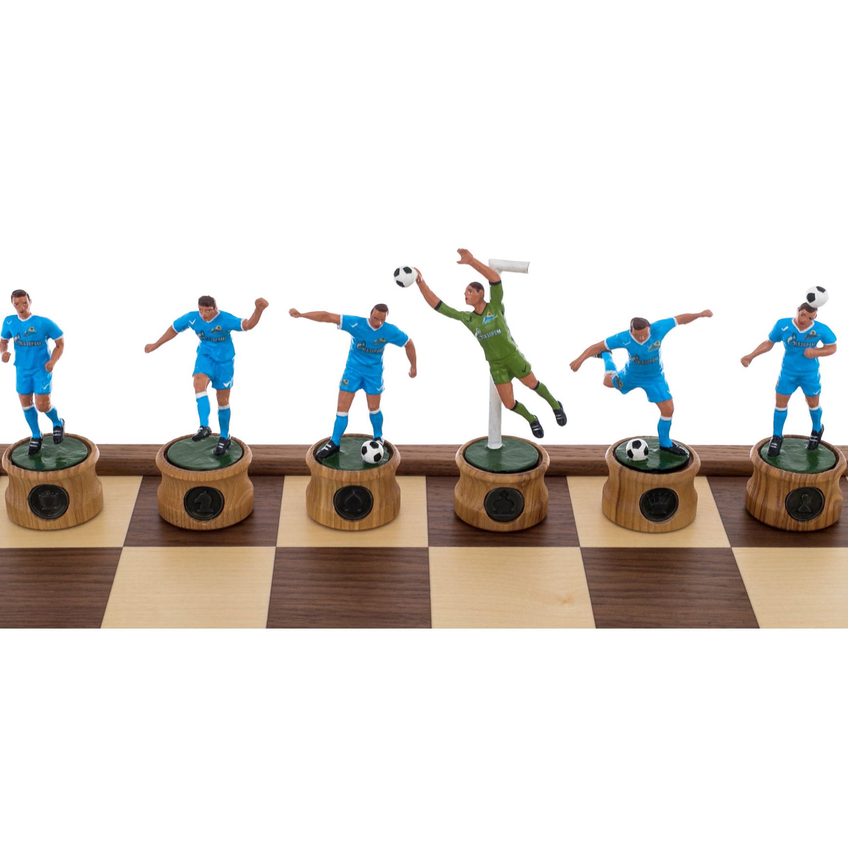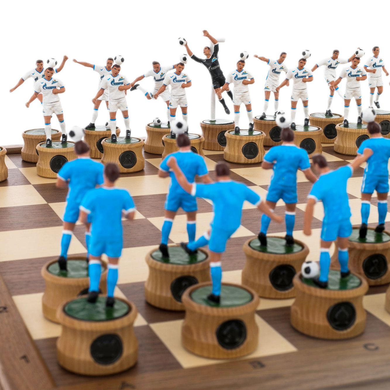 Набор шахмат "Футбол — Зенит" — нацеленная на победу роскошная интерпретация стратегической игры, которая объединяет в себе искусство и спорт, символизируя тактику футбольного поля. Здесь каждый ход — точный пас, а каждая фигура — это игрок. Изготовленные из цинкового сплава, фигуры воспроизводят напряженные моменты игры, передавая динамику футбольного матча, где команды сталкиваются в битве на поле.