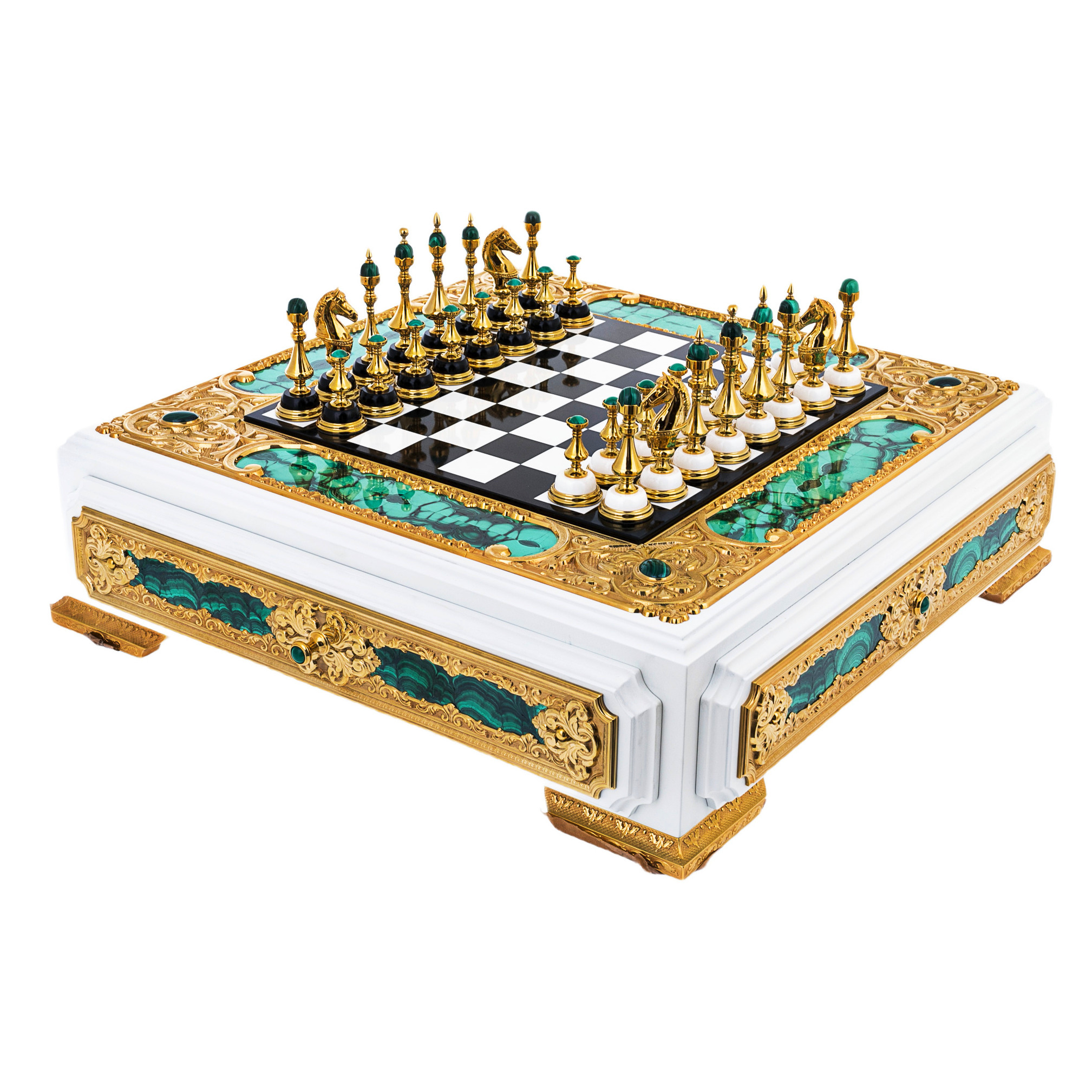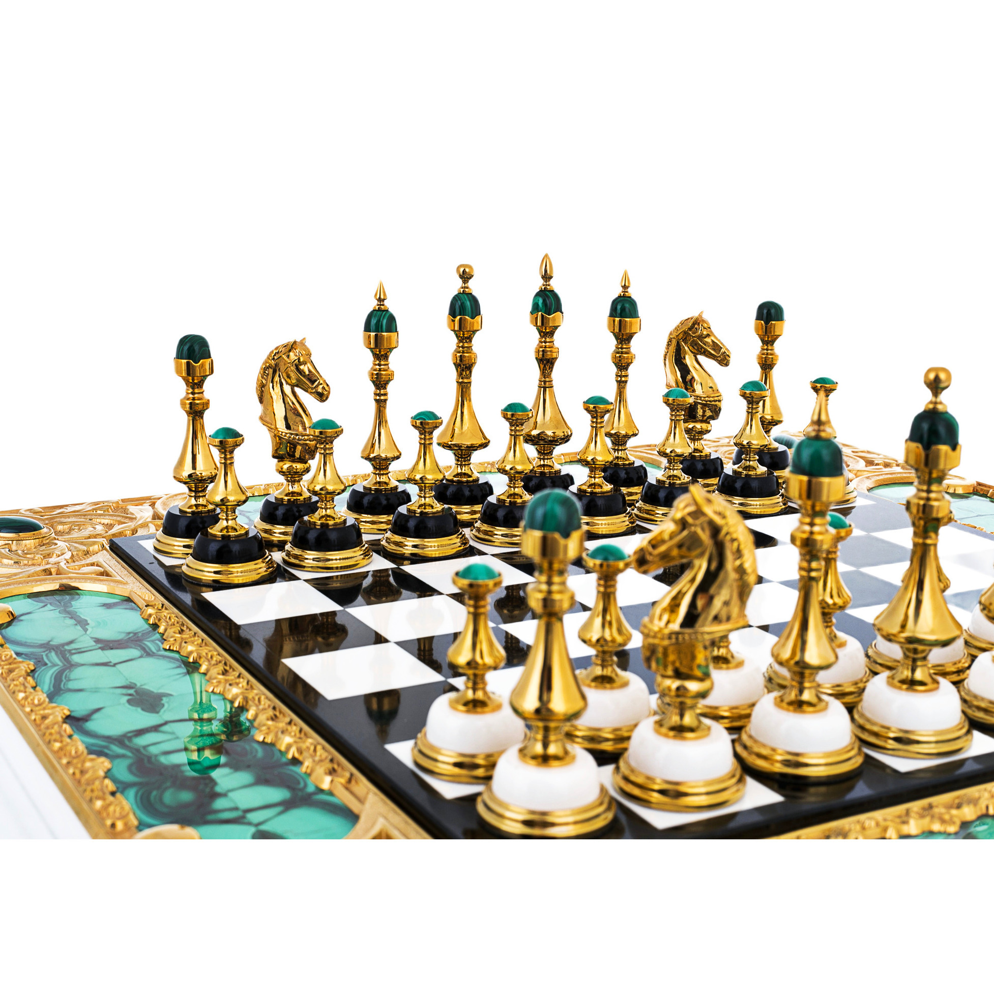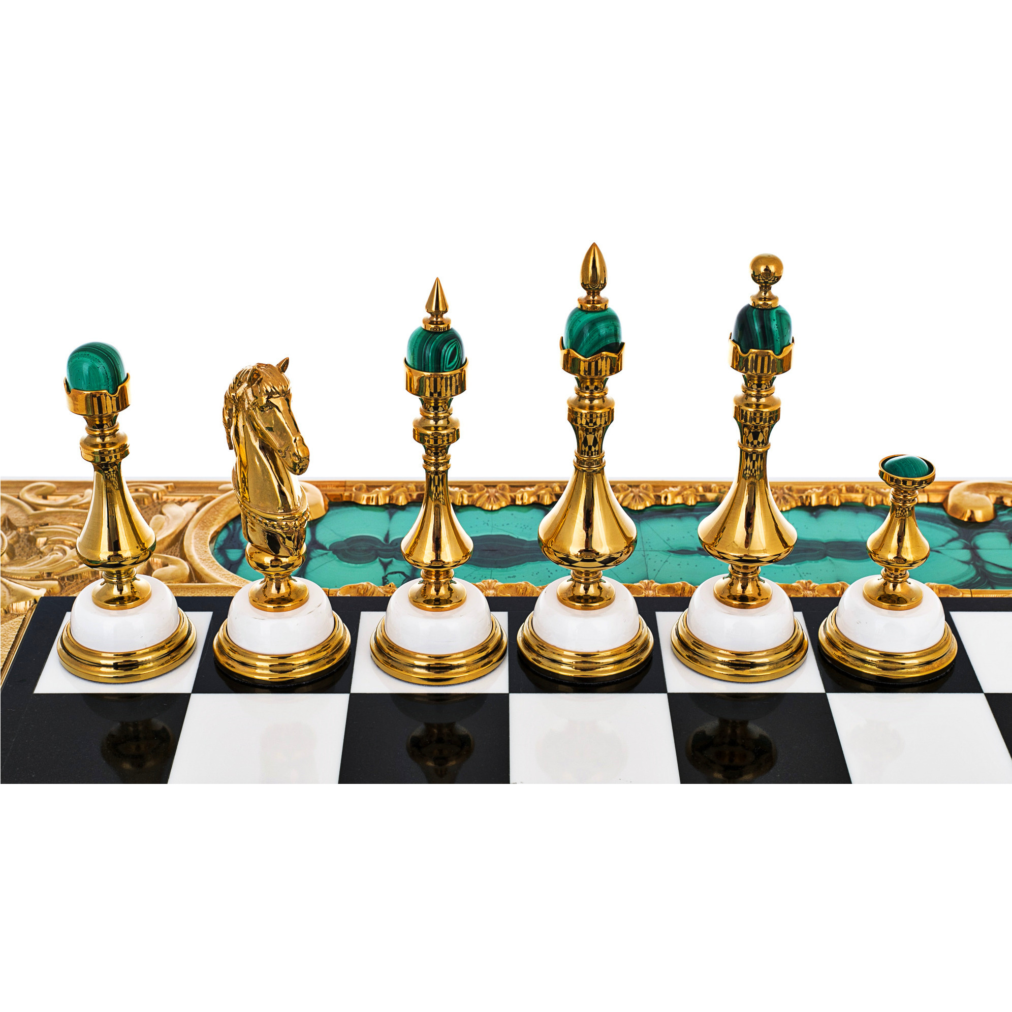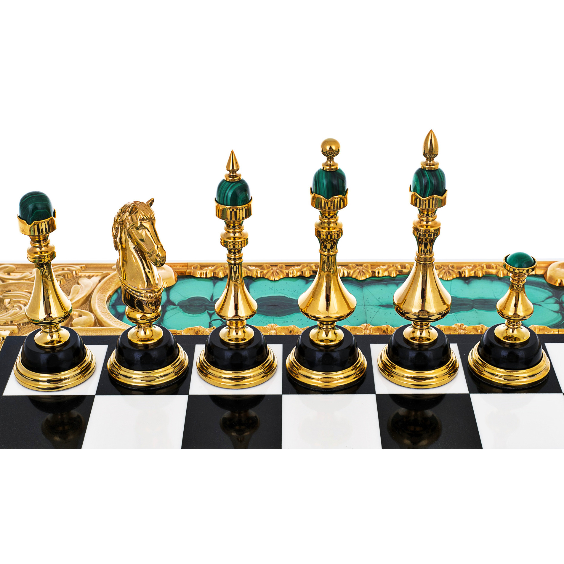 Шахматы из мрамора, долерита, малахита и кахолонга "Королевские"