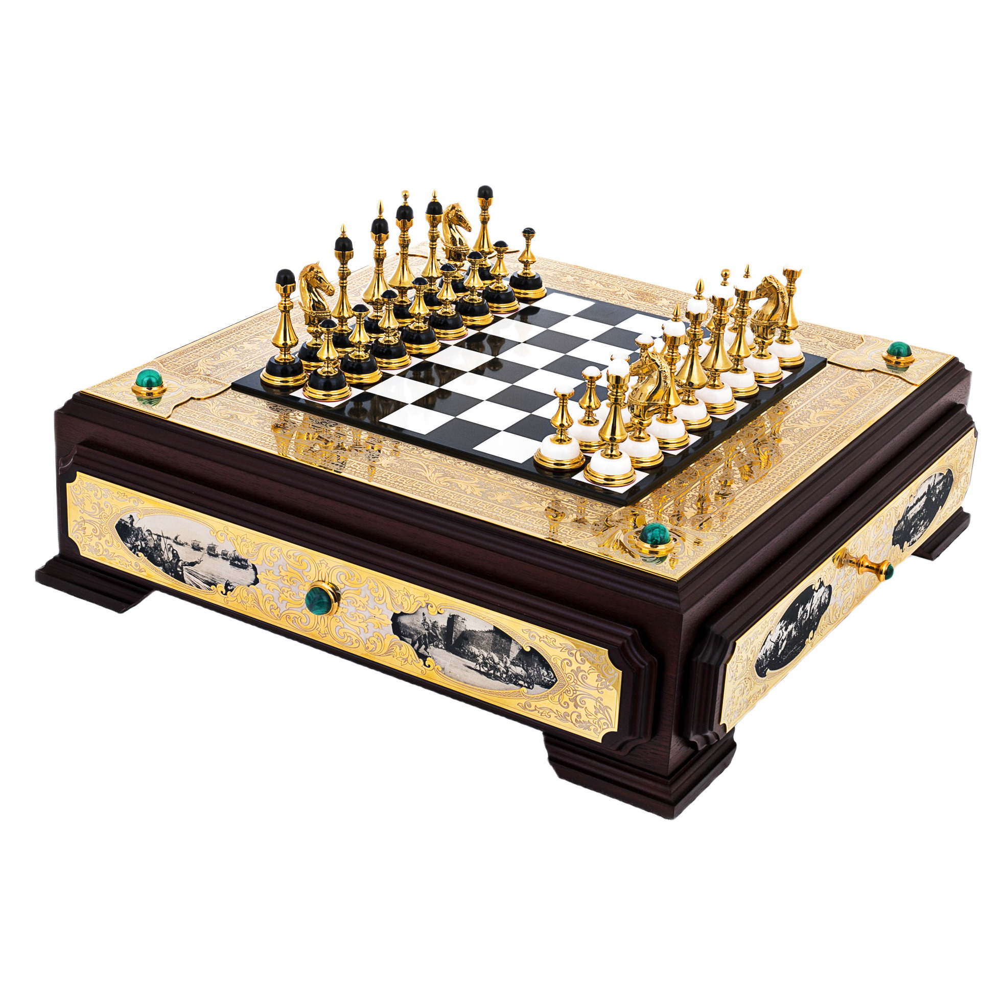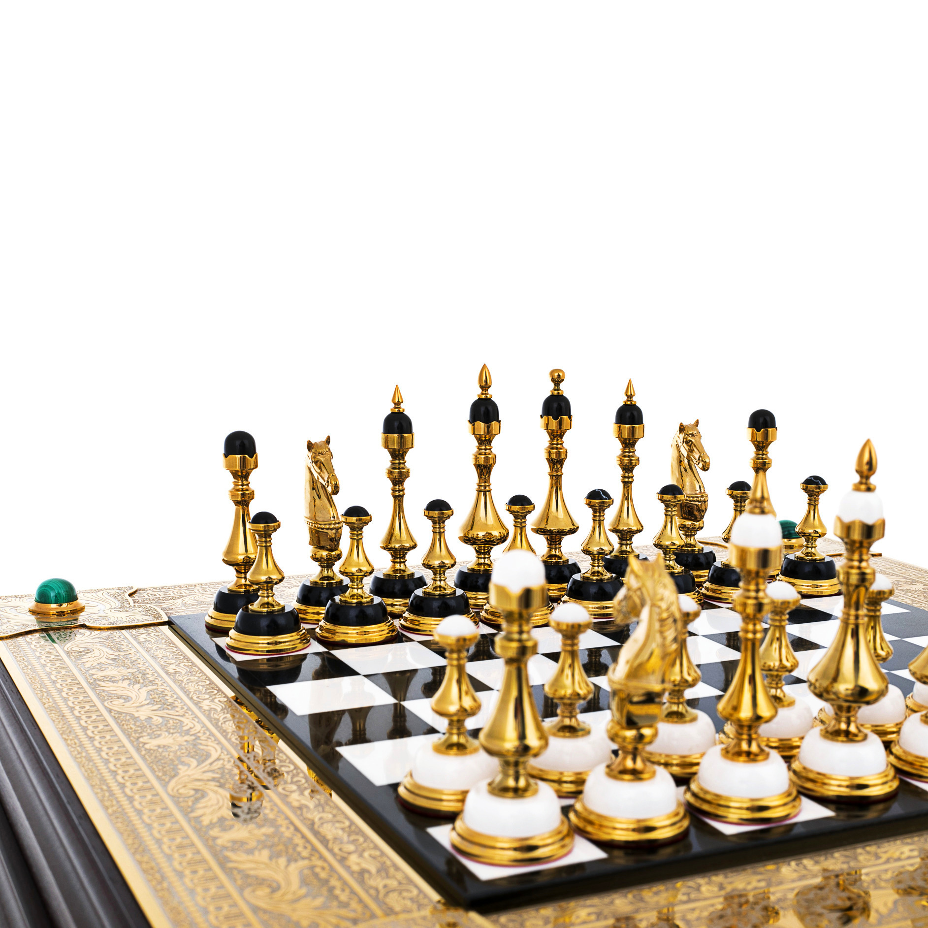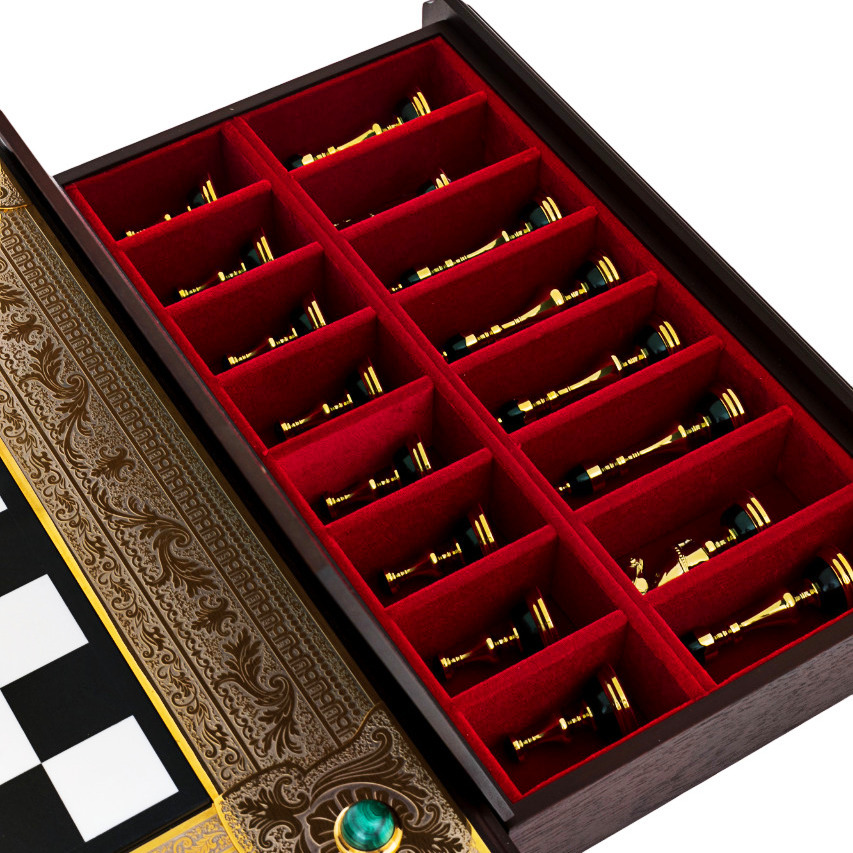 Шахматы из мрамора, долерита, малахита и кахолонга