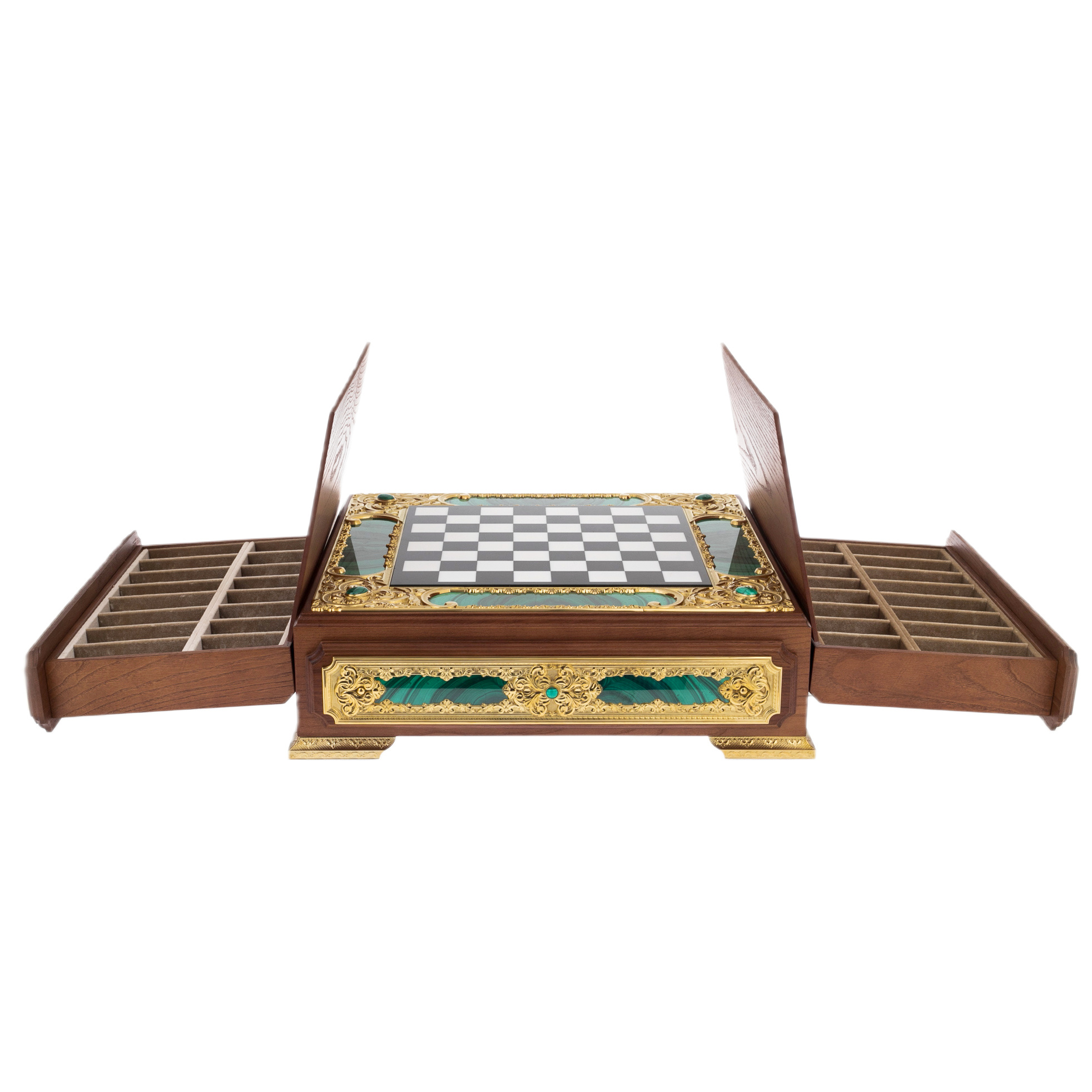 Материалы: дерево, кахолонг, мрамор, долерит, малахит.