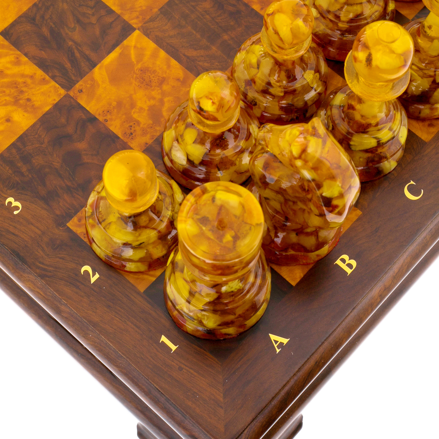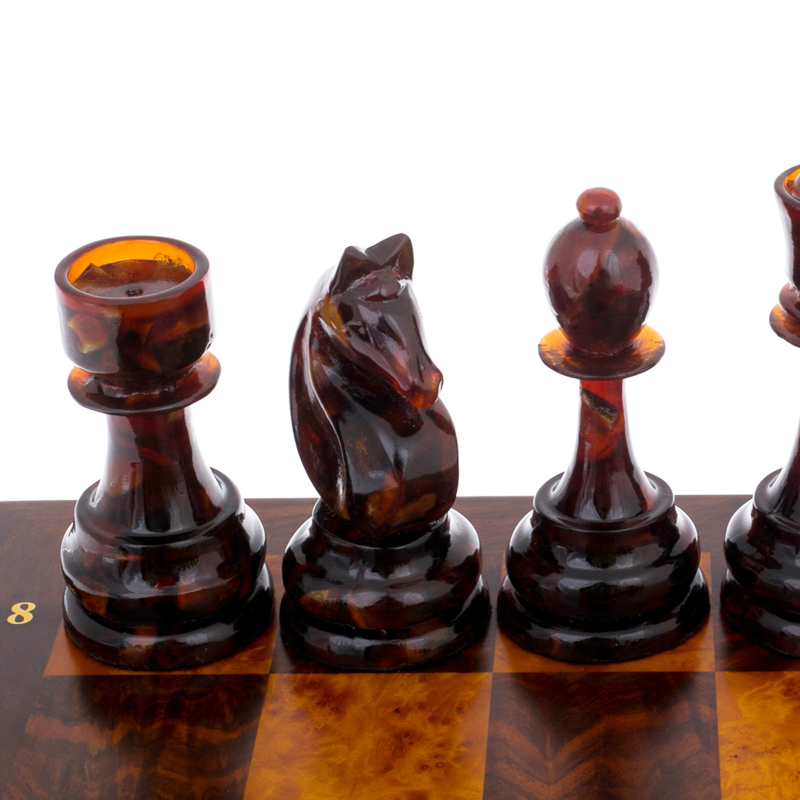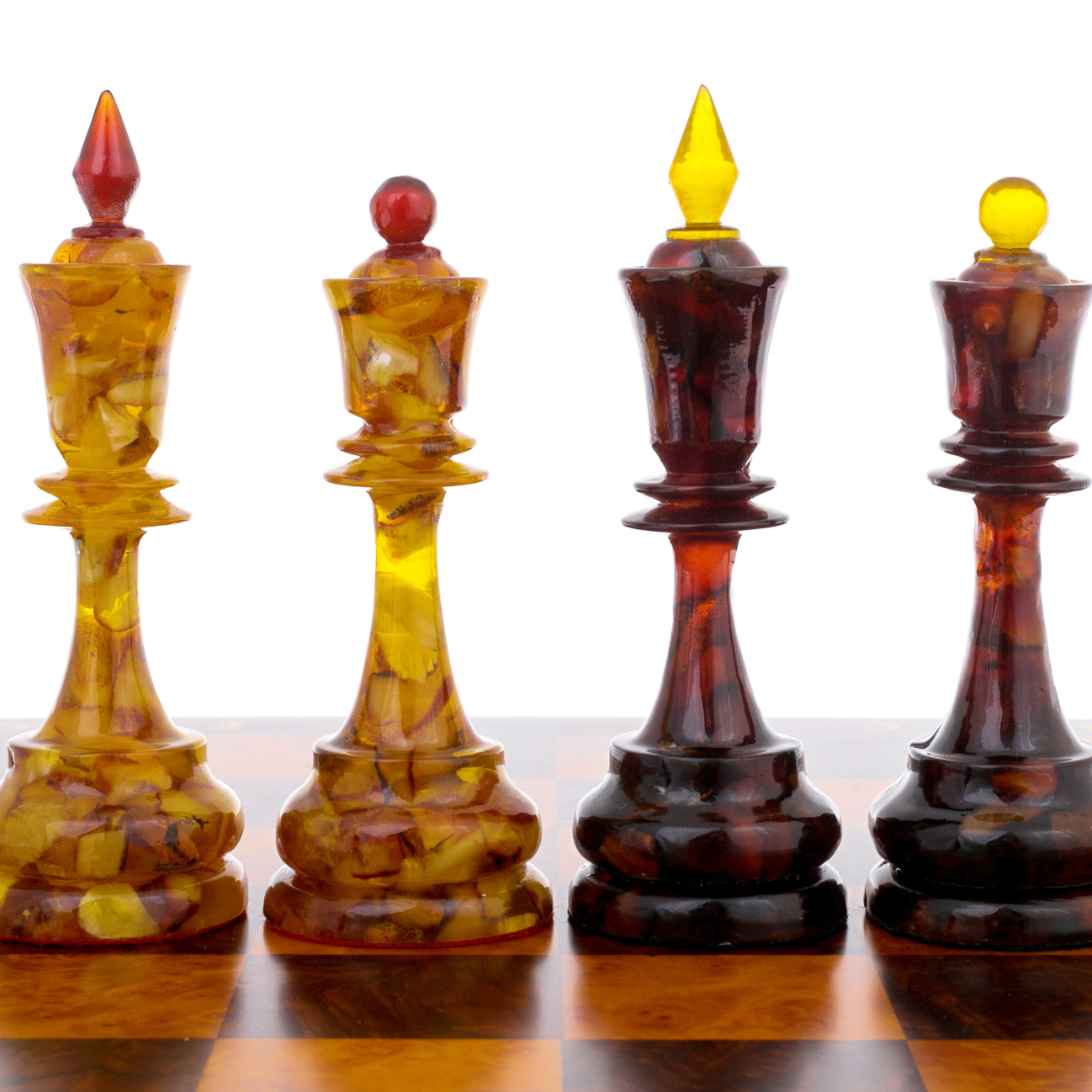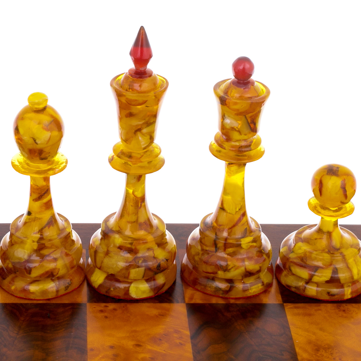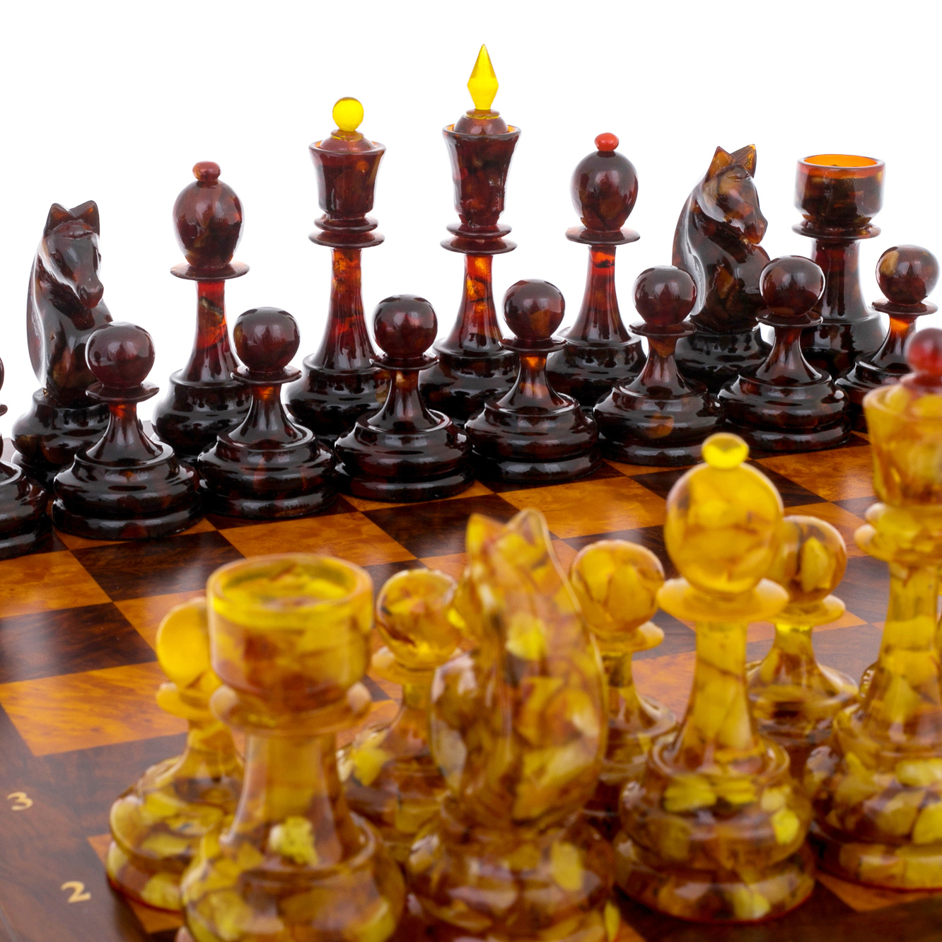 Янтарь — это не только красивый и редкий природный камень, но и символ тепла, света и энергии. Его уникальная структура, образованная из окаменевшей смолы древних деревьев, делает каждую фигуру неповторимой по фактуре и оттенку. Янтарь издревле ценился за свои лечебные свойства и способность приносить удачу, что делает этот шахматный набор не только прекрасным украшением интерьера, но и талисманом для своего владельца.