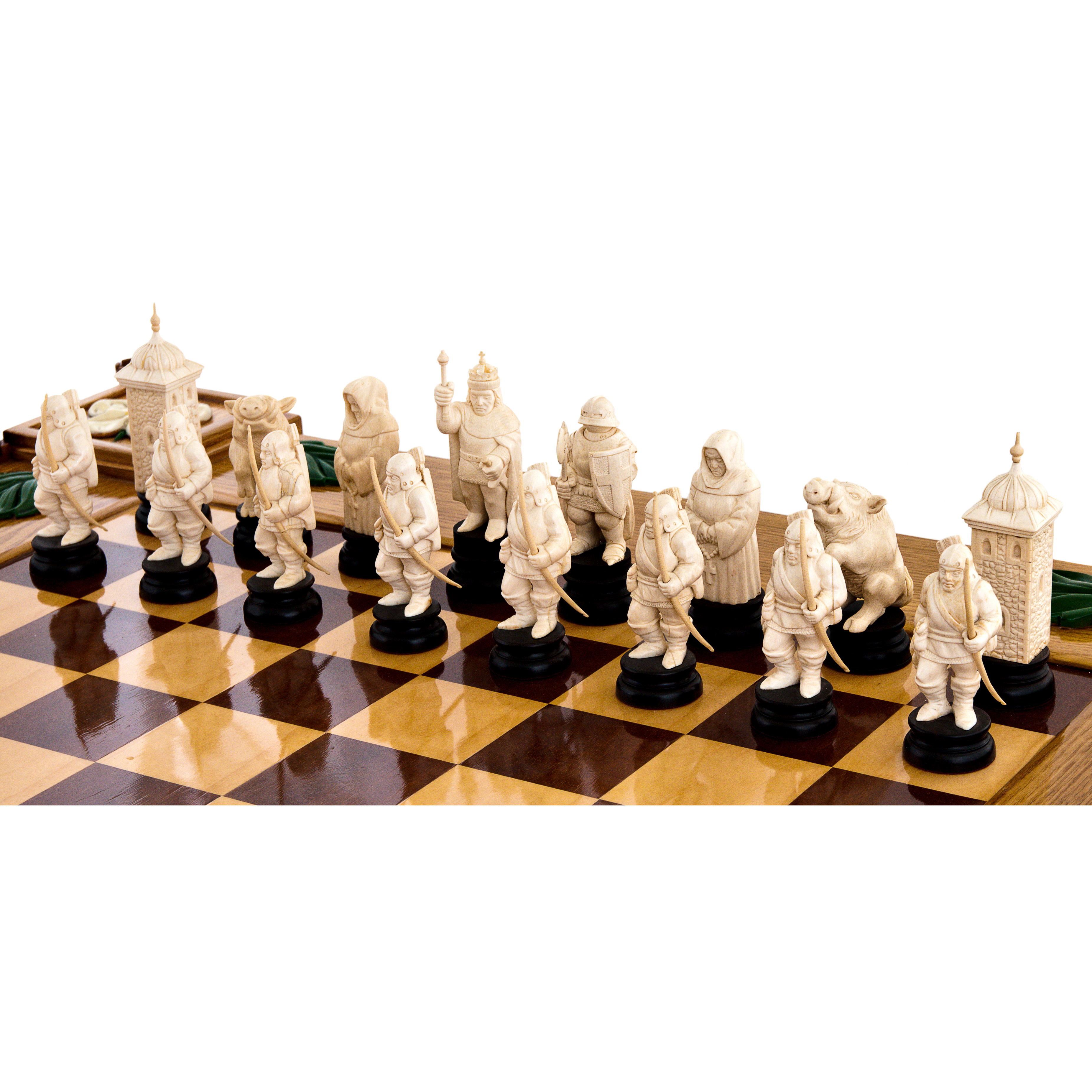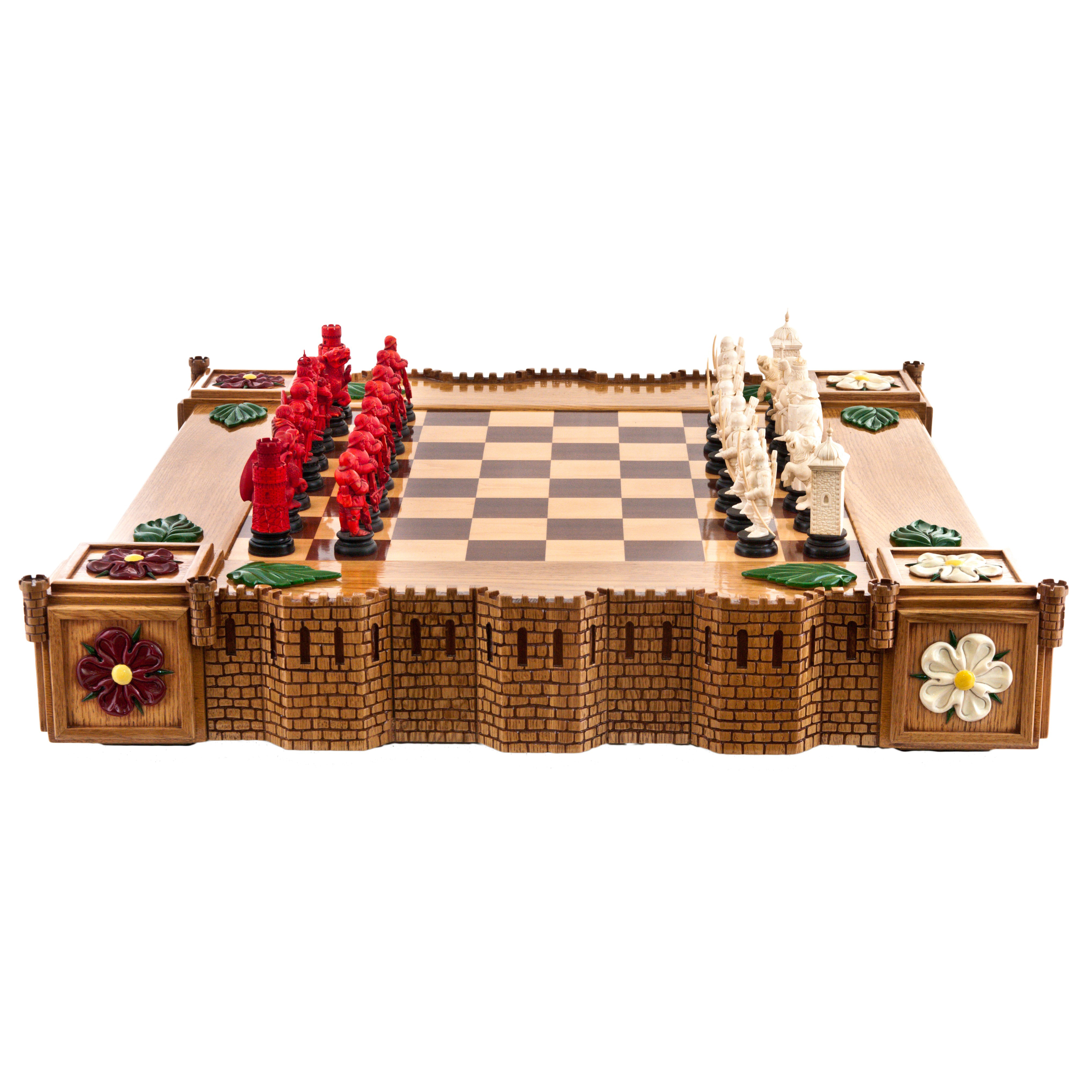 Эти шахматы — не просто игра, это символ власти, силы и амбиций. Каждая фигура белых и красных войск здесь создана с той же тщательностью, с какой воины и короли готовились к битве. Белая и Алая розы, символы Йорков и Ланкастеров, словно оживают в каждой партии. Шахматные фигуры не только превосходно выполнены вручную, они дышат историей, передавая дух той эпохи: благородные рыцари, гордые короли и королевы, скрытые под темной мантией монахи, воссоздающие легендарных участников войны.
