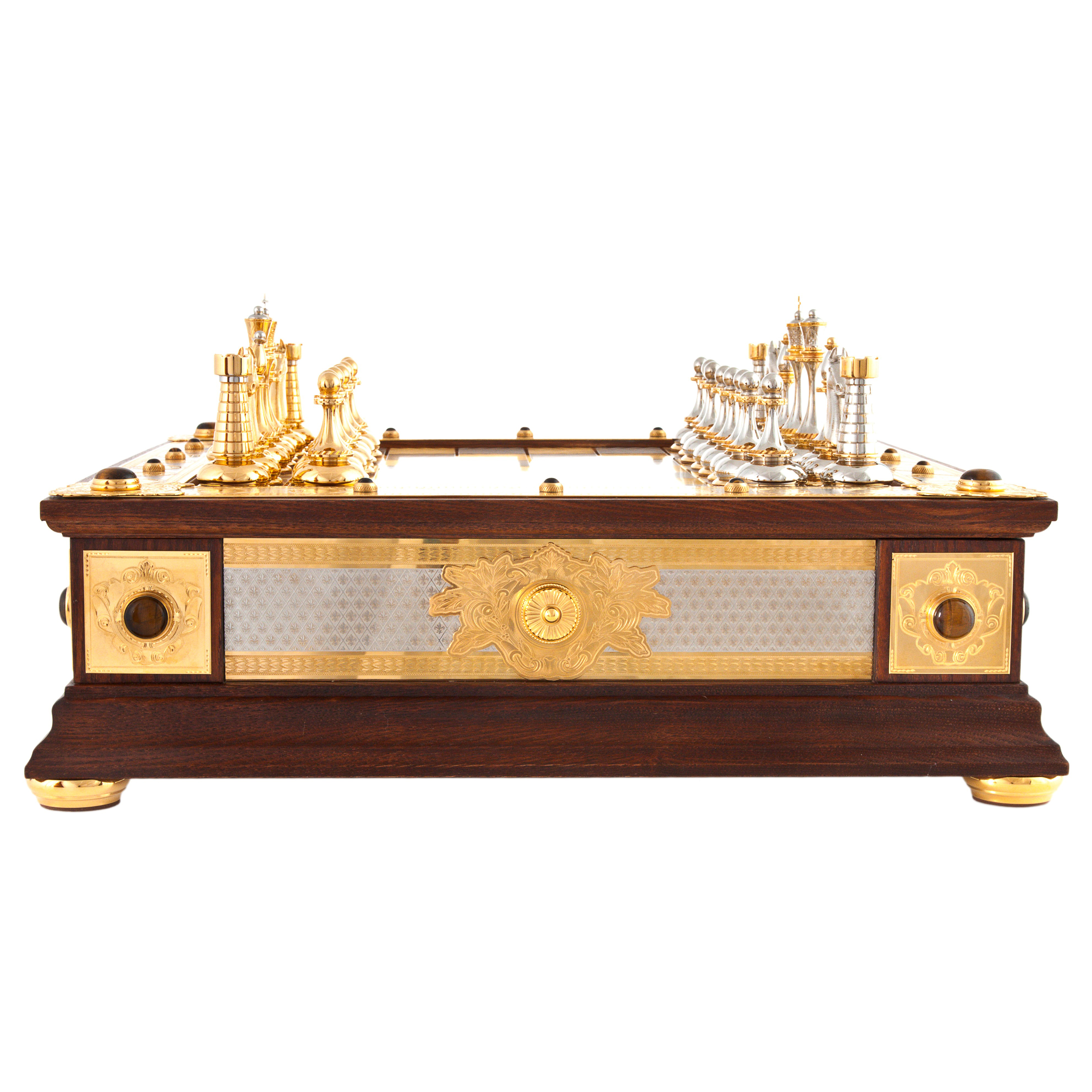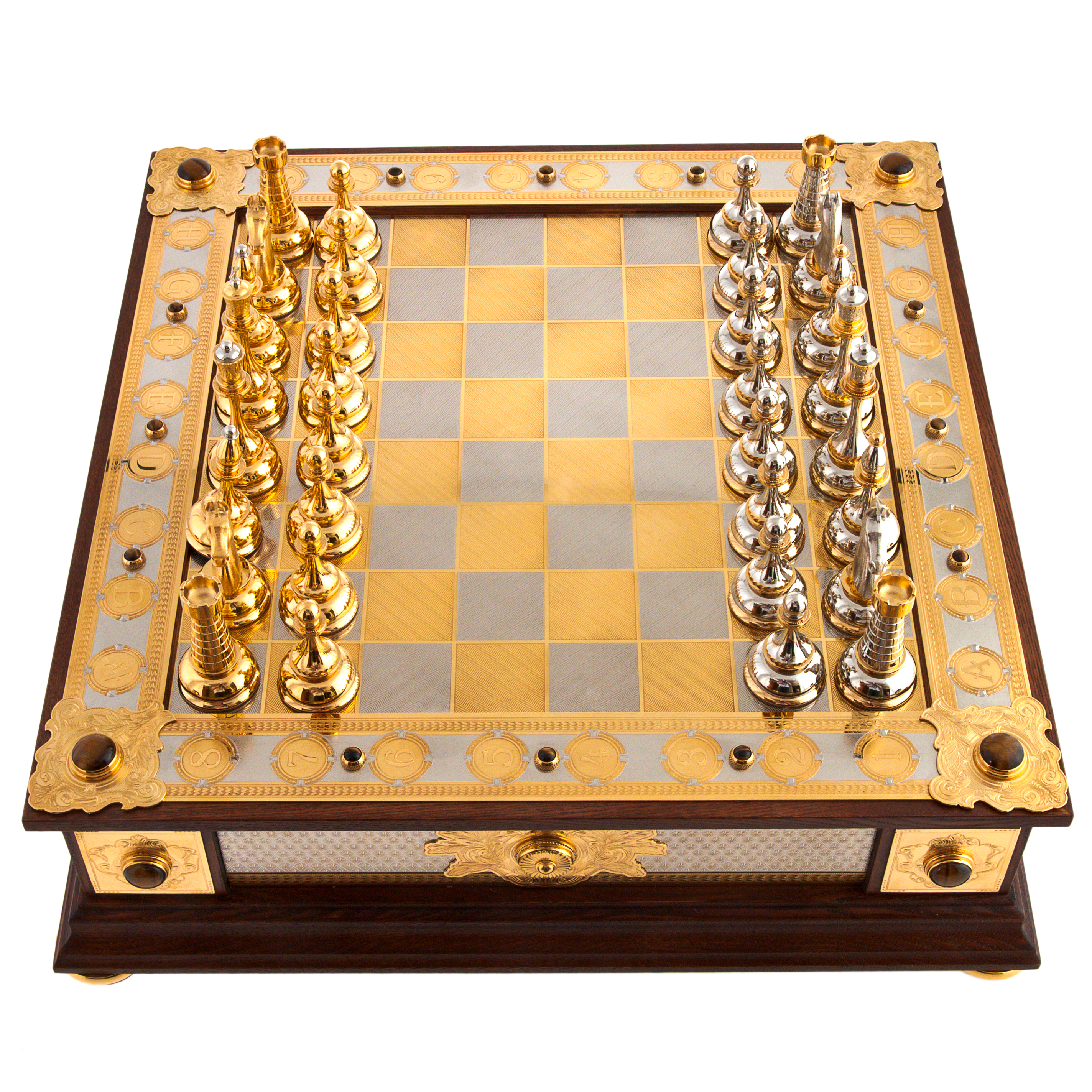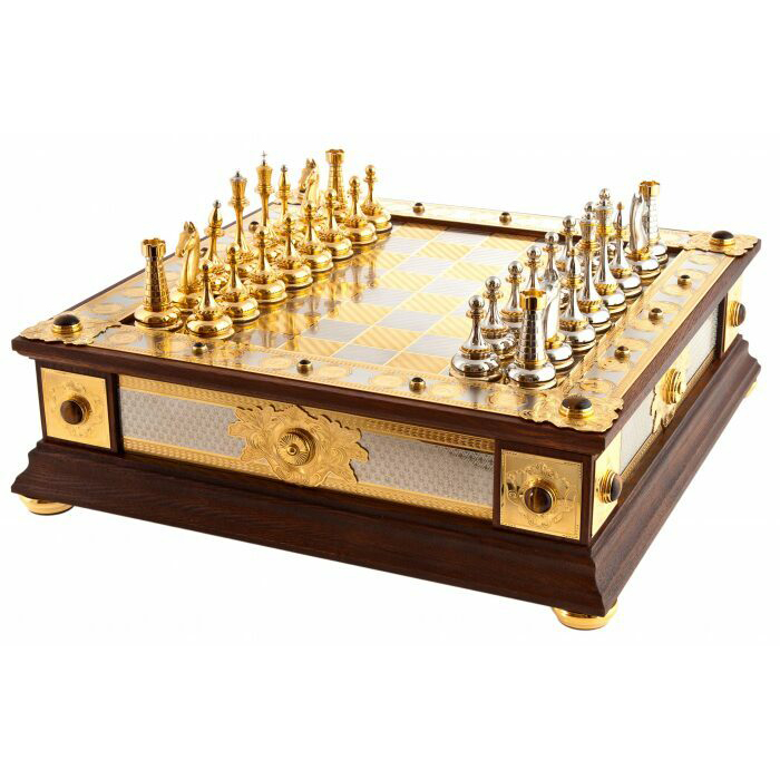 Шахматы из ясеня и тигрового глаза "Царские" Златоуст