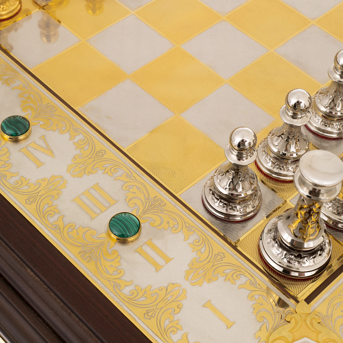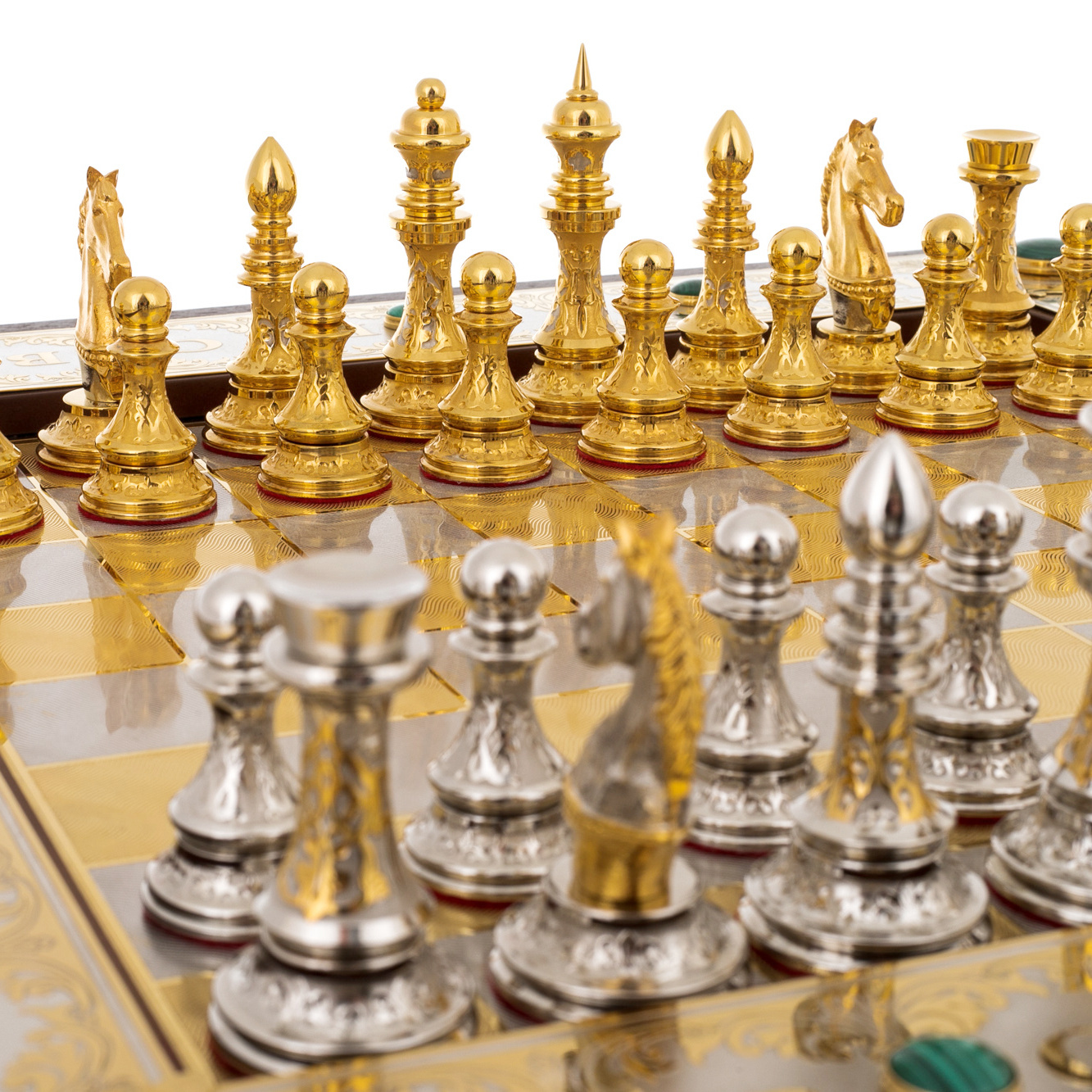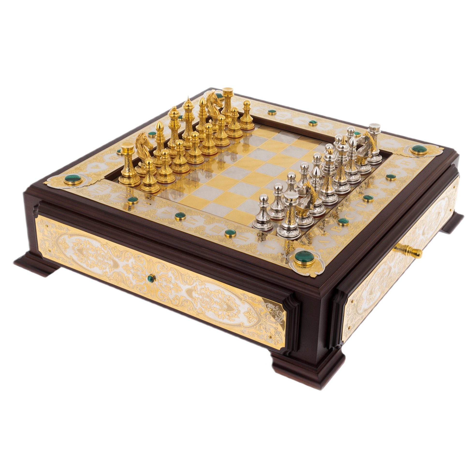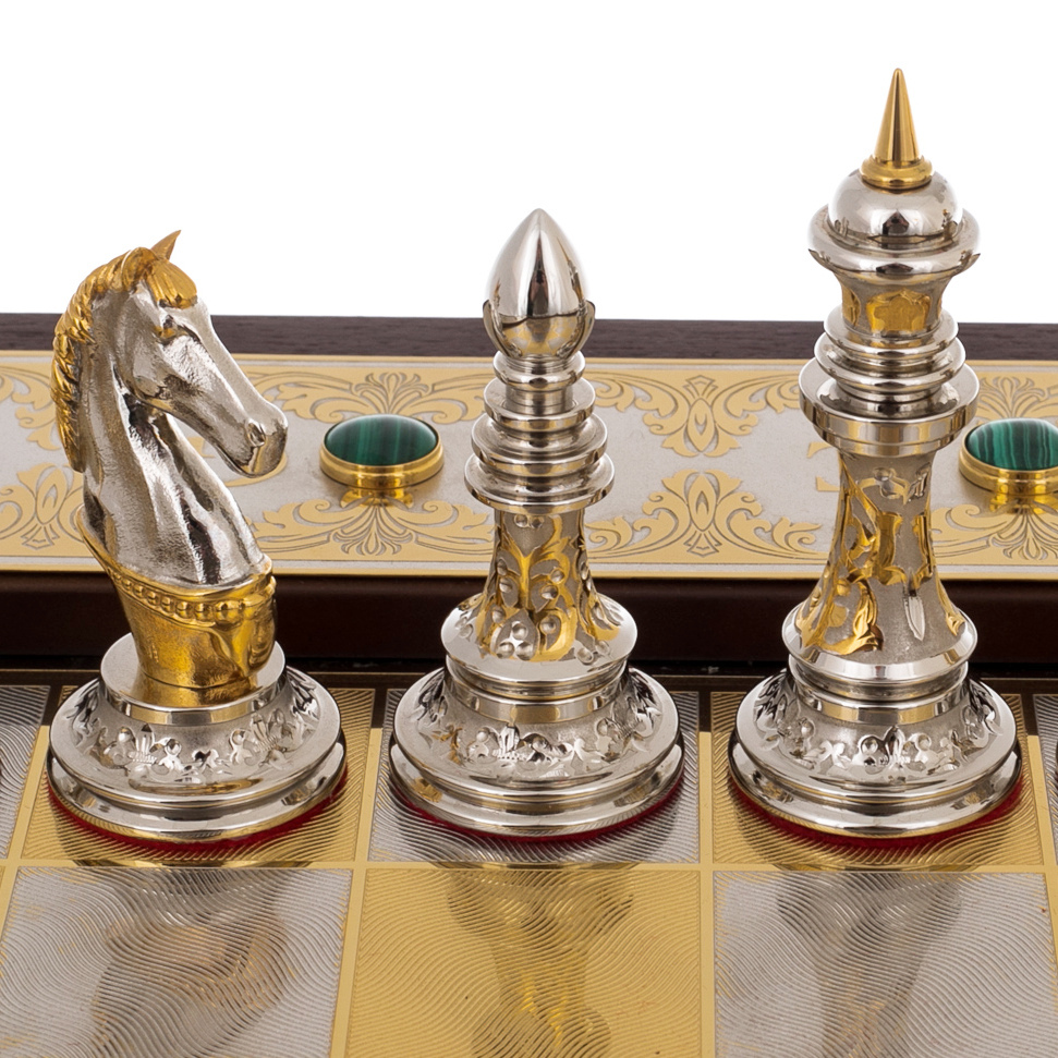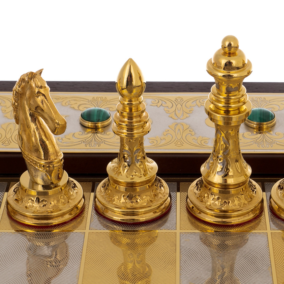 Шахматы "Царские" с малахитом