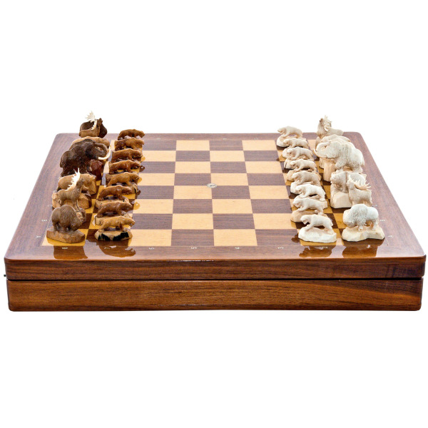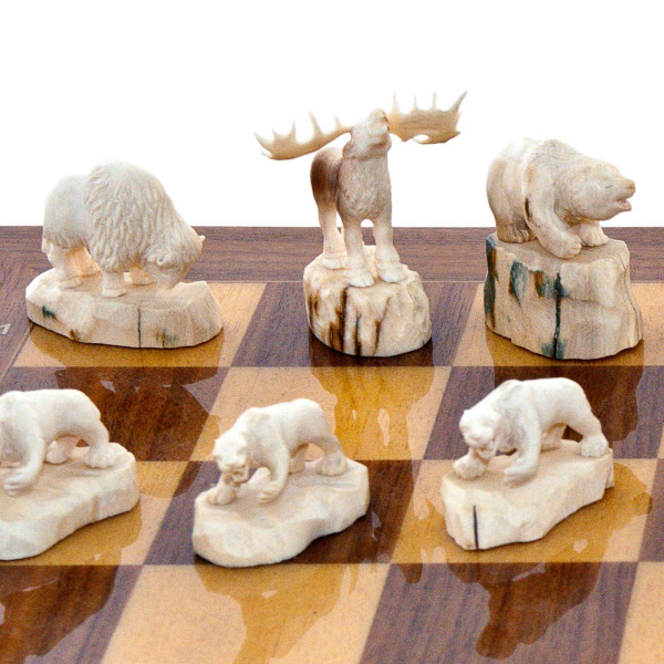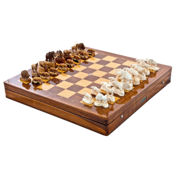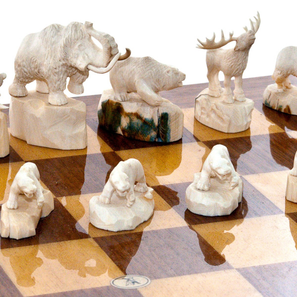 Шахматы из кости мамонта "Король мамонт и его эскорт мини"