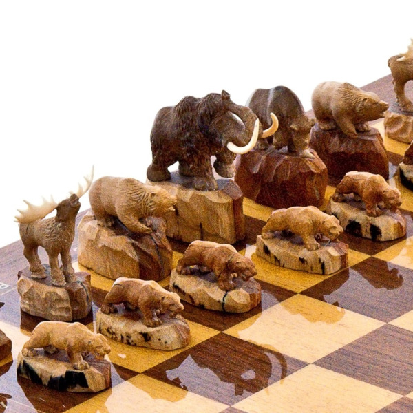 Каждая фигура напоминает героев древних петроглифов и писаниц — первых искусств человечества, созданных для передачи знаний сквозь поколения. Они как зеркала, в которых запечатлены образы не только зверей, но и самой сути мира, где человек и природа едины, где каждый рисунок на камне — это послание, которое эхом отзывается в нашем сердце. Играя на этой доске, вы будто восстанавливаете связь с первобытными силами, ощущая себя мастером, творящим свою реальность в этих древних образах.