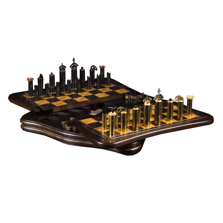 Этот набор адресован тем, кто мыслит на перекрёстке эпох и не ищет оправданий для своей исключительности. Он идеально впишется в интерьер кабинета из тёмного дерева с латунными акцентами, будет уместен в коллекции технологического романтика, архитектора, философа, бизнесмена с инженерным мышлением. «Стимпанк» — это не стиль, это мир, в котором правила шахматной партии подчиняются законам воображения, а каждый ход звучит, словно щелчок старинного механизма.