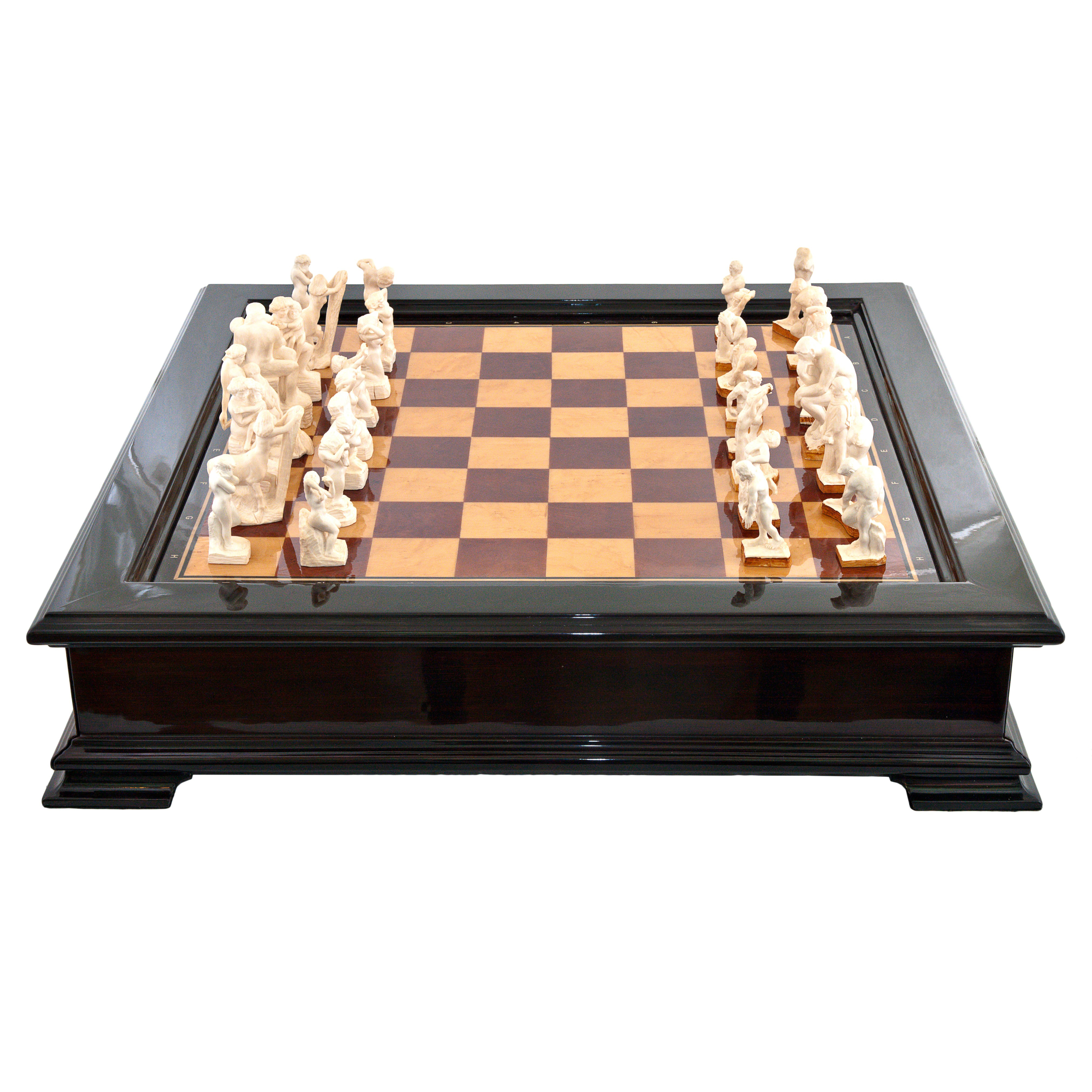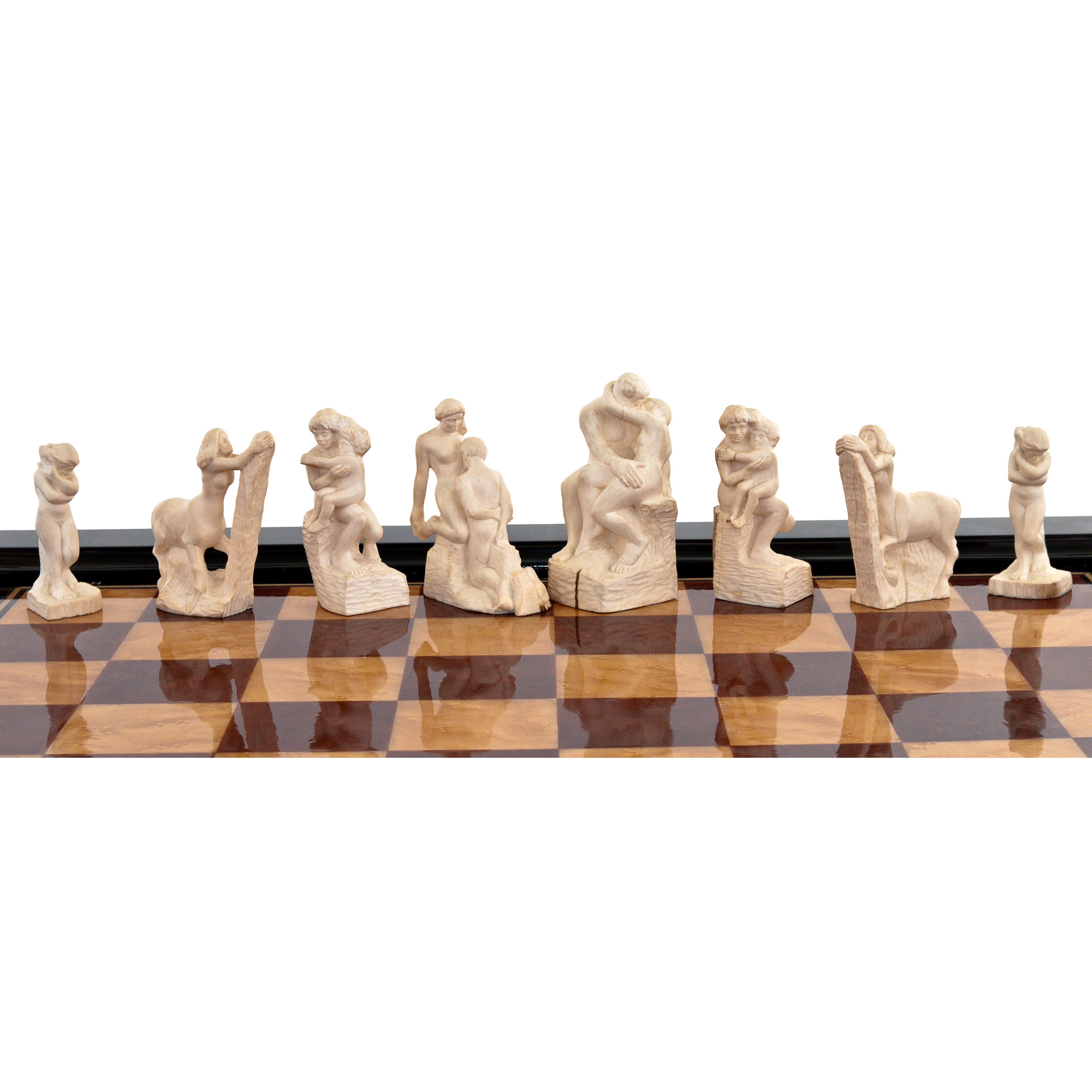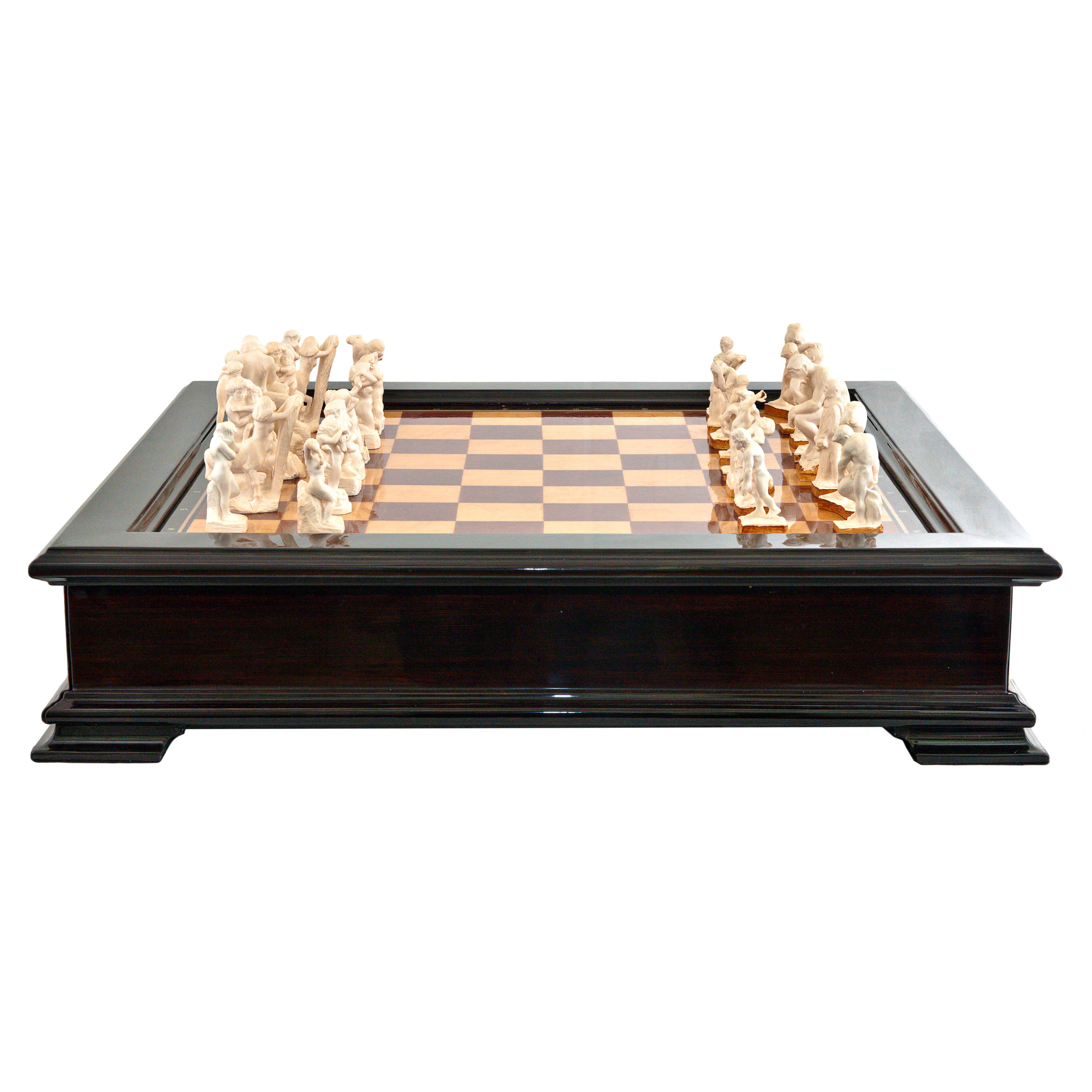 Фигуры выполнены с мастерством, присущим лишь величайшим художникам. Они погружают игрока в мир философии и эмоций, в котором искусство переплетается с игрой, а каждая партия превращается в диалог между разумом и чувством, между борьбой за победу и осознанием непреходящей ценности искусства. Каждая фигура имеет свой символический смысл, который придаёт глубину каждой партии, делая её не просто стратегической игрой, но актом созидания и размышления.
