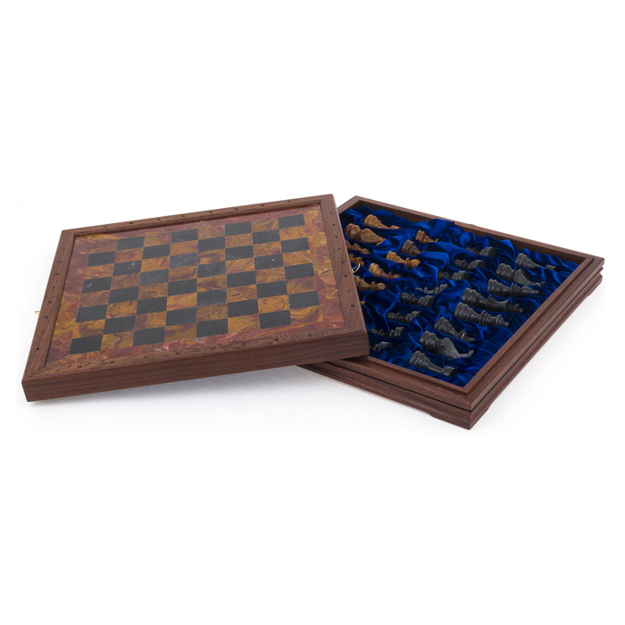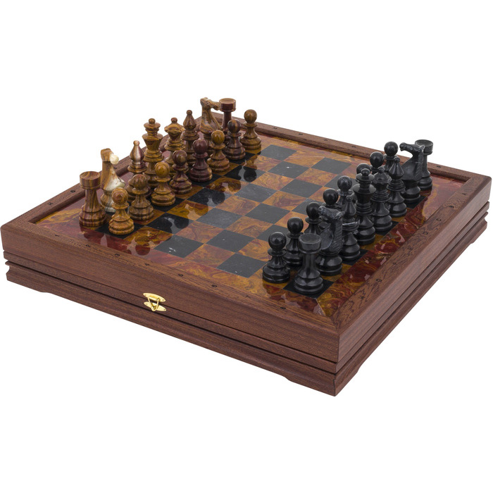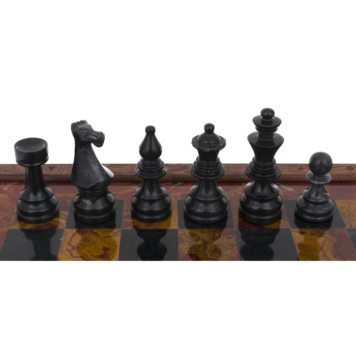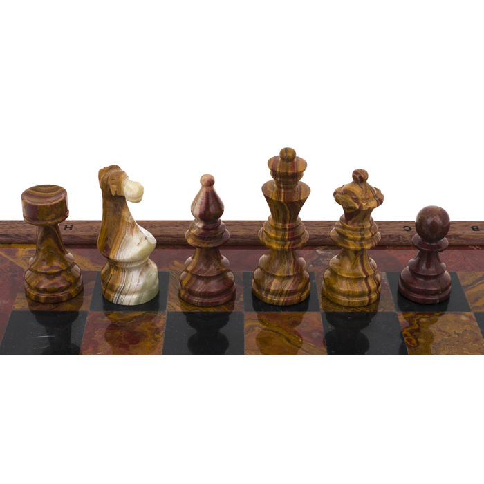 Шахматы из красного дерева, красного оникса и мрамора "Европейские"