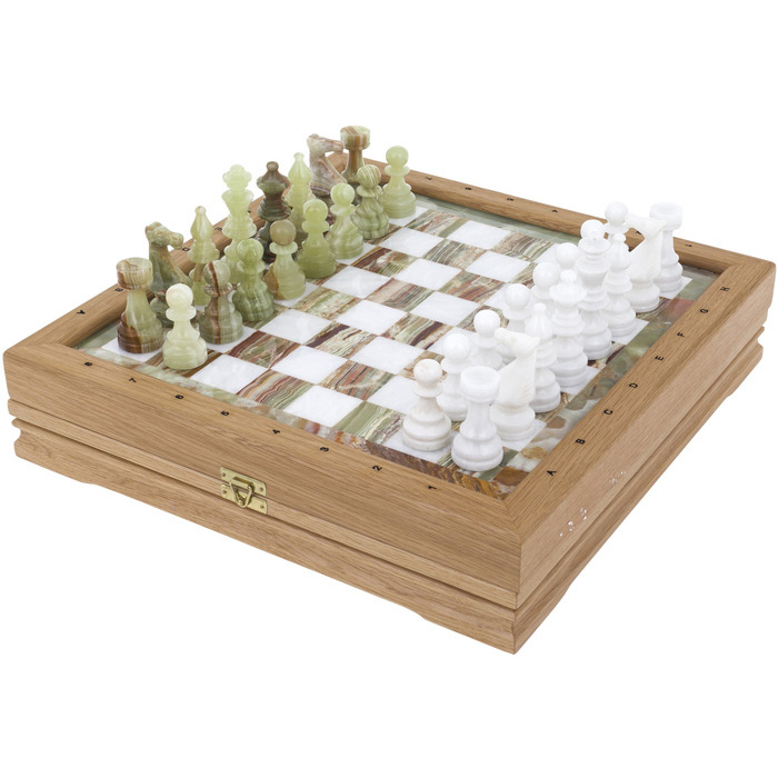 Шахматы из дуба, оникса и мрамора "Европейские" малые