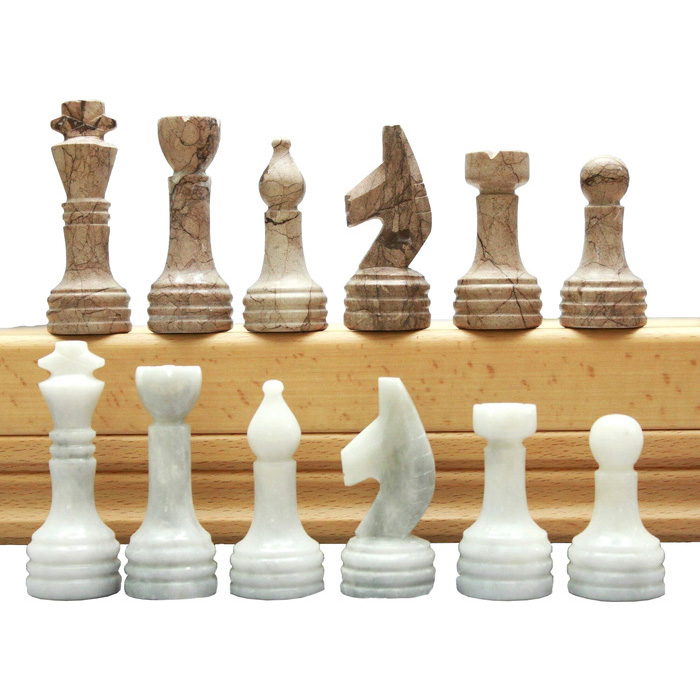 Шахматы из бука "Стандартные"с фигурами из розового мрамора и белого оникса