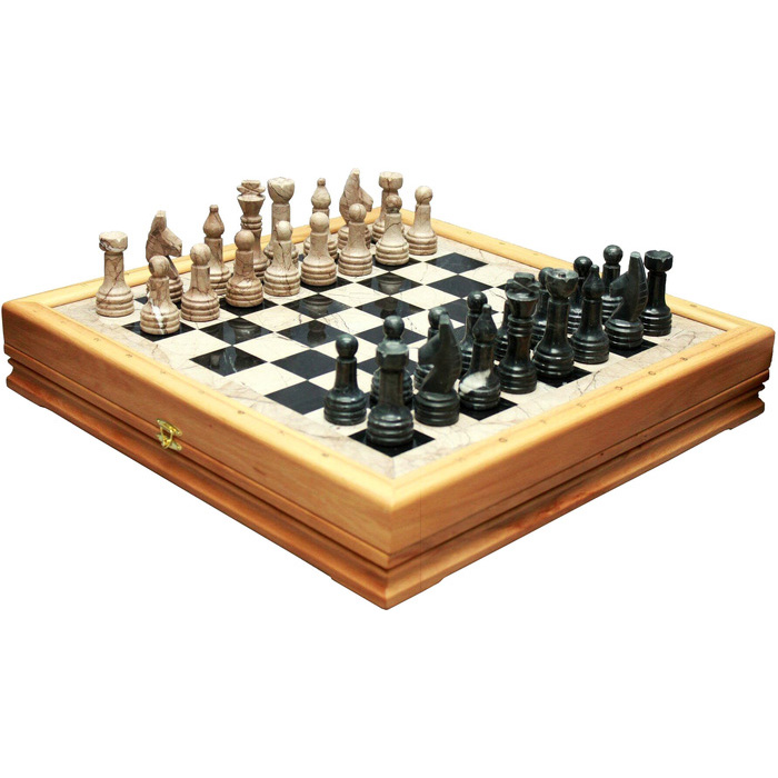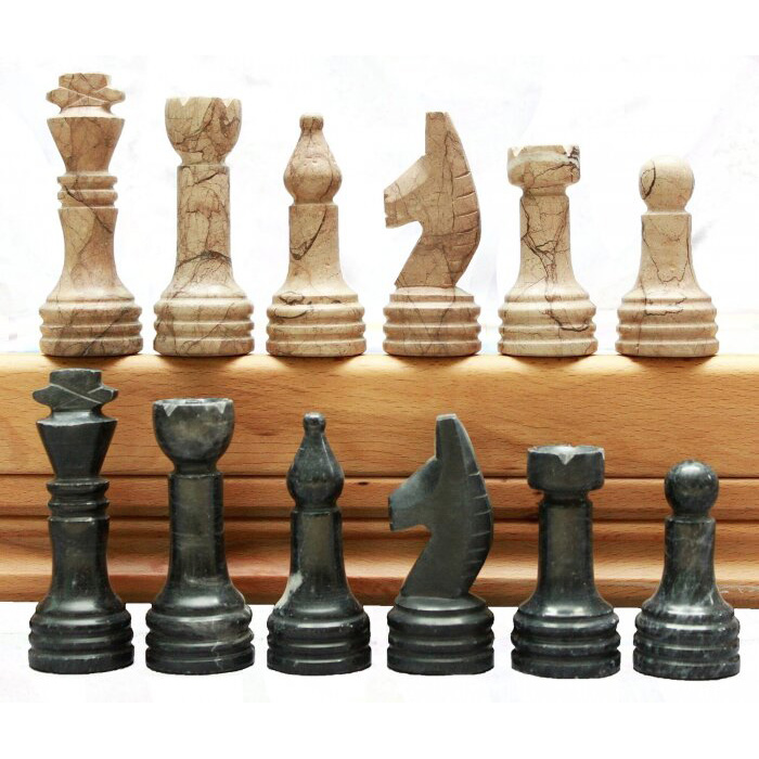 Шахматы из массива кавказского бука "Стандартные" фигуры из черного и розового мрамора
