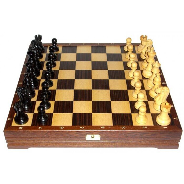 Шахматы из массива венге "Классические" утяжеленные, фигуры из самшита и эбенового дерева