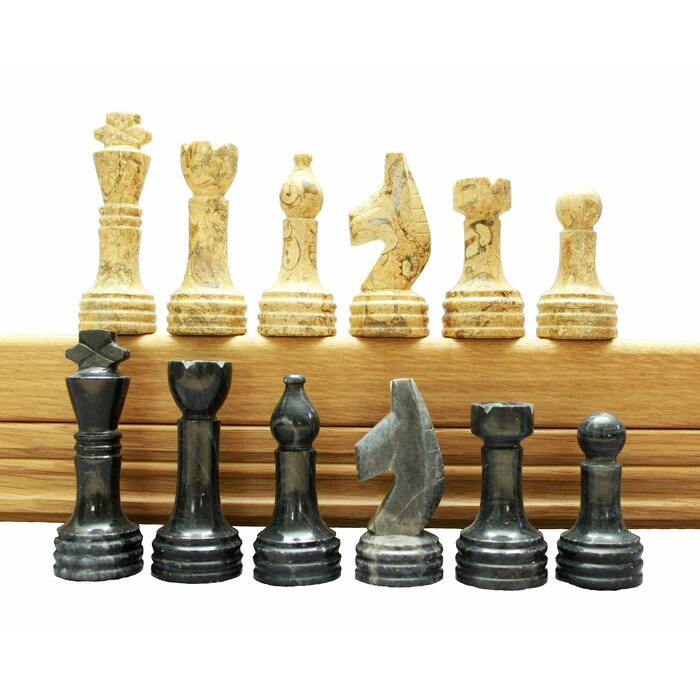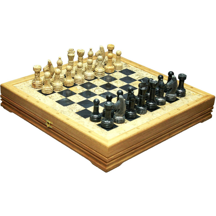 Шахматы из массива дуба, фигуры черного мрамора и мрамора-ракушечника