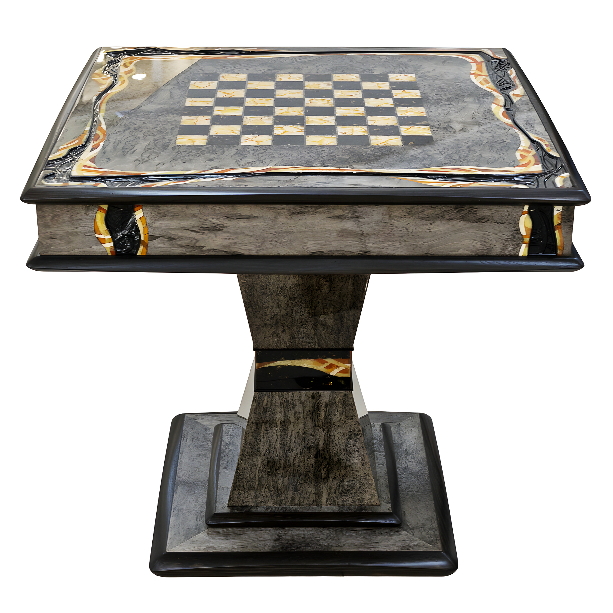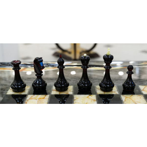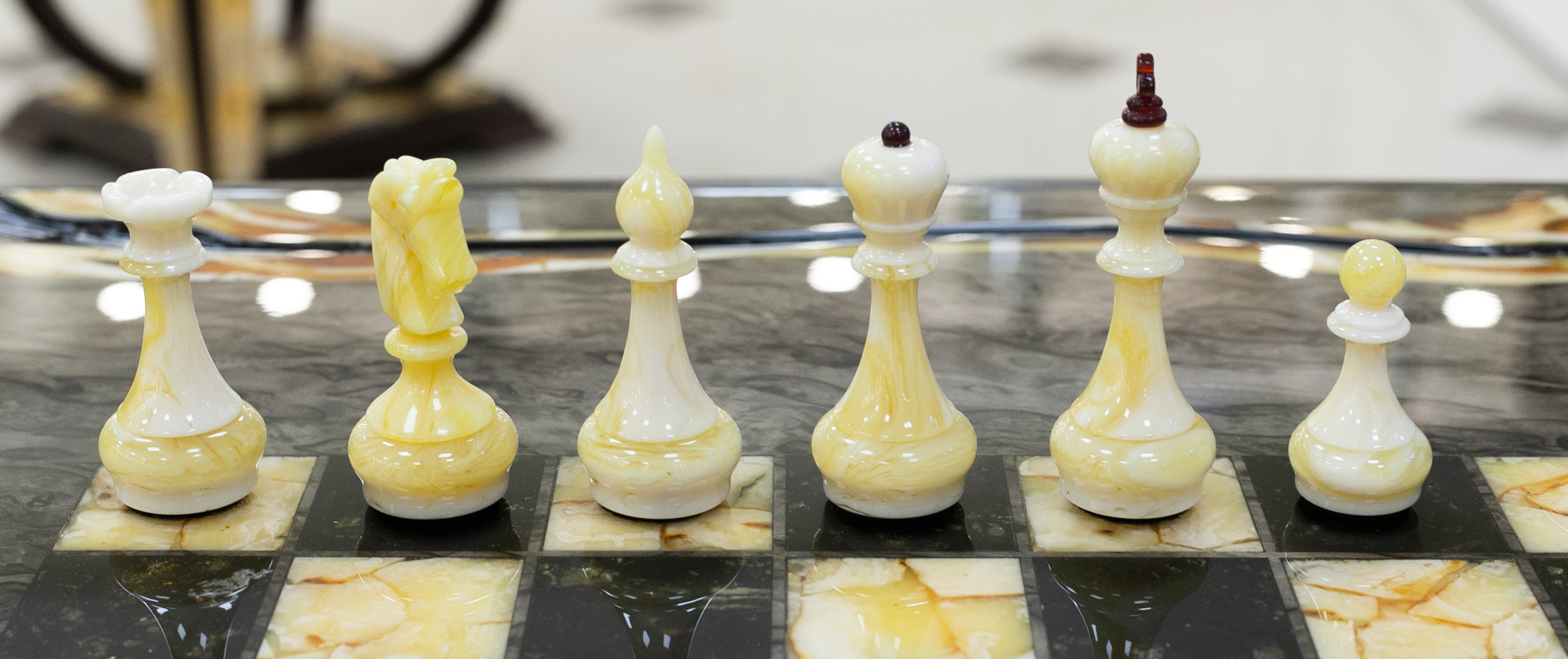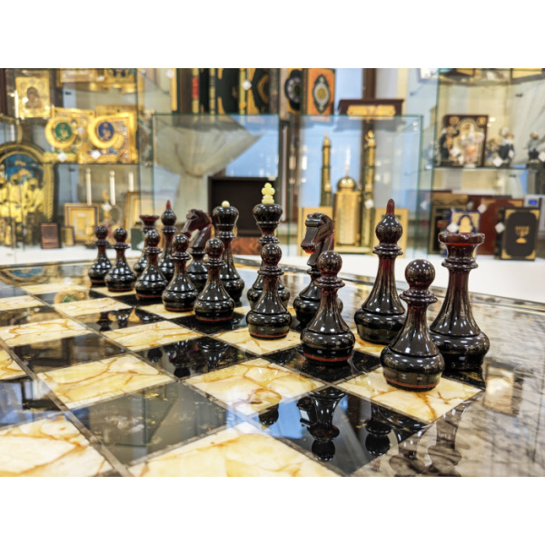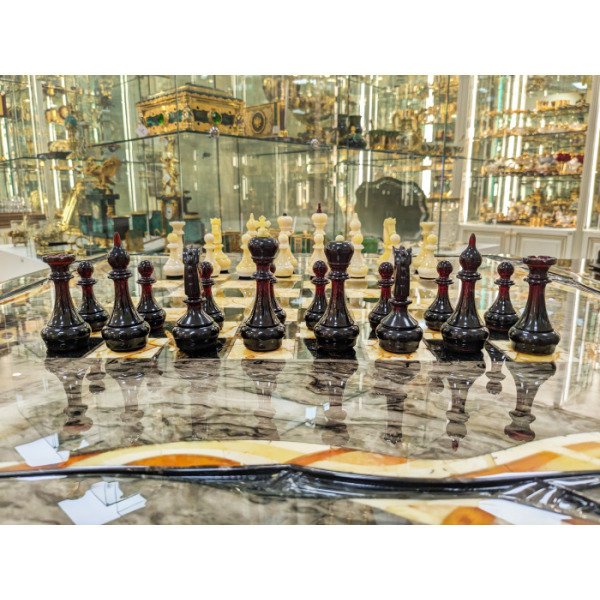Шахматный стол из карельской березы и янтаря "Инфинити"