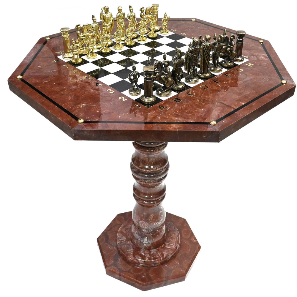 Шахматный стол из лемезита, долерита и мрамора "Римляне"