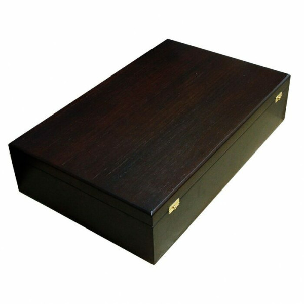 Шахматное поле, набранное из шпона ореха и сахарного клёна, словно приглашает к игре, где каждый ход становится частью стратегической дуэли, в которой победа достигается не только силой, но и умом. Темные и светлые квадраты шахматной доски, как символы вечной борьбы света и тьмы, указывают на безмолвную войну, разворачивающуюся на поле. Здесь шахматы становятся метафорой битвы, в которой честь и достоинство определяют судьбы королей.