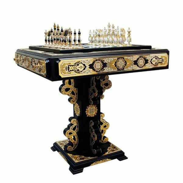 Этот шахматный стол — не просто элемент интерьера, это символ могущества и наследия, воплощающий дух древних времён. В нём слились роскошь, история и искусство, предлагая вам стать частью великой эпохи, где каждый штрих на изделии говорит о власти и непреходящем величии.