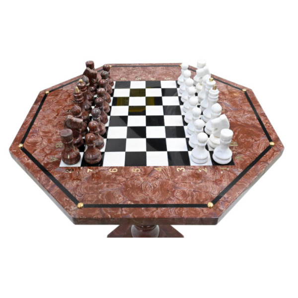 Этот шахматный стол — не просто элемент интерьера, это символ могущества и наследия, воплощающий дух древних времён. В нём слились роскошь, история и искусство, предлагая вам стать частью великой эпохи, где каждый штрих на изделии говорит о власти и непреходящем величии.