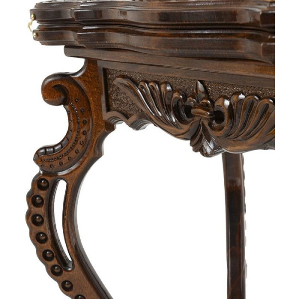 Шахматный стол из бука "Цветы" резной, с шахматами и нардами