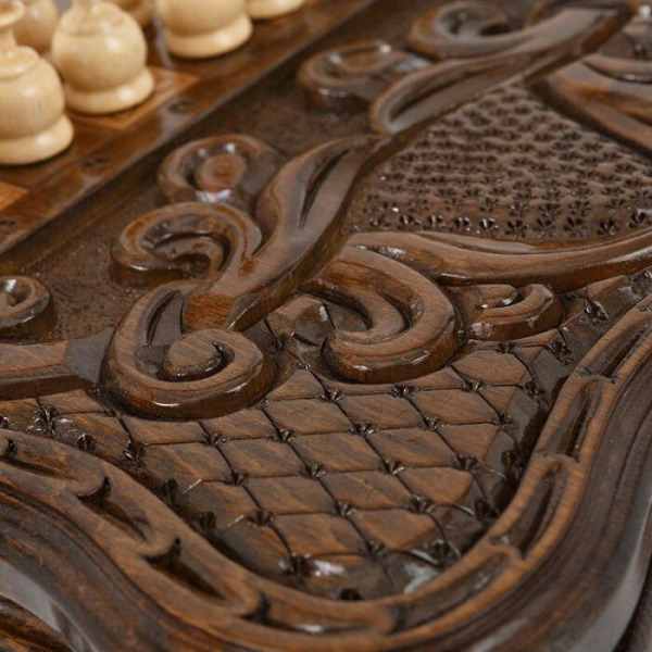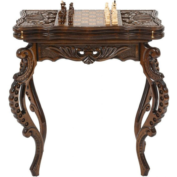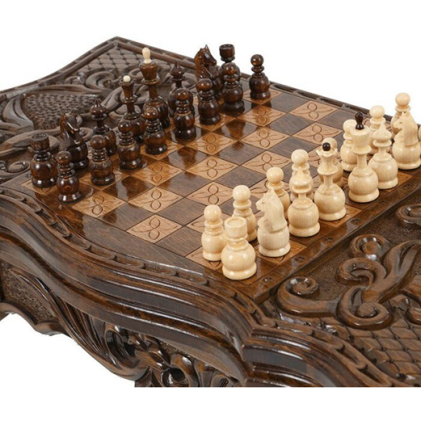 Шахматный стол из бука "Узорный" резной, с шахматами и нардамиШахматный стол из бука "Узорный" резной, с шахматами и нардамиБезупречное качество и эксклюзивный дизайн элитного игрового набора не оставят равнодушным истинного ценителя добротных и дорогих вещей!