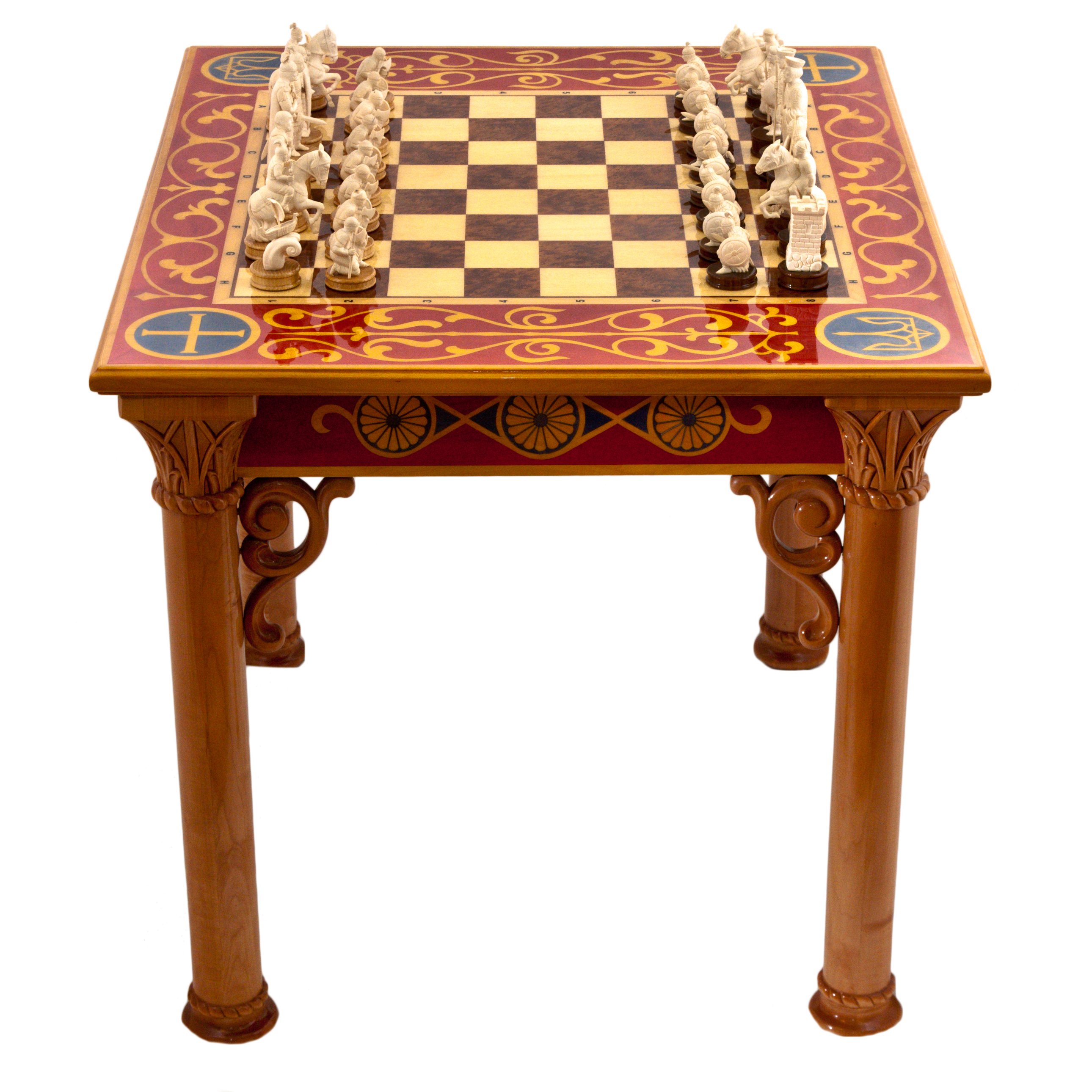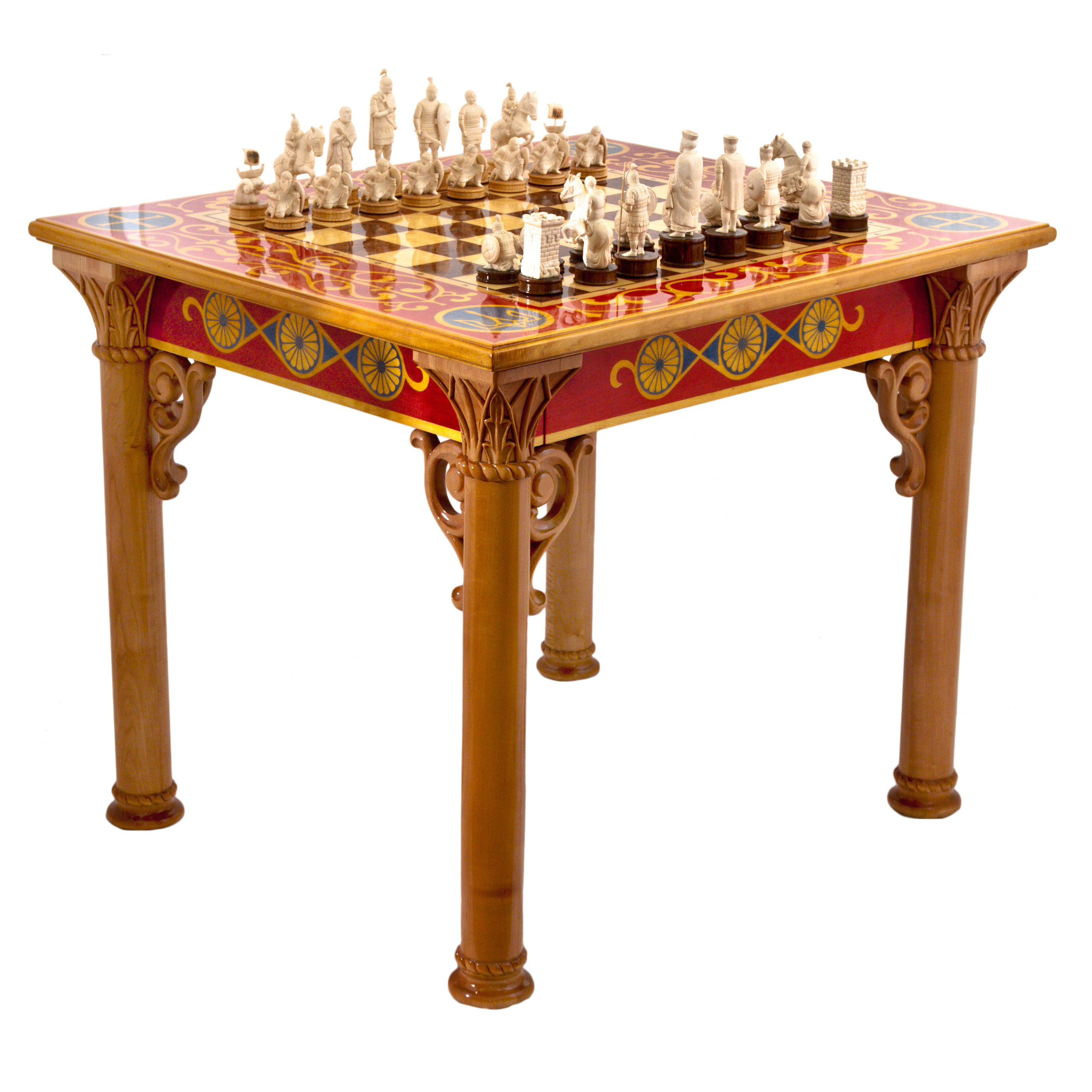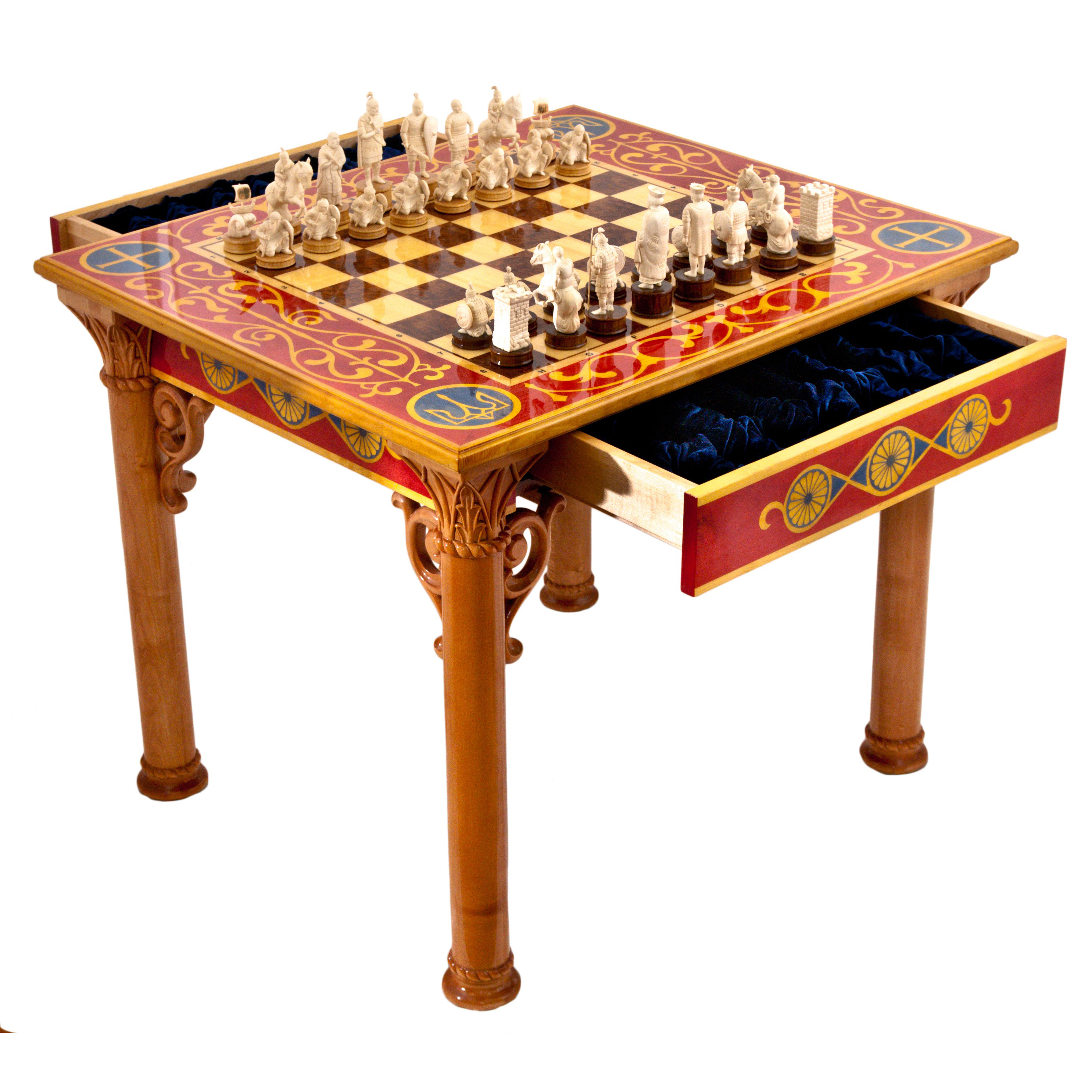 Этот шахматный стол — не просто элемент интерьера, это символ могущества и наследия, воплощающий дух древних времён. В нём слились роскошь, история и искусство, предлагая вам стать частью великой эпохи, где каждый штрих на изделии говорит о власти и непреходящем величии.
