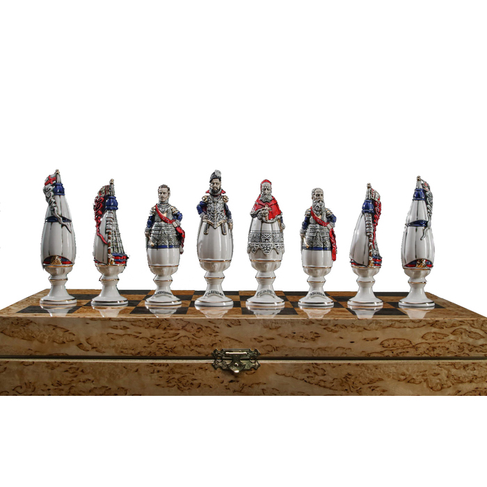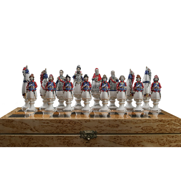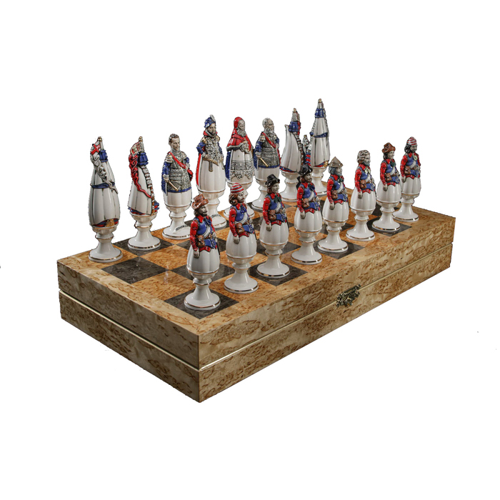Шахматы из карельской березы и фарфора "Битва при Лепанто"
