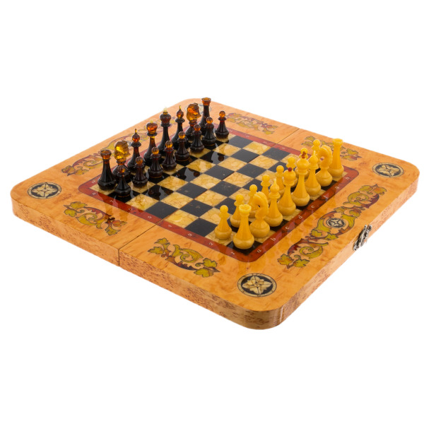 Шахматы из мореного дуба и янтаря "Арабески-Тина"Шахматы из мореного дуба и янтаря "Арабески-Тина"Безупречное качество и эксклюзивный дизайн элитных шахмат не оставят равнодушным истинного ценителя добротных и красивых вещей! Эти шахматы изготавливаются вручную из натурального янтаря в технике «Ковровская мозаика». Текстура материалов неповторима: невозможно изготовить двое совершенно одинаковых шахмат. Для изготовления игровой фурнитуры используется янтарный композит самых разных оттенков.