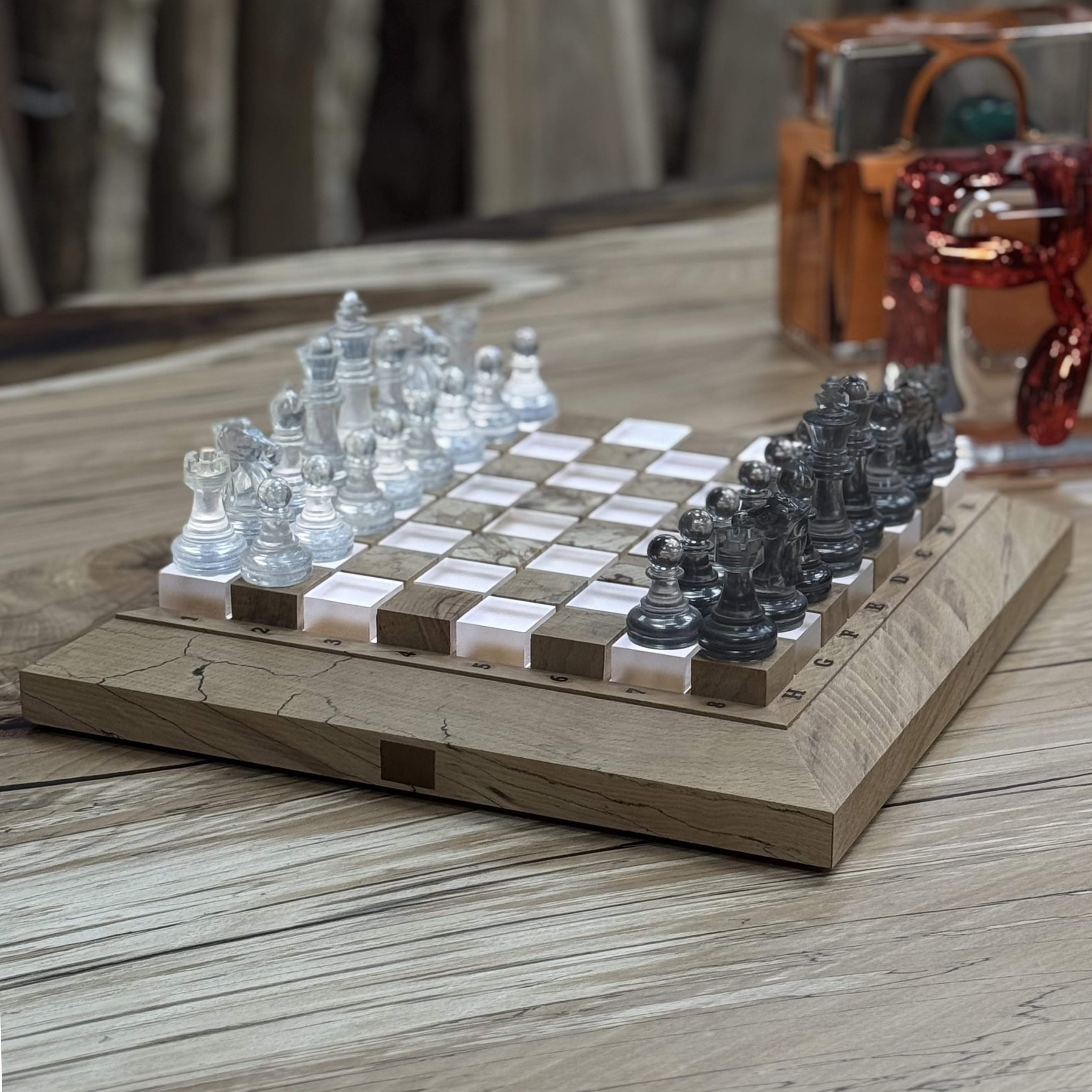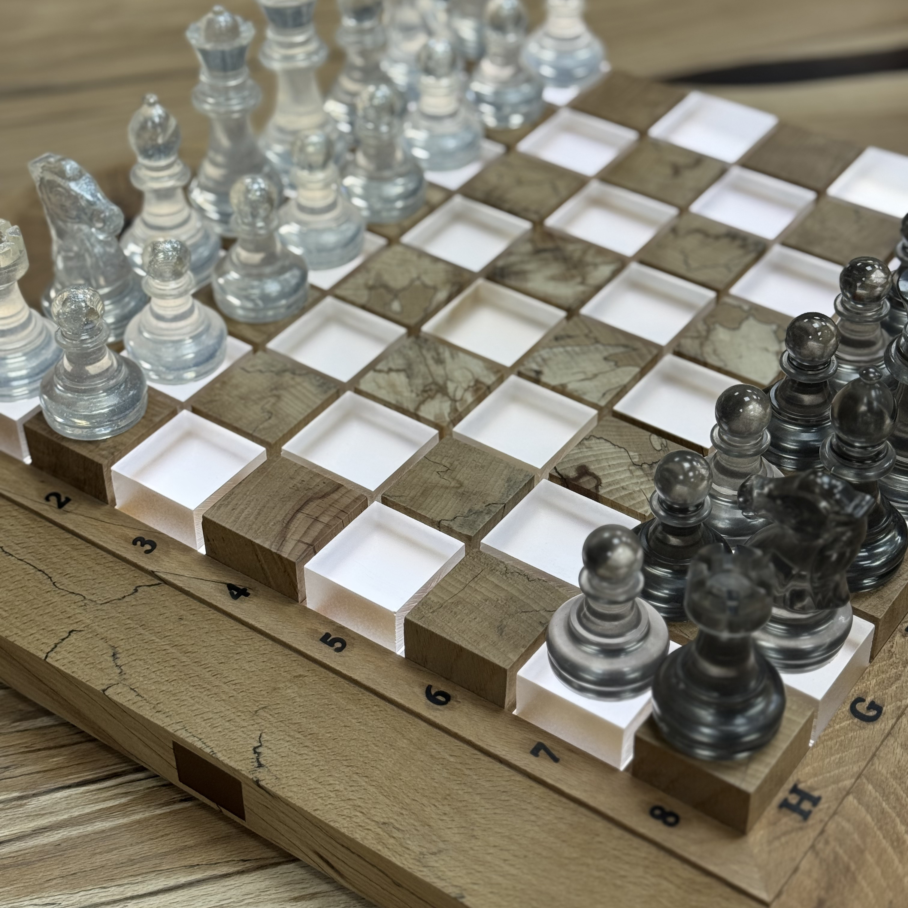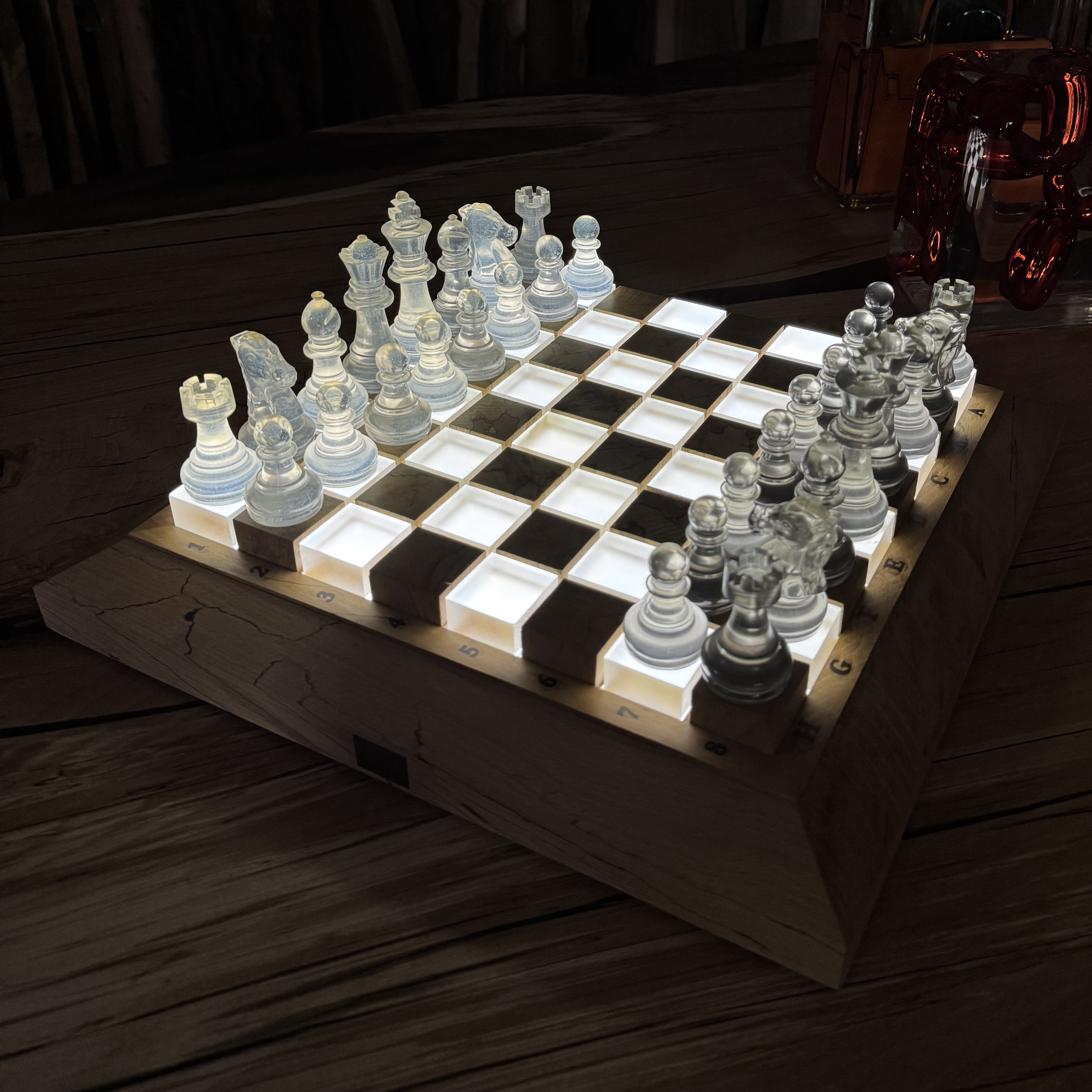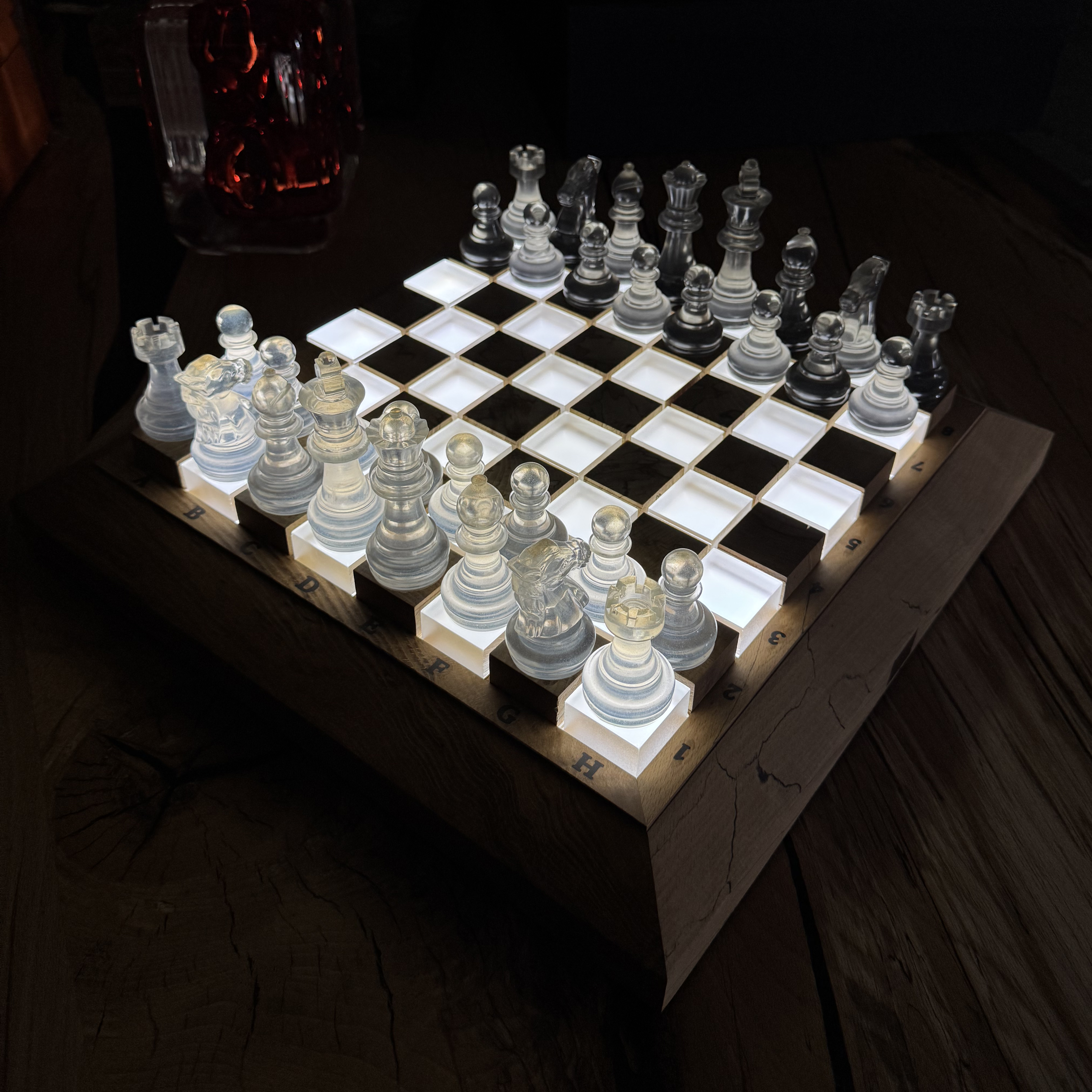 Шахматы из дерева и эпоксидной смолы "Классика" с подсветкой
