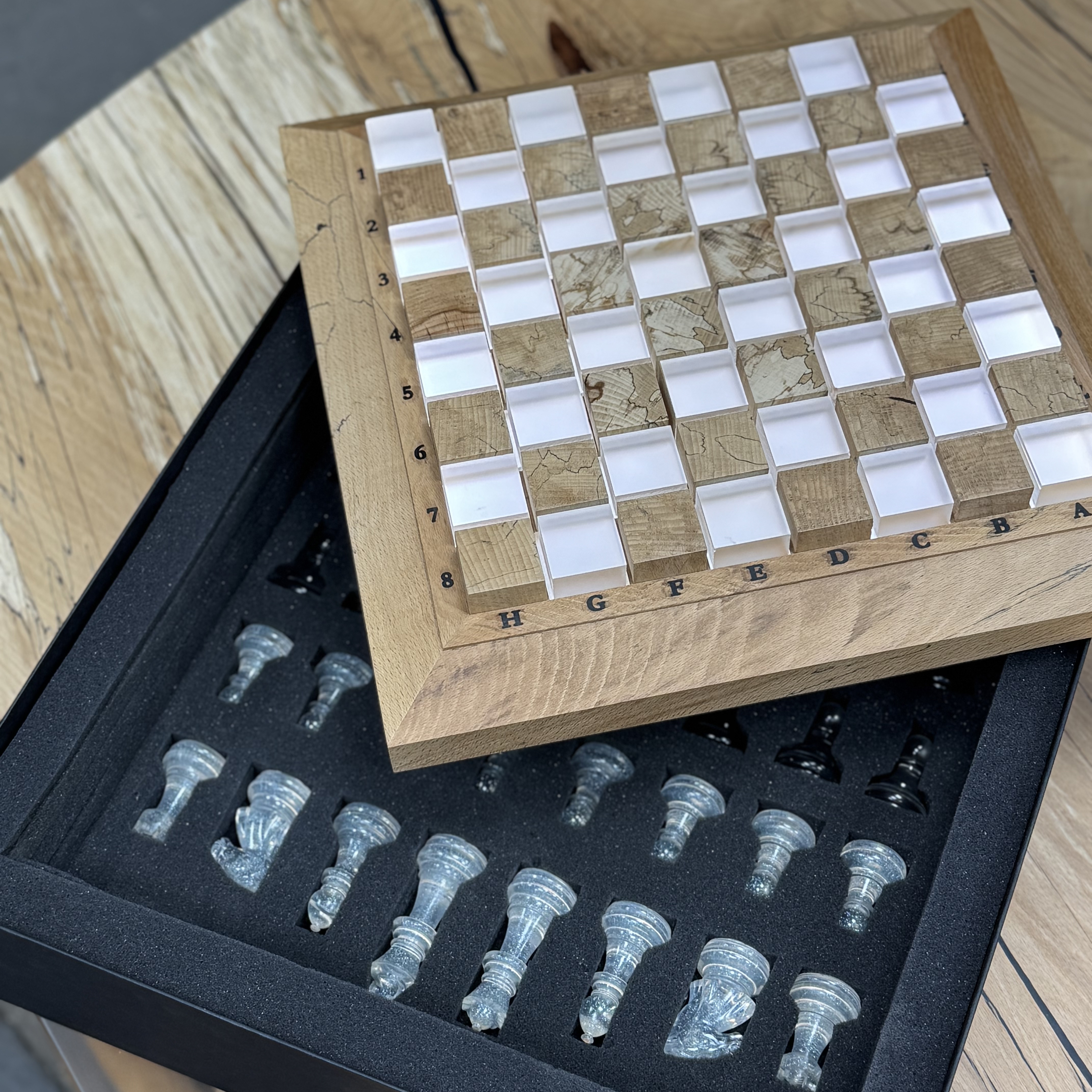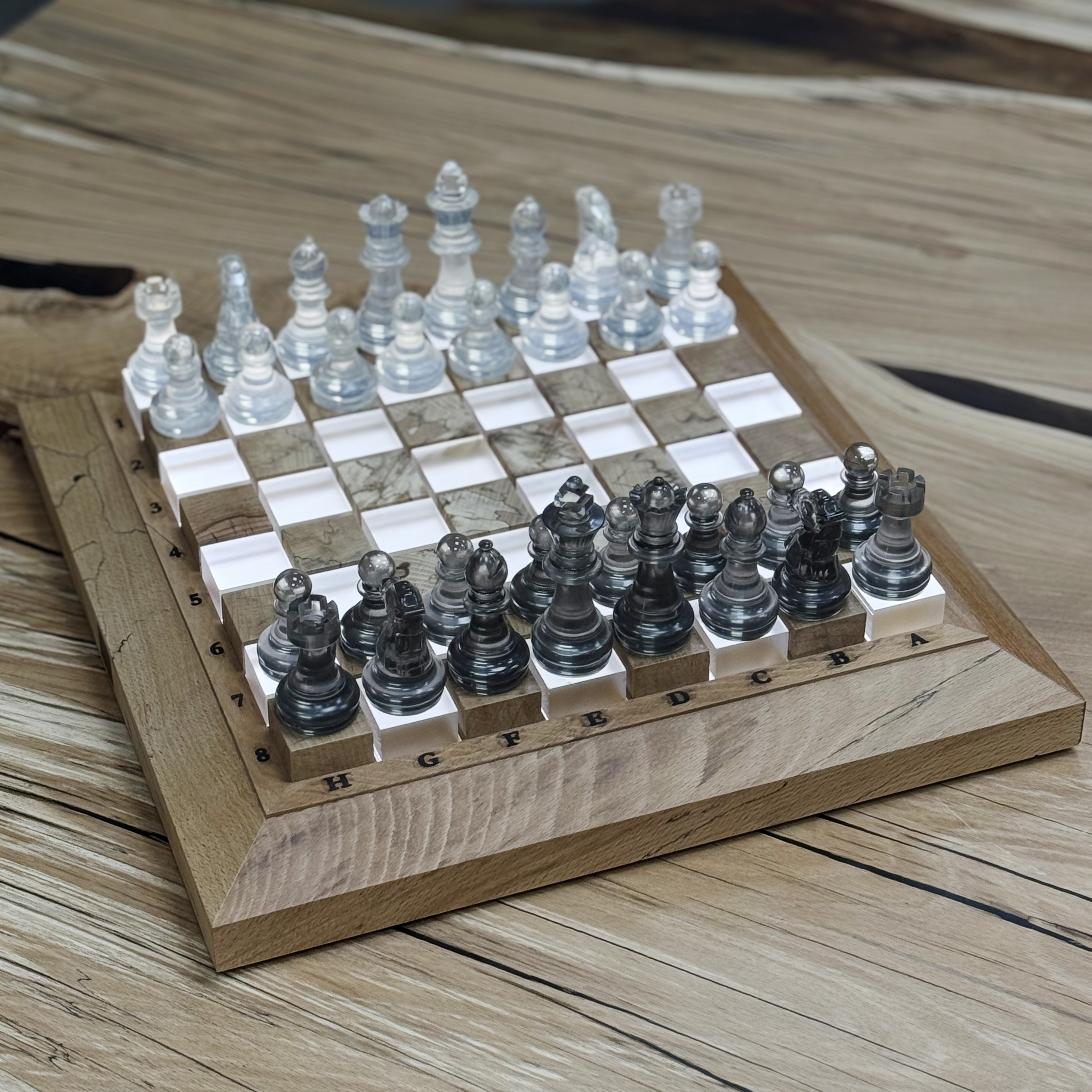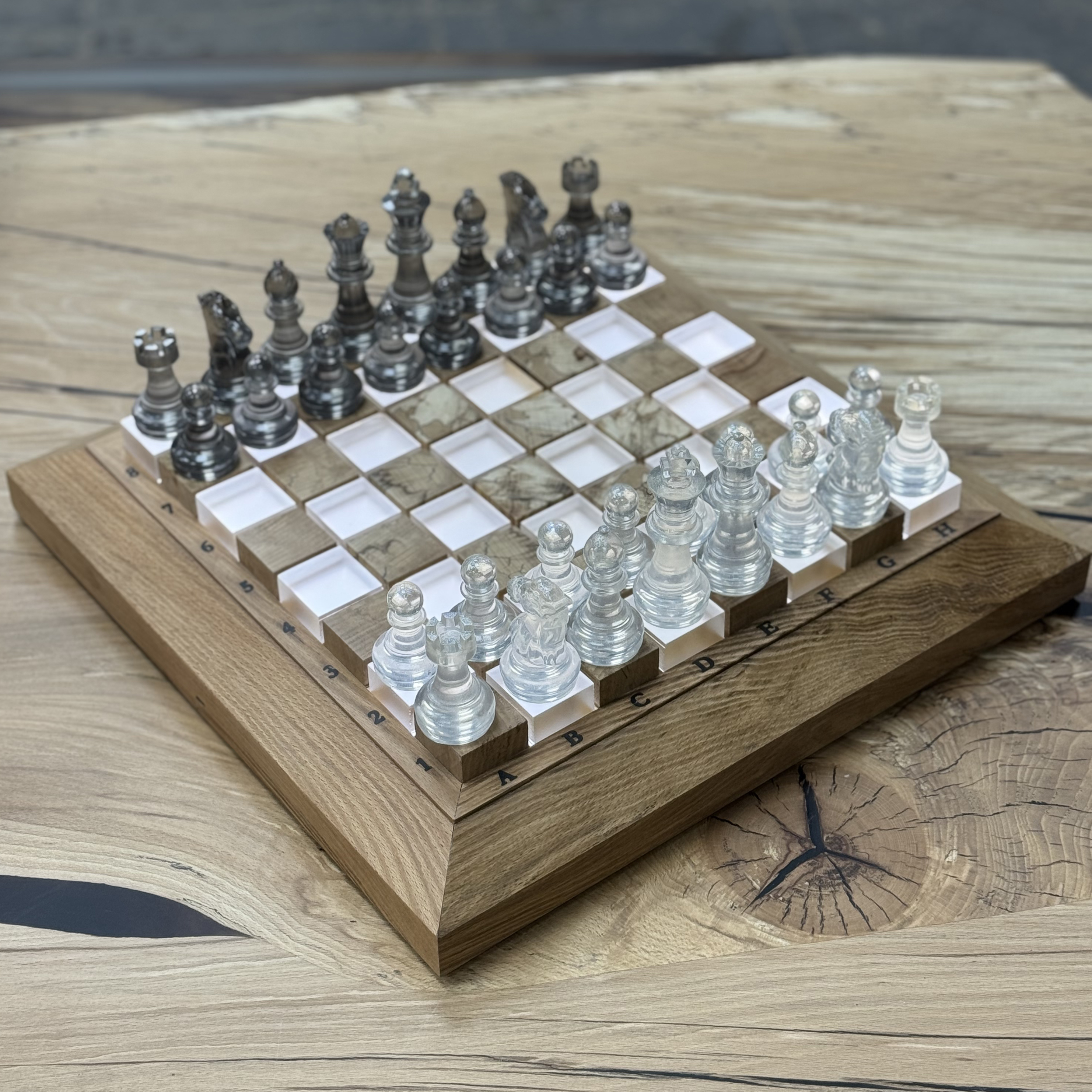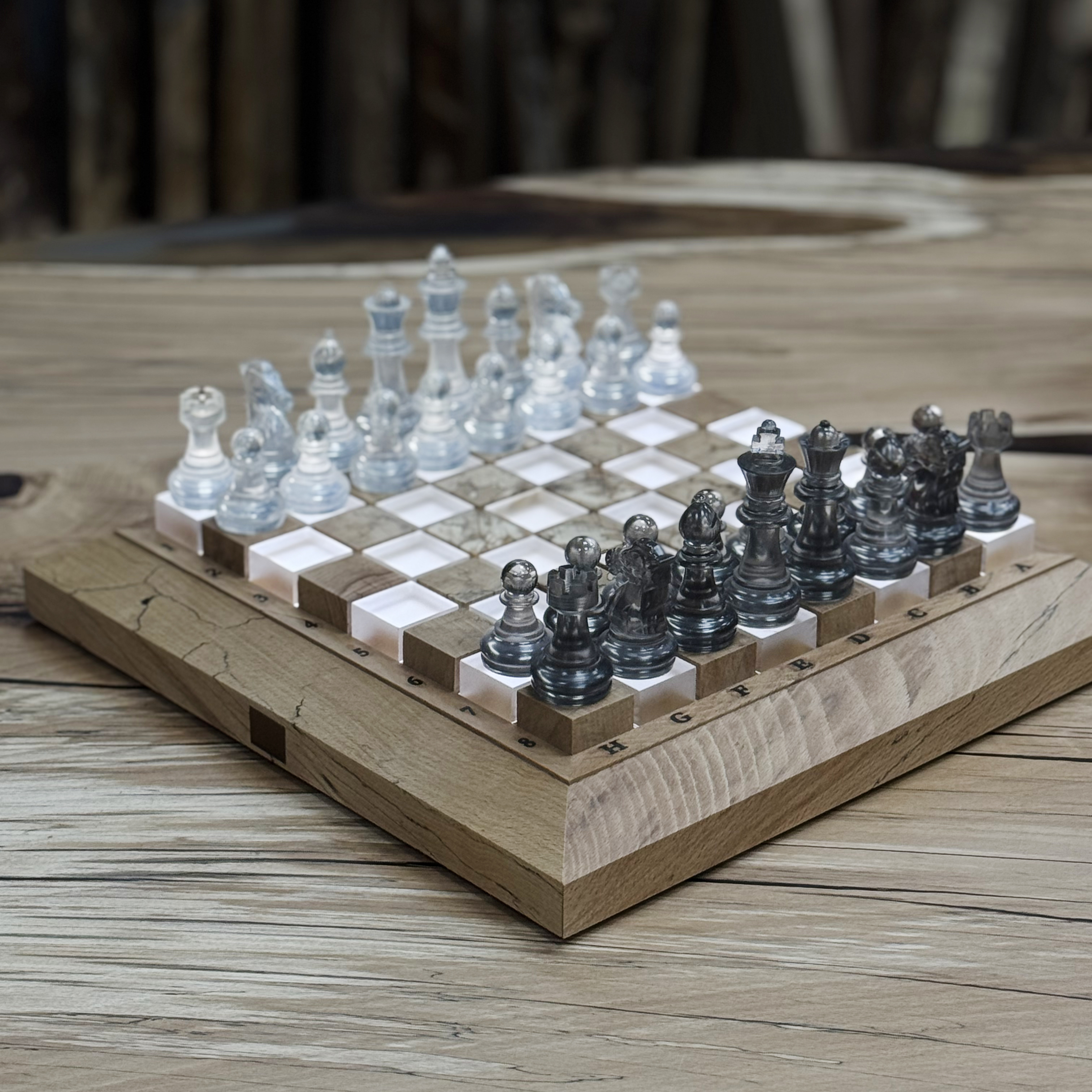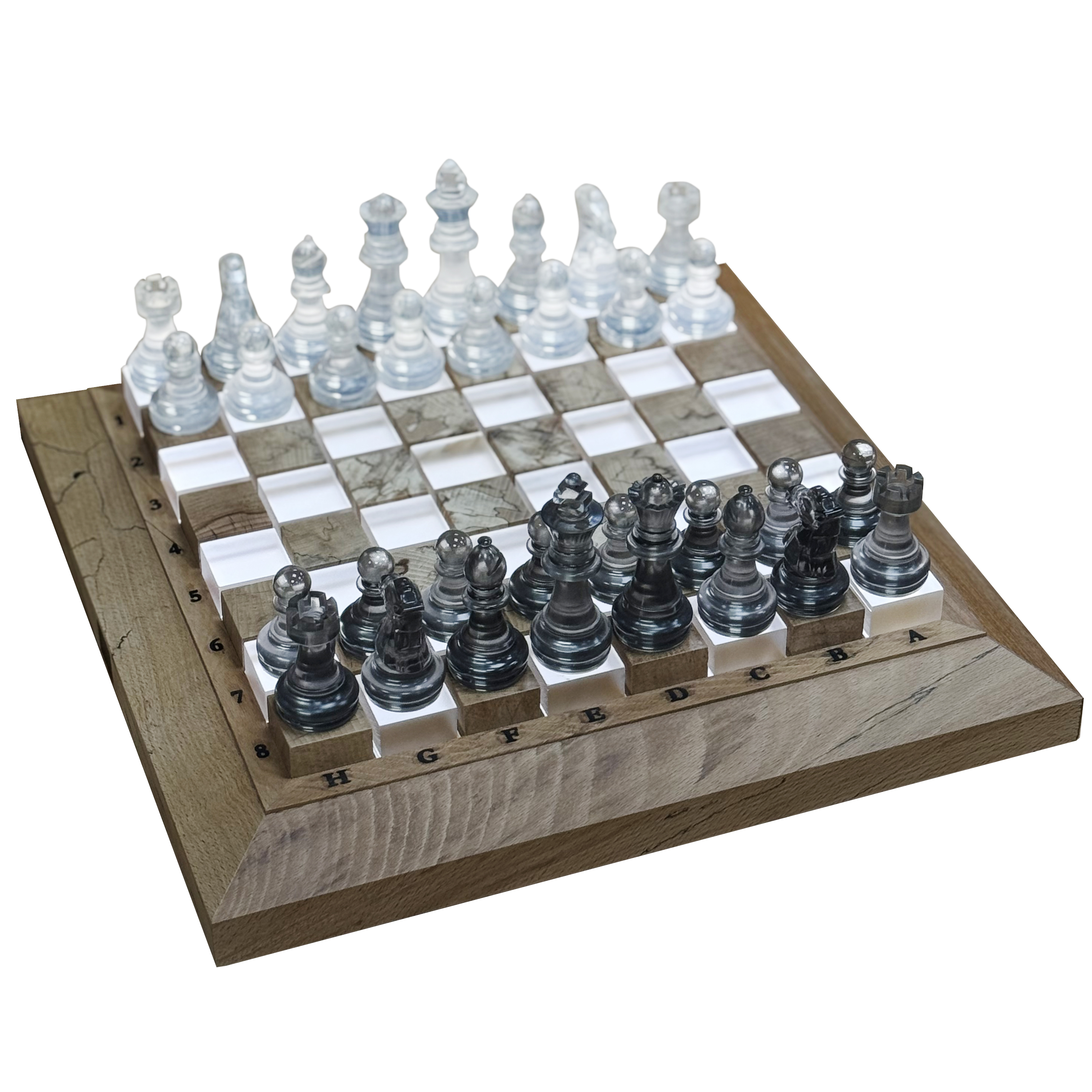 Шахматы из дерева и эпоксидной смолы "Классика" с подсветкой