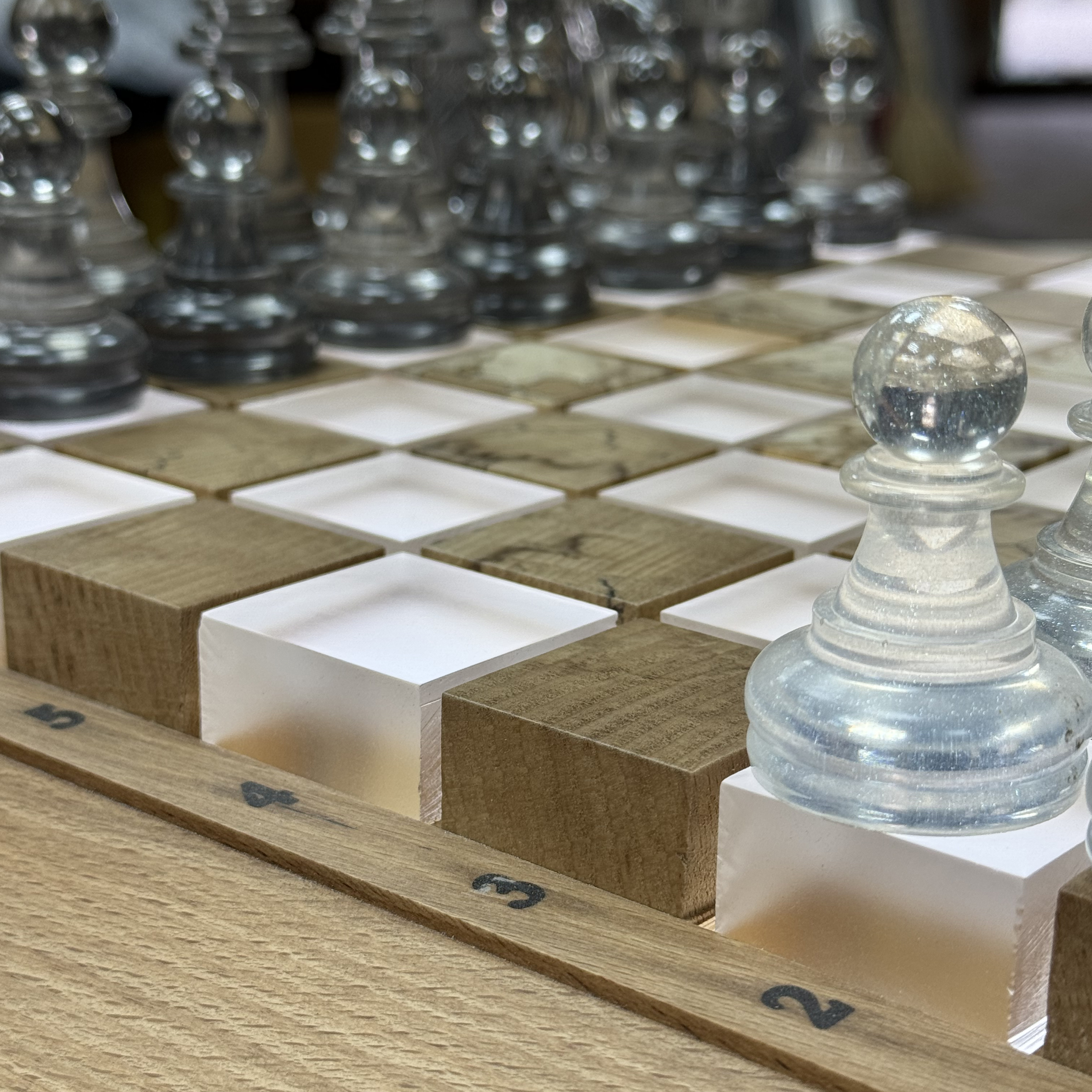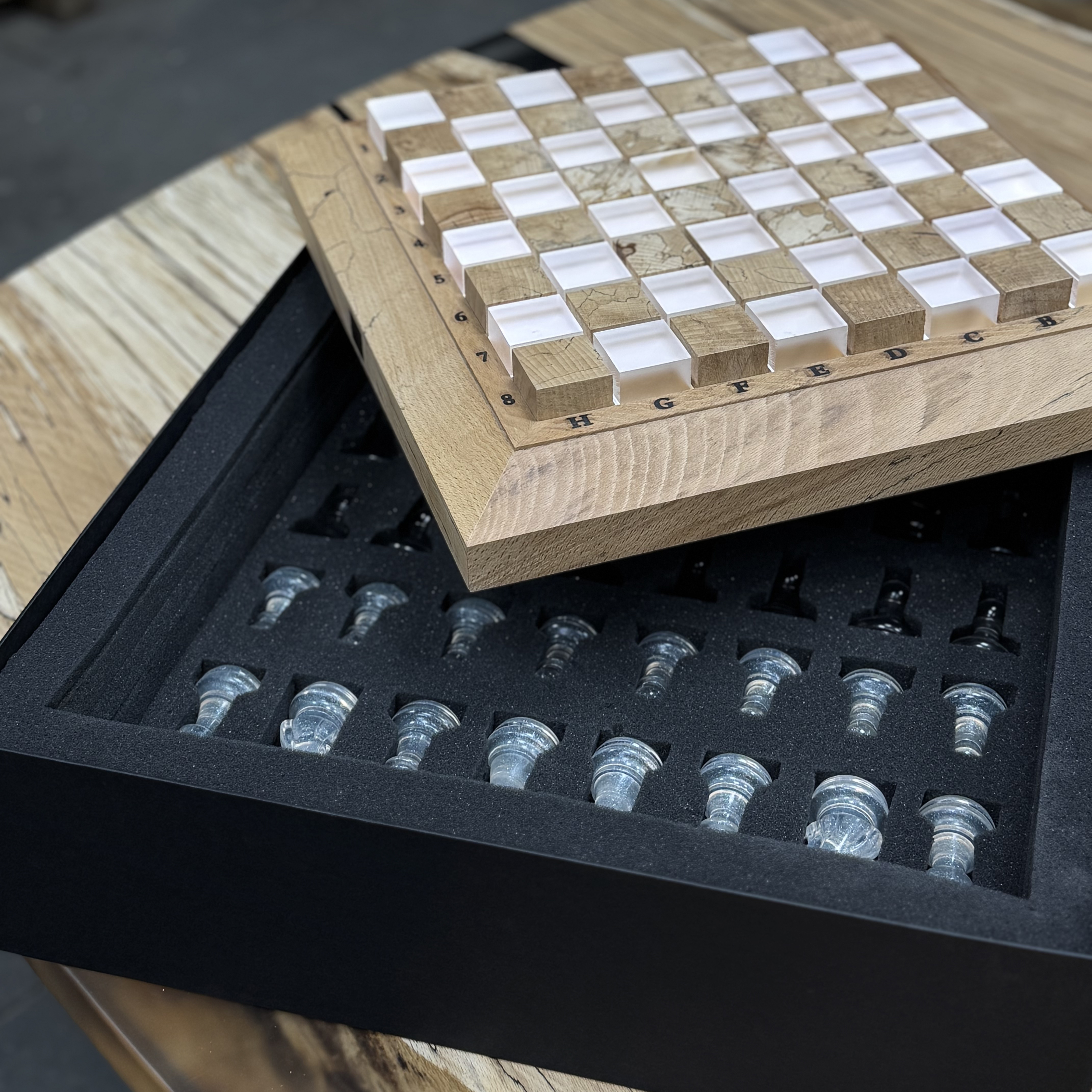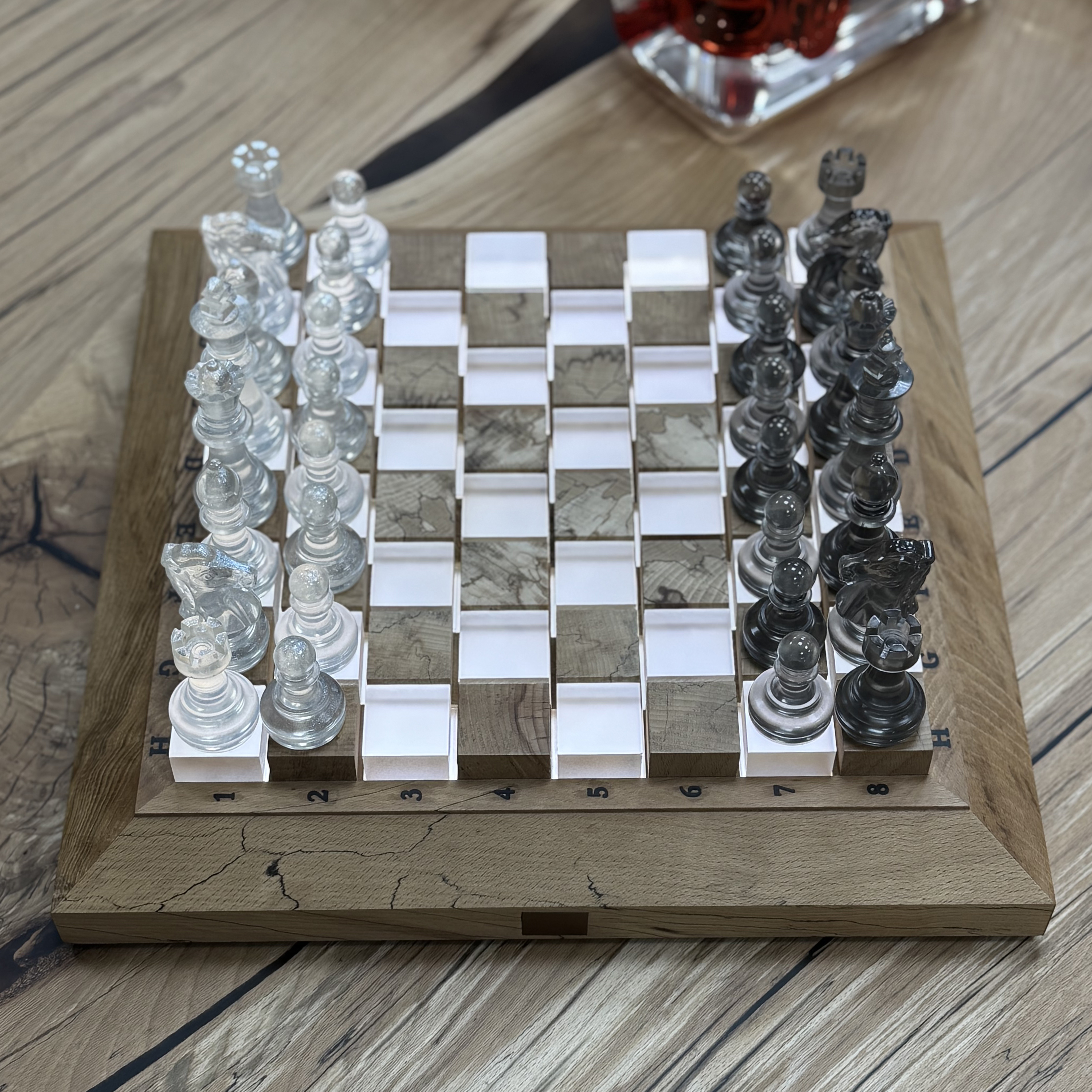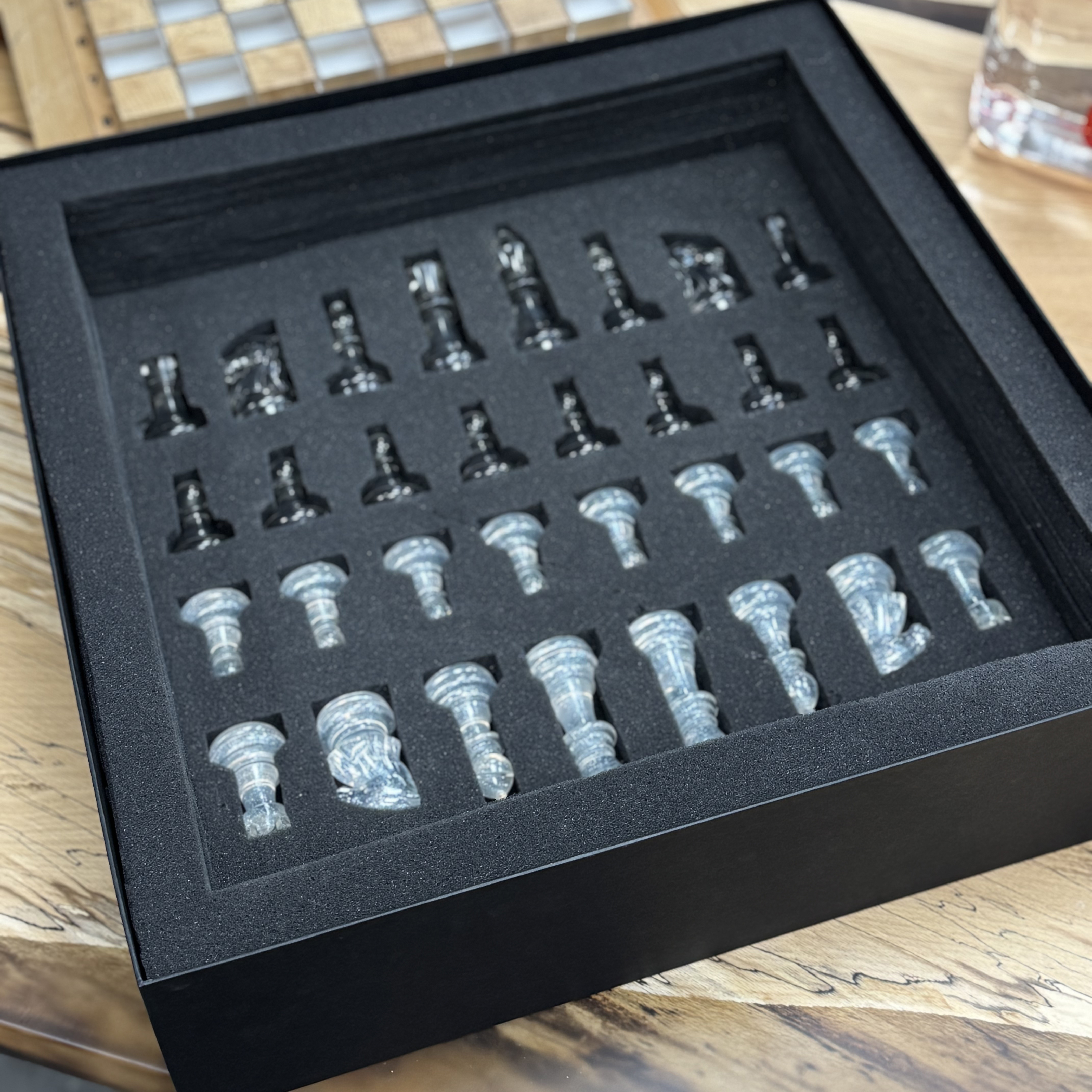 Шахматы из дерева и эпоксидной смолы "Классика" с подсветкой