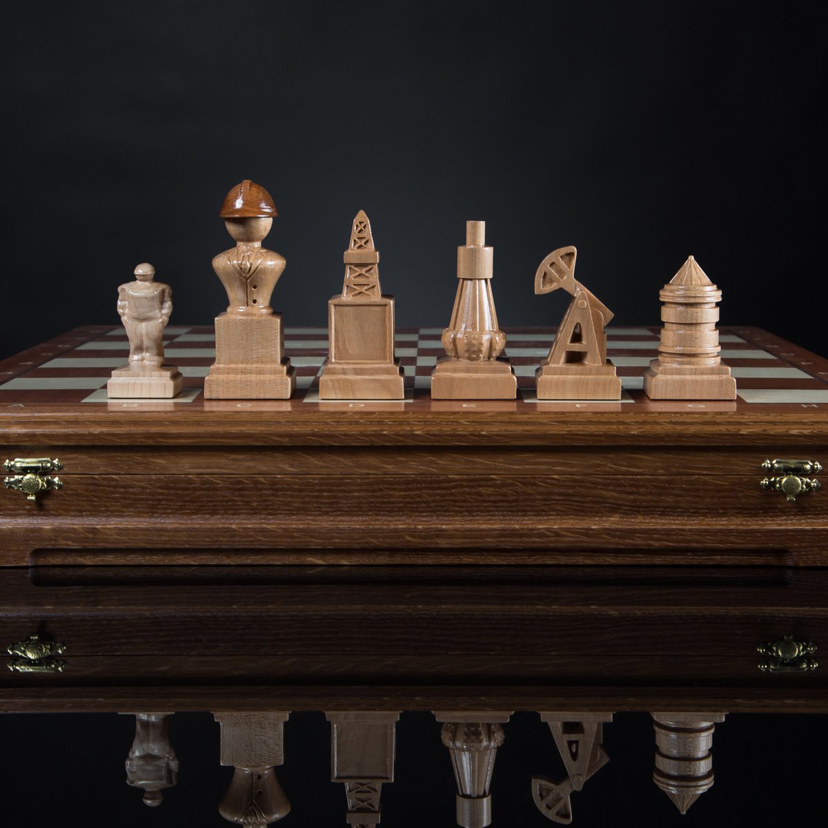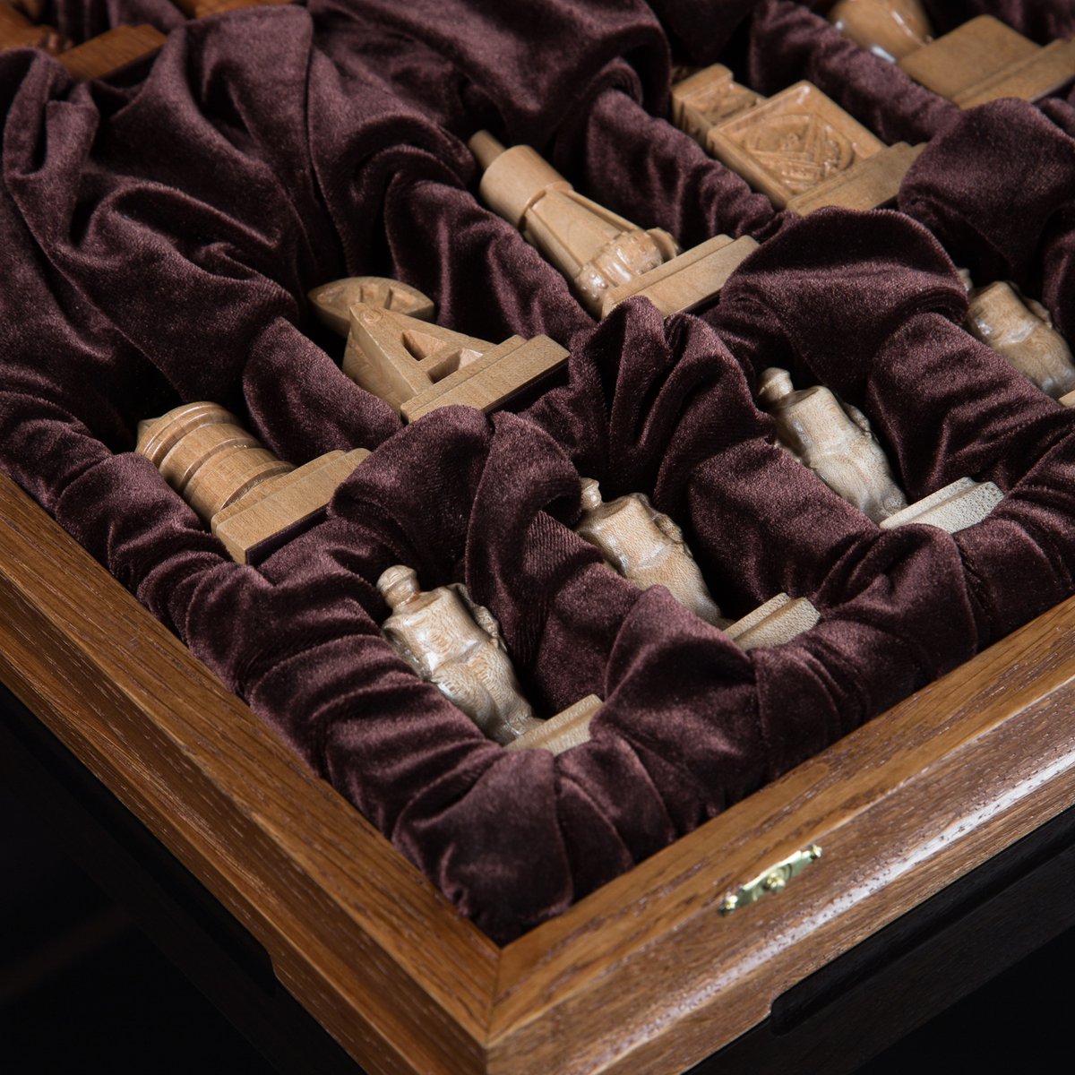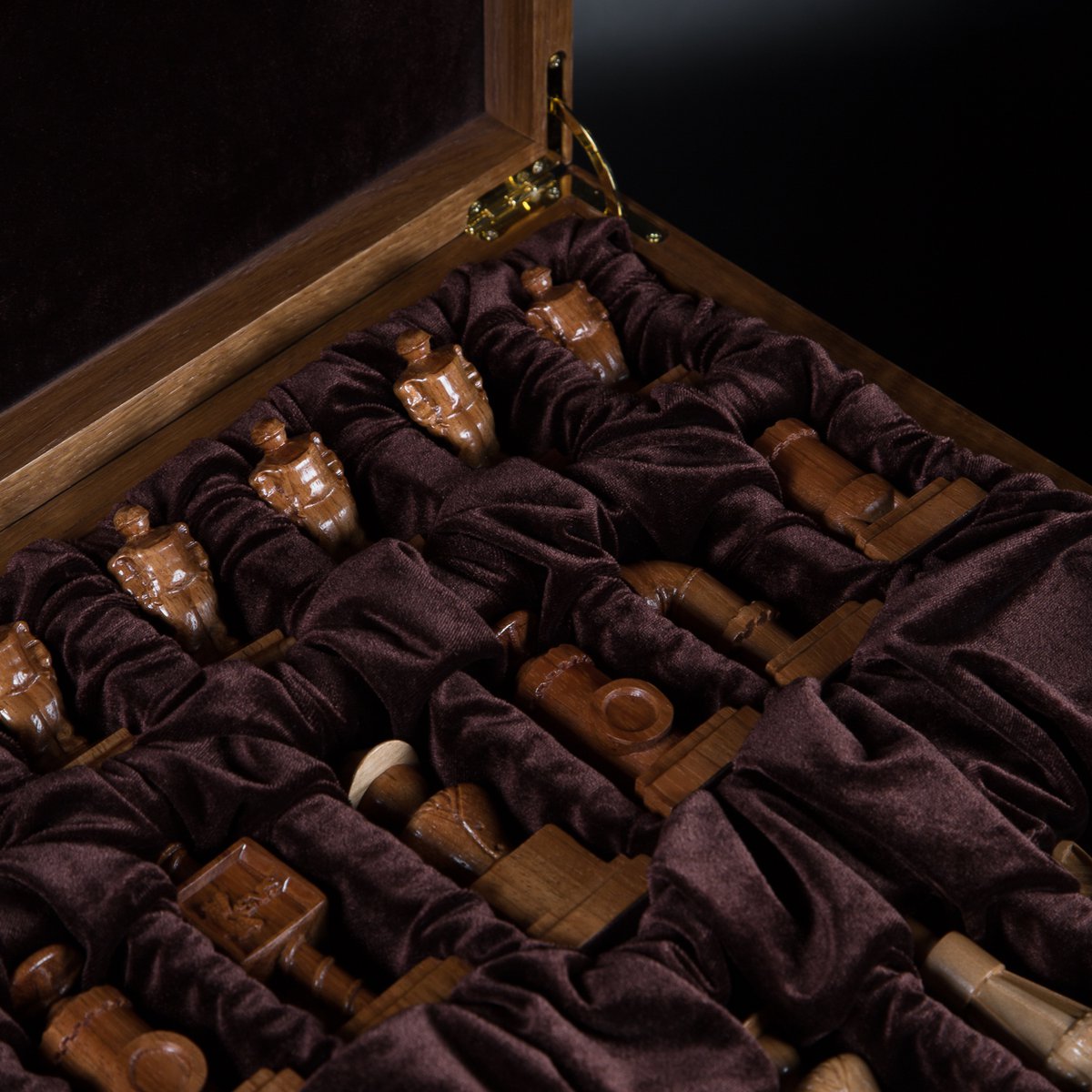 Фигуры :светлые - клен, темные - красное дерево, подклеены бархатом.