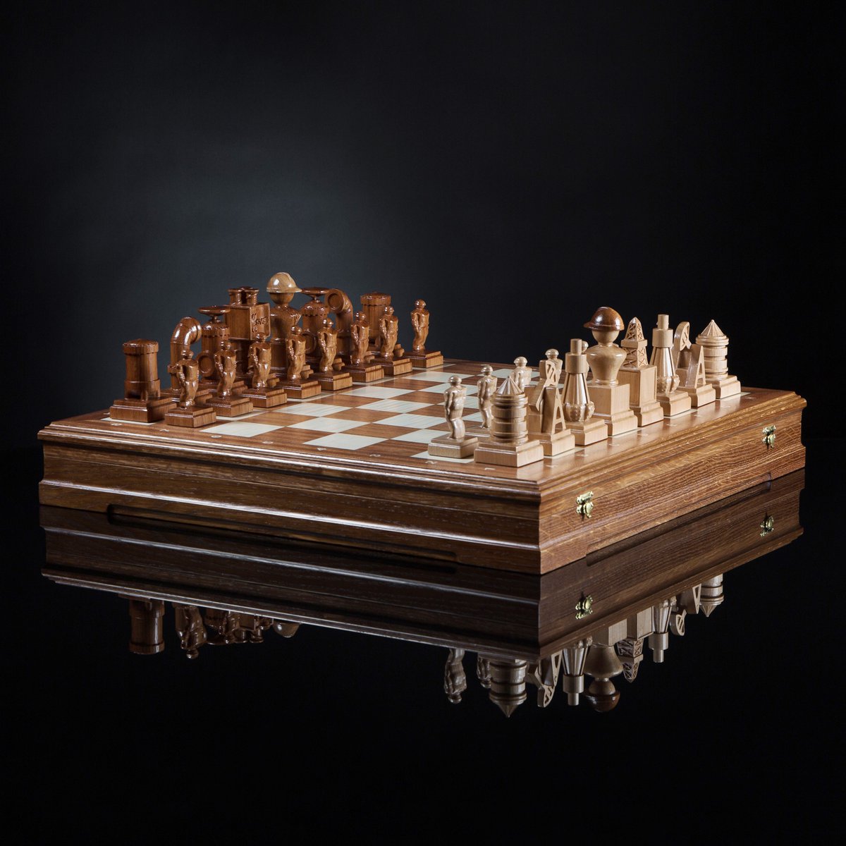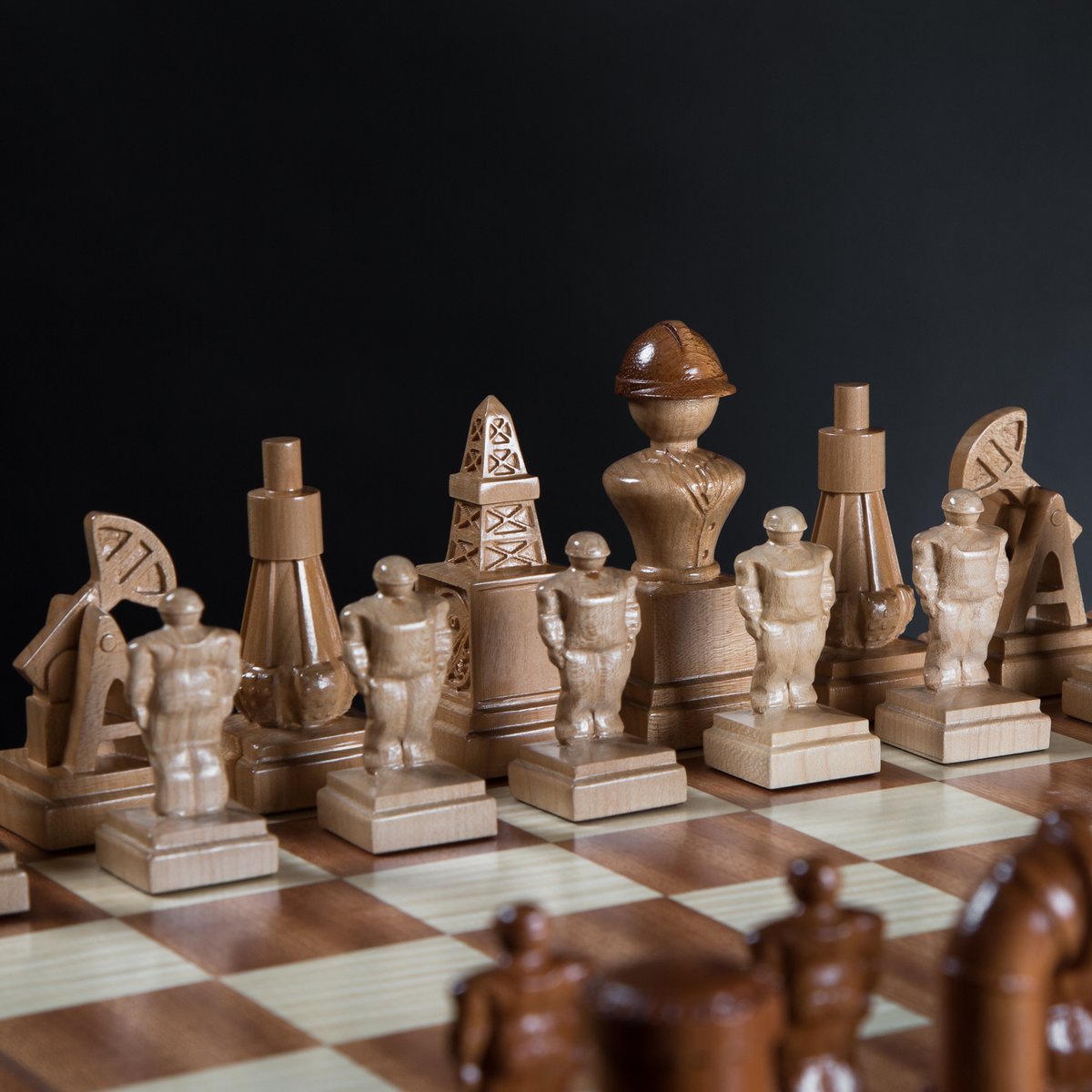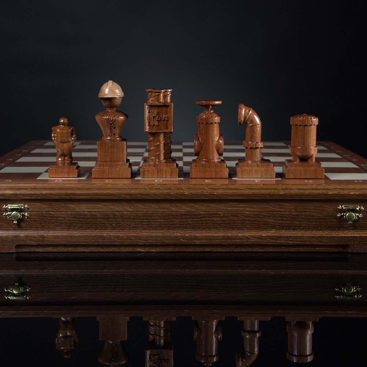 Фигуры :светлые - клен, темные - красное дерево, подклеены бархатом.