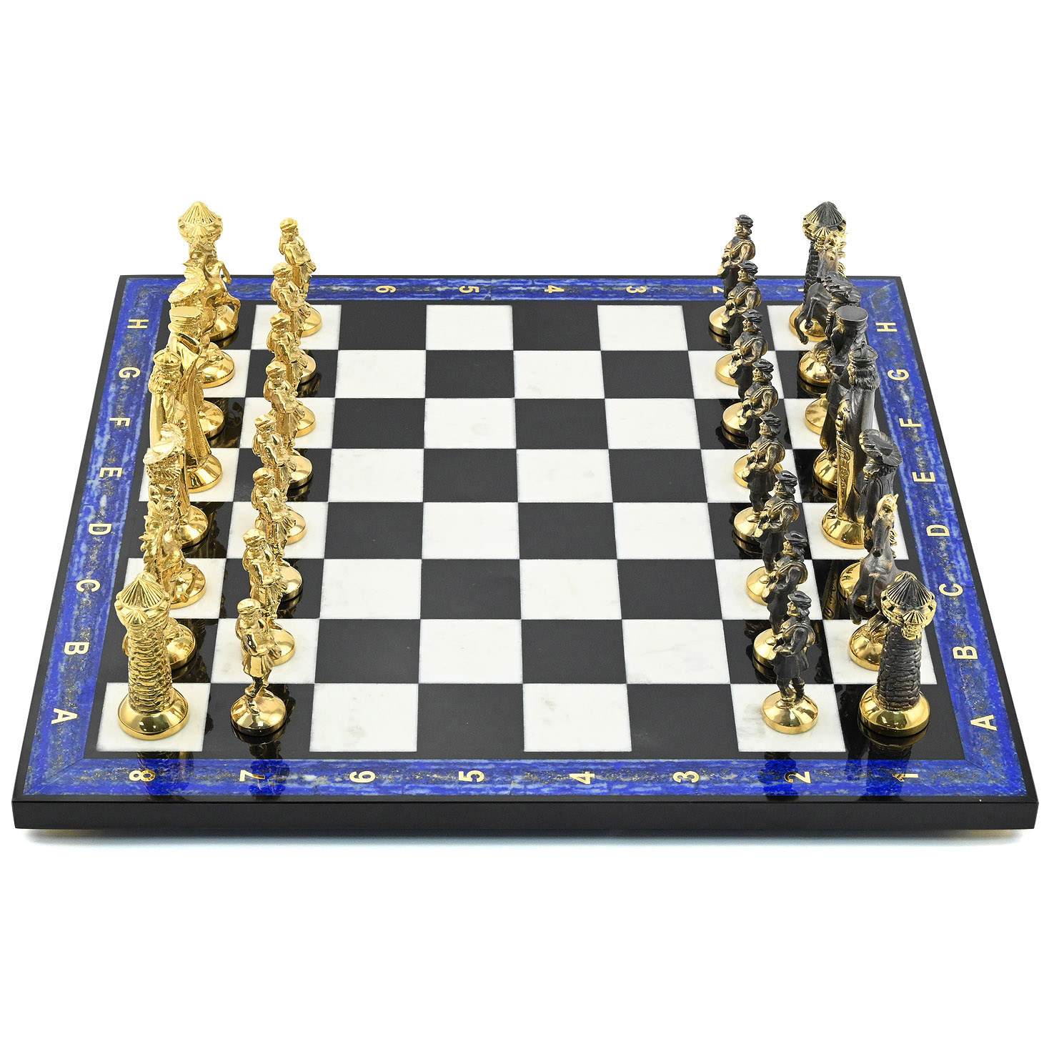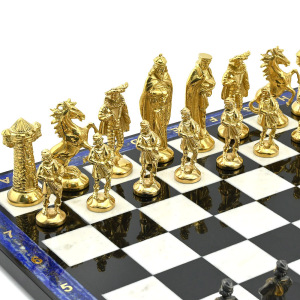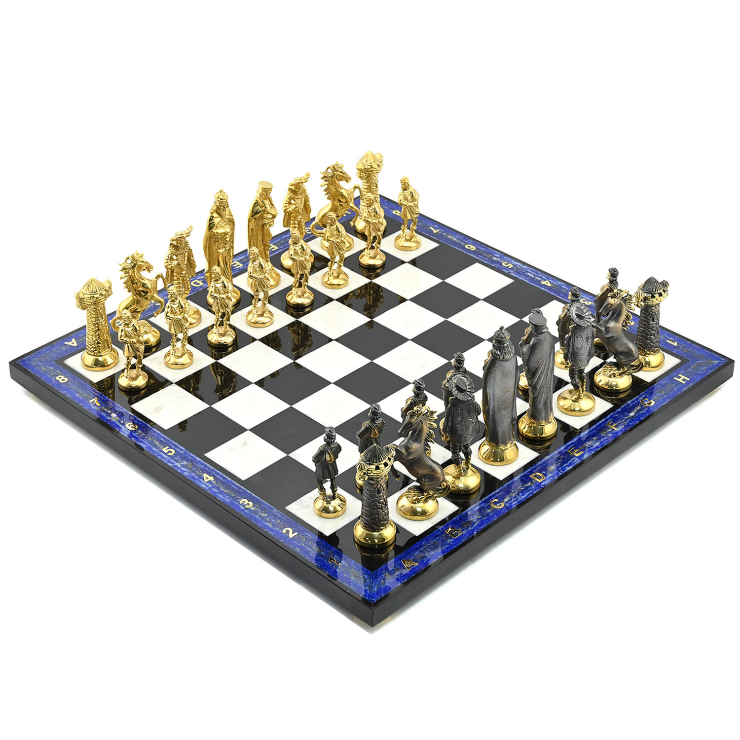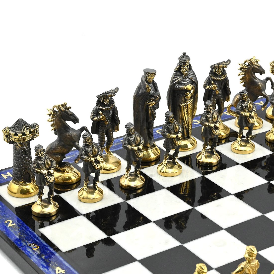 Шахматы из лазурита "Средневековье" с фигурами из бронзы