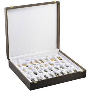 Шахматная доска, выполненная из лазурита, долерита и мрамора, создает элегантный фон для фигур, подчеркивая их красоту и уникальность. Этот набор идеально подойдет для ценителей искусства и коллекционеров, а также станет великолепным подарком для тех, кто ценит традиции и культурное наследие.