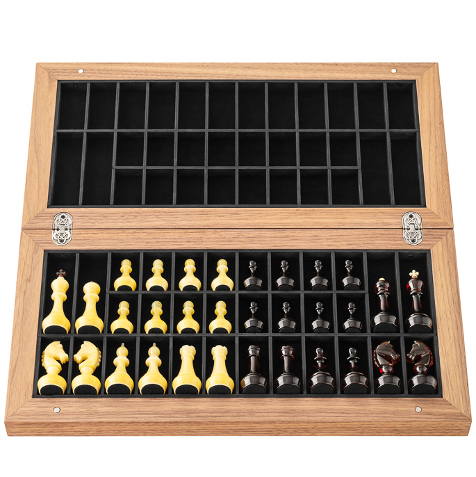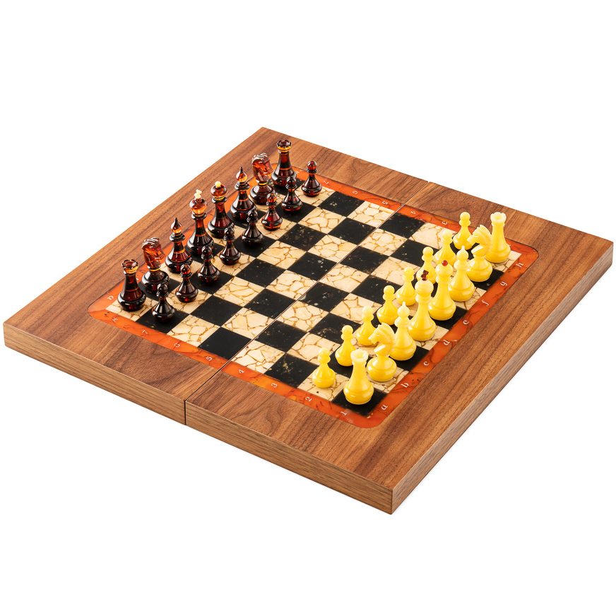 Шахматы из матового ореха и янтаря "Янтарные" мини