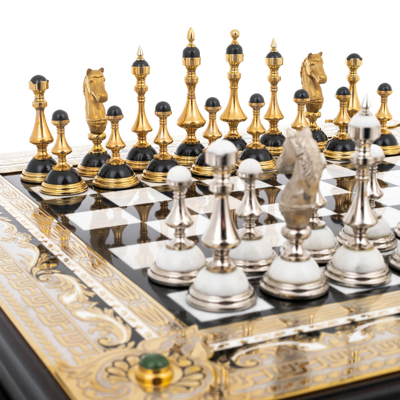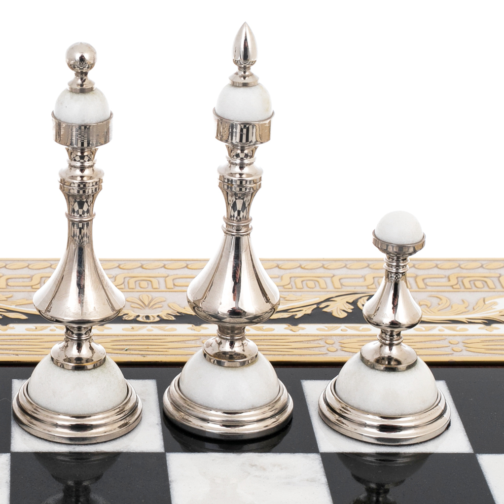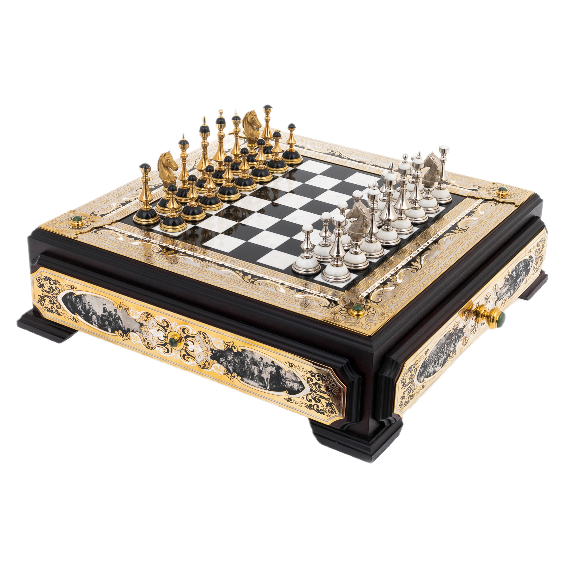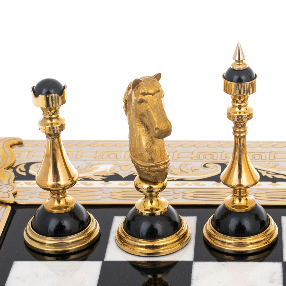 Шахматы из мрамора, нефрита "Баталия" с позолотой, Златоуст